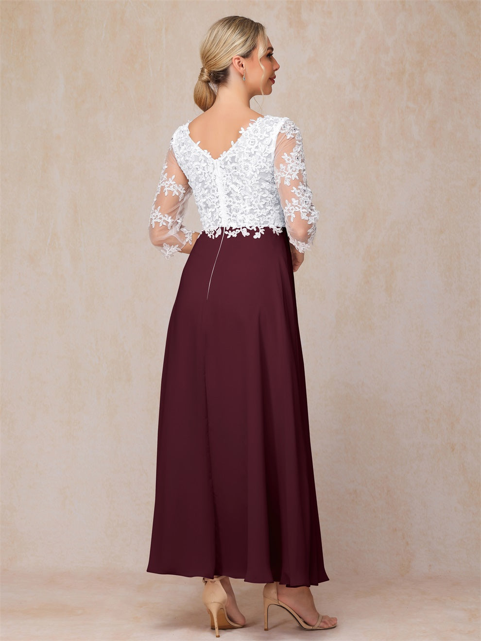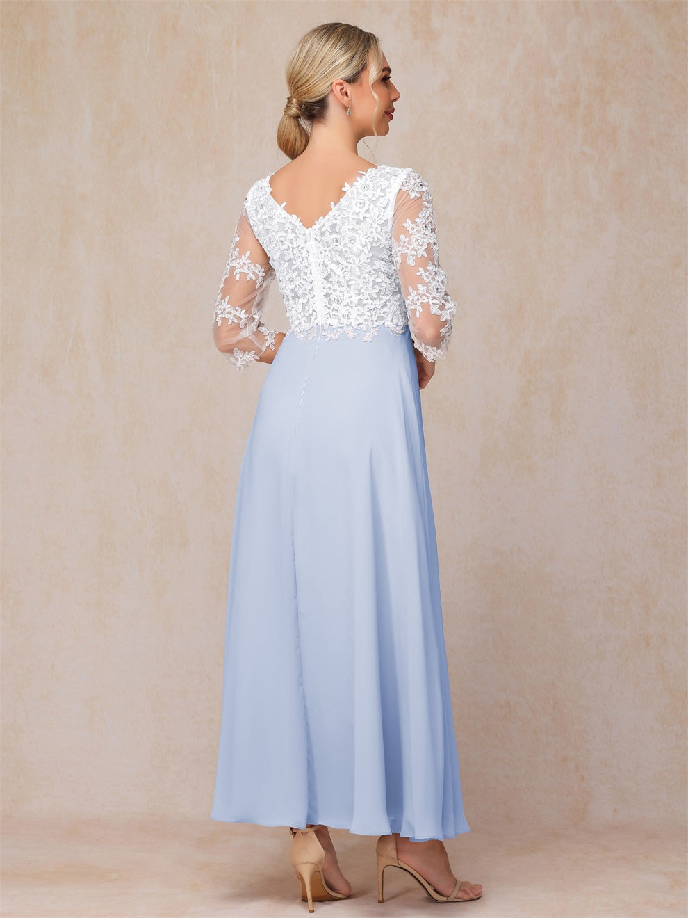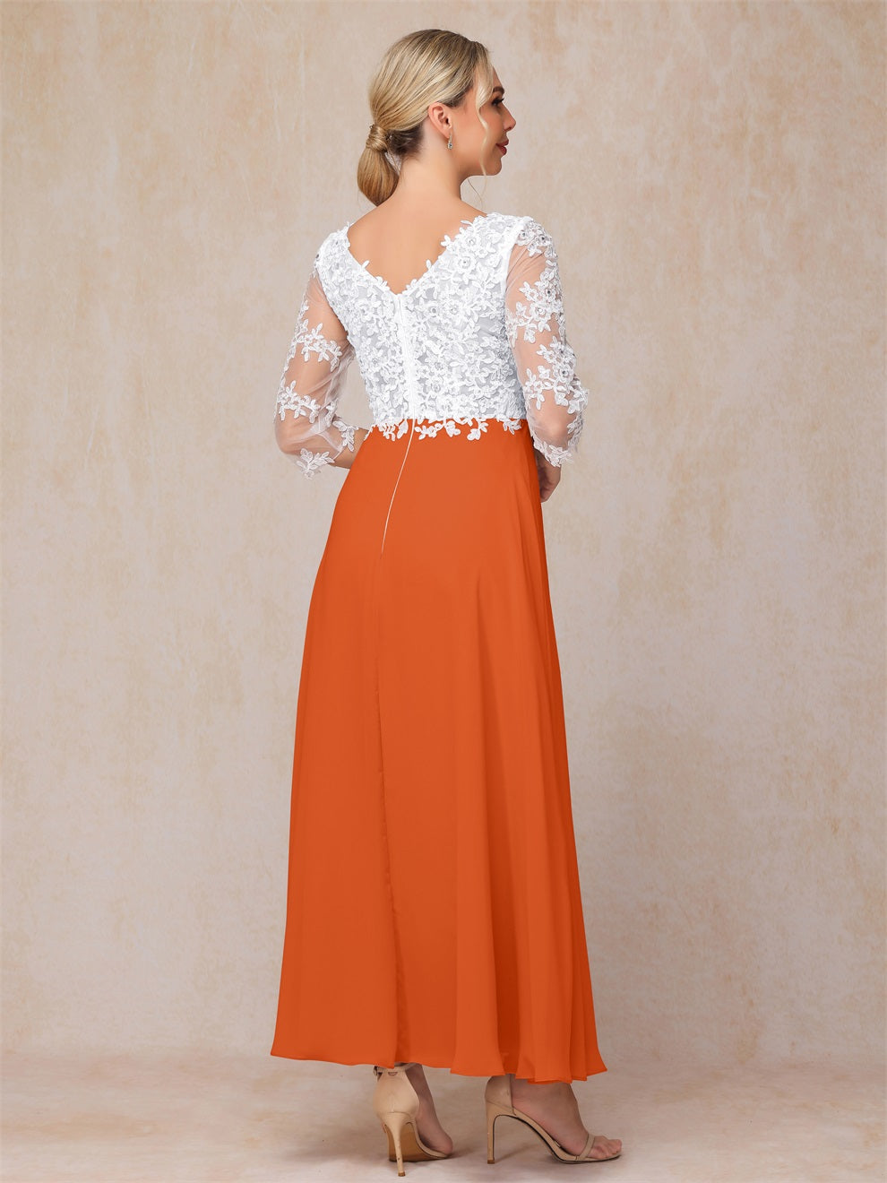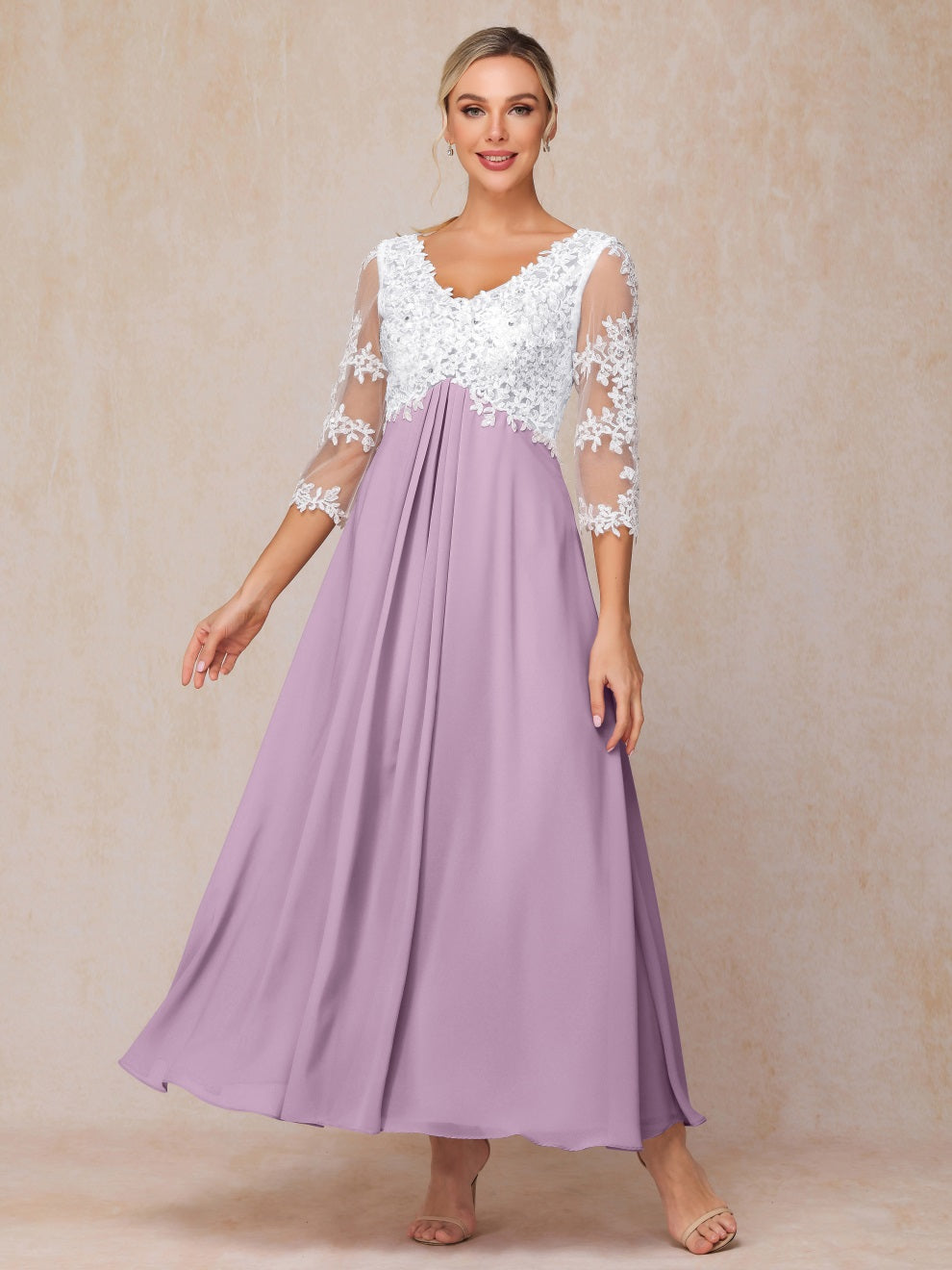 Empire Trapez Illusion 3/4 Ärmel Chiffon Spitze Mutter der Braut Kleid