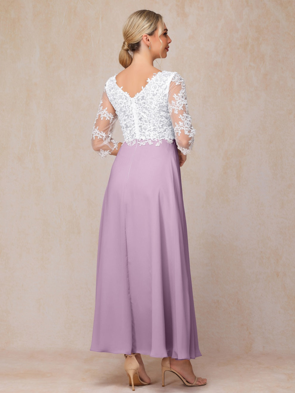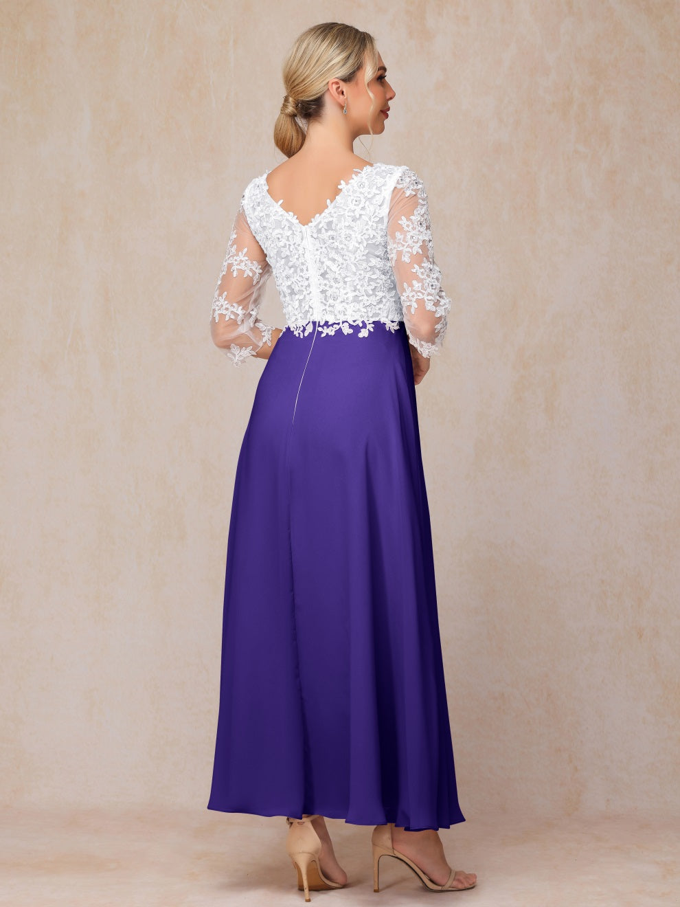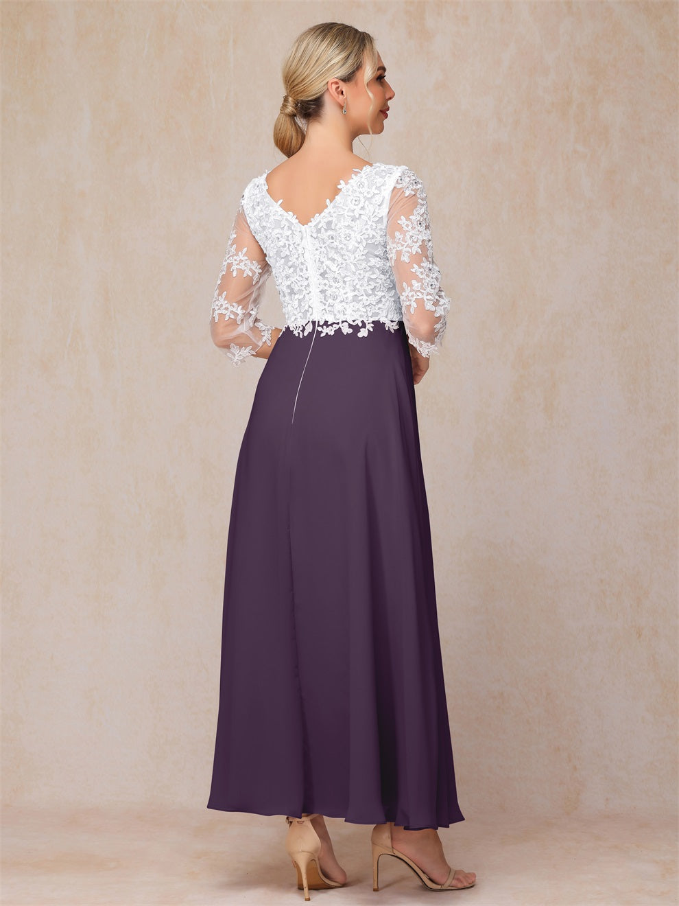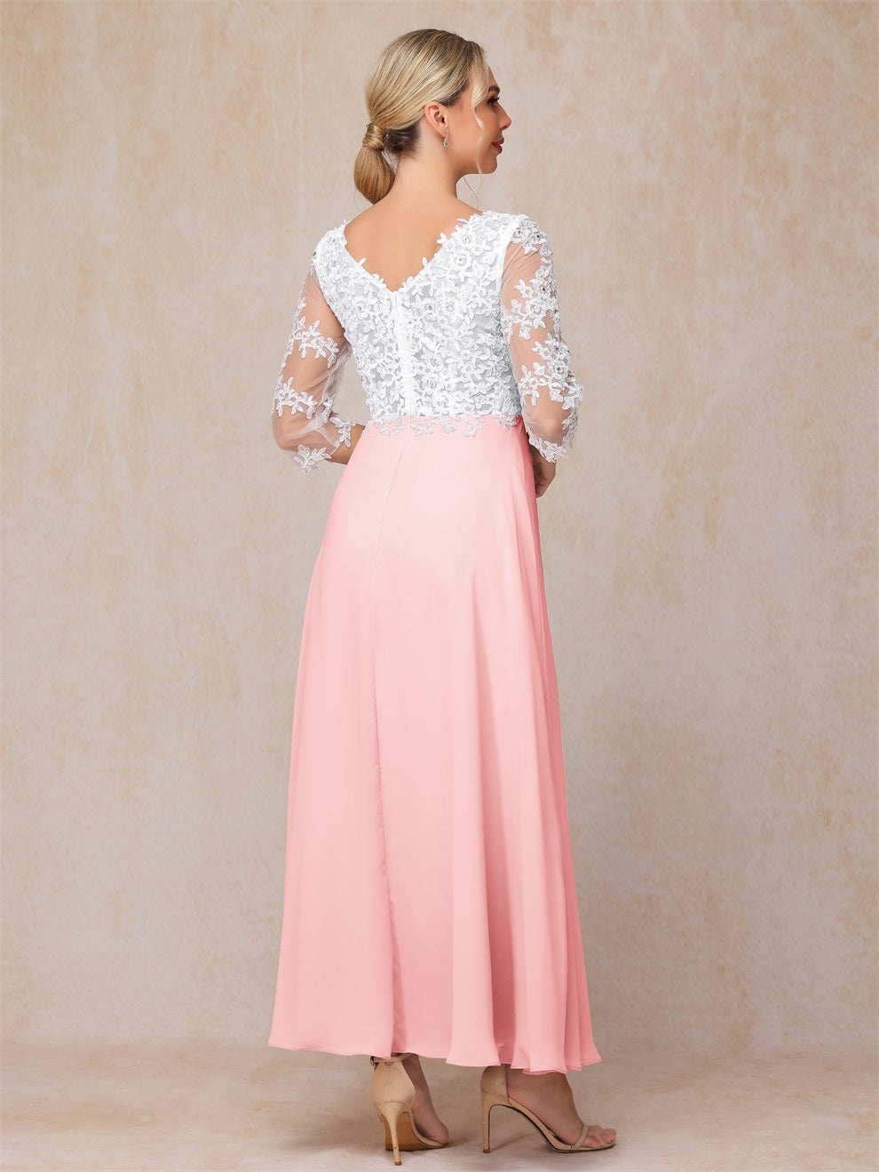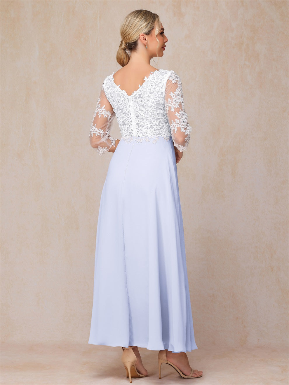 Empire Trapez Illusion 3/4 Ärmel Chiffon Spitze Mutter der Braut Kleid