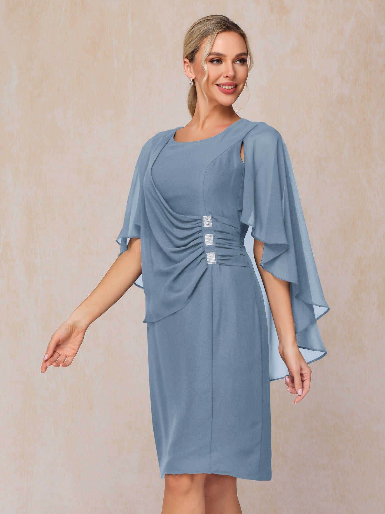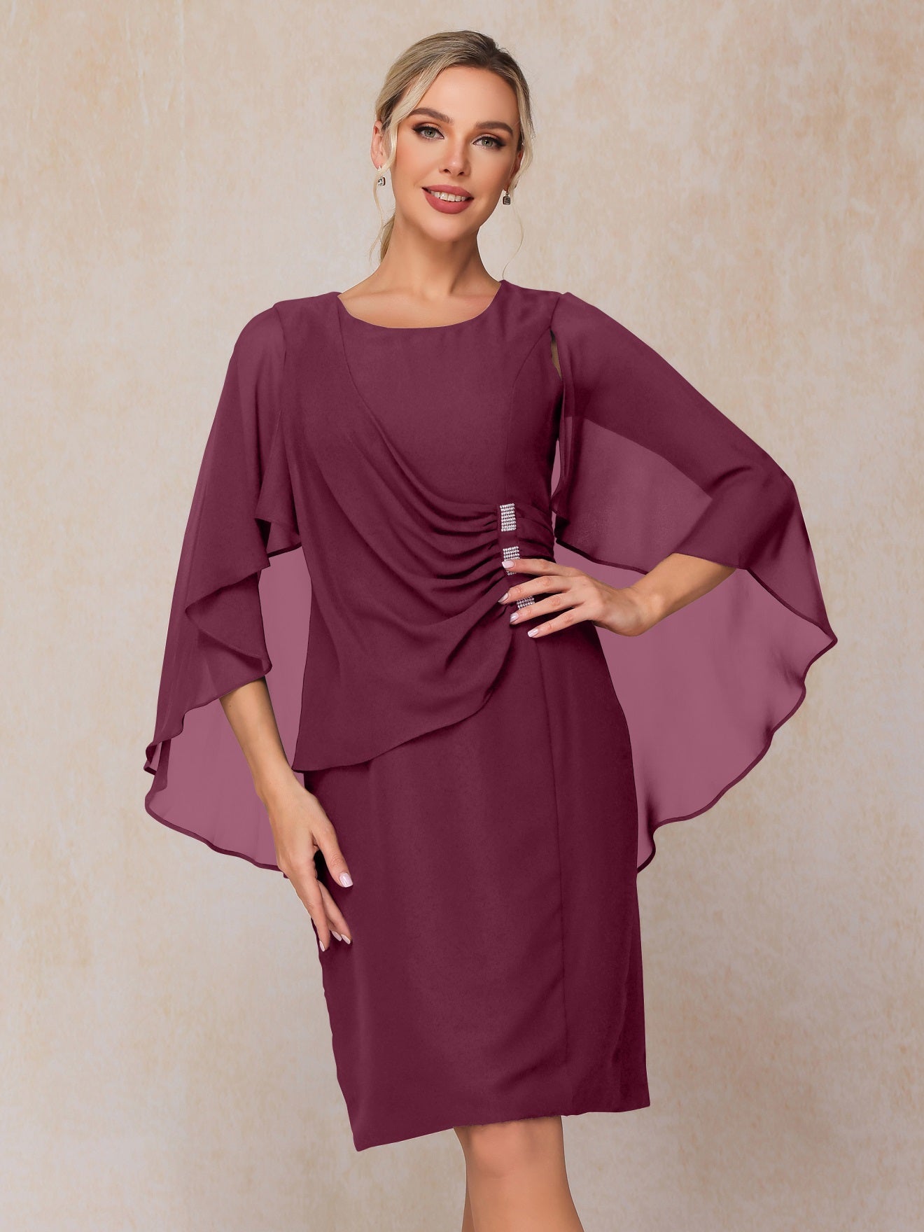 Etui Asymmetrische Ärmel U-Ausschnitt Plissee Chiffon Brautmutterkleider mit Cape