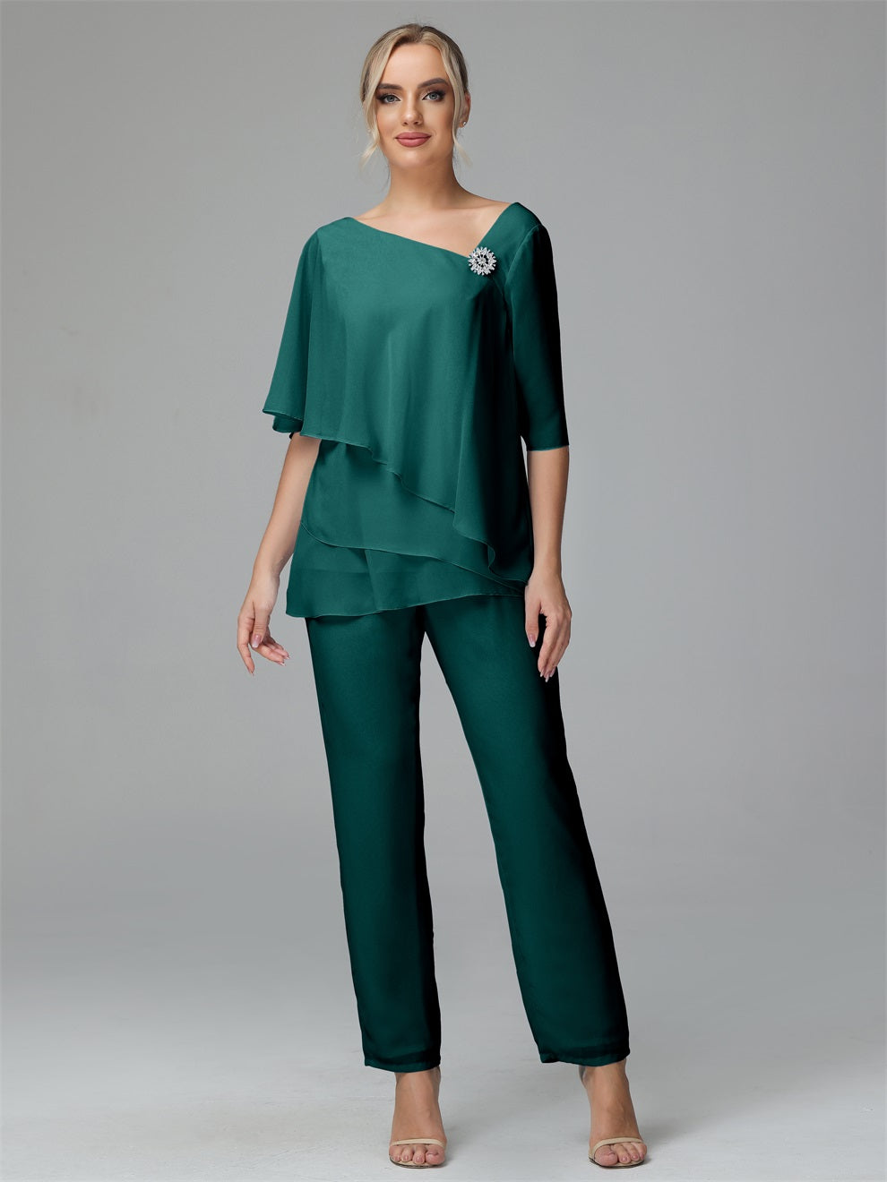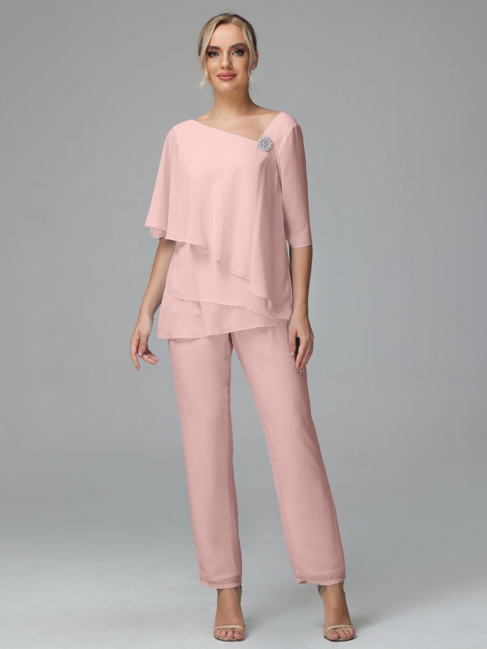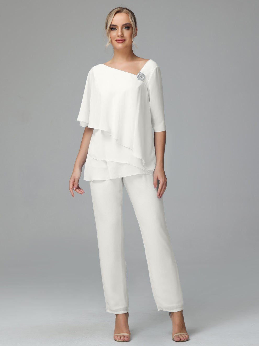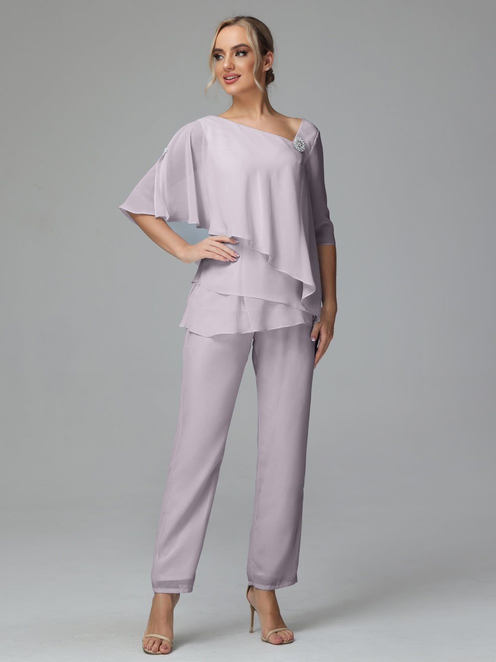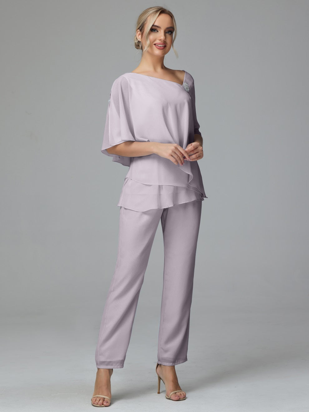 Kurze Ärmel Chiffon Mutter der Braut Kleid Hose Anzüge mit Perlen