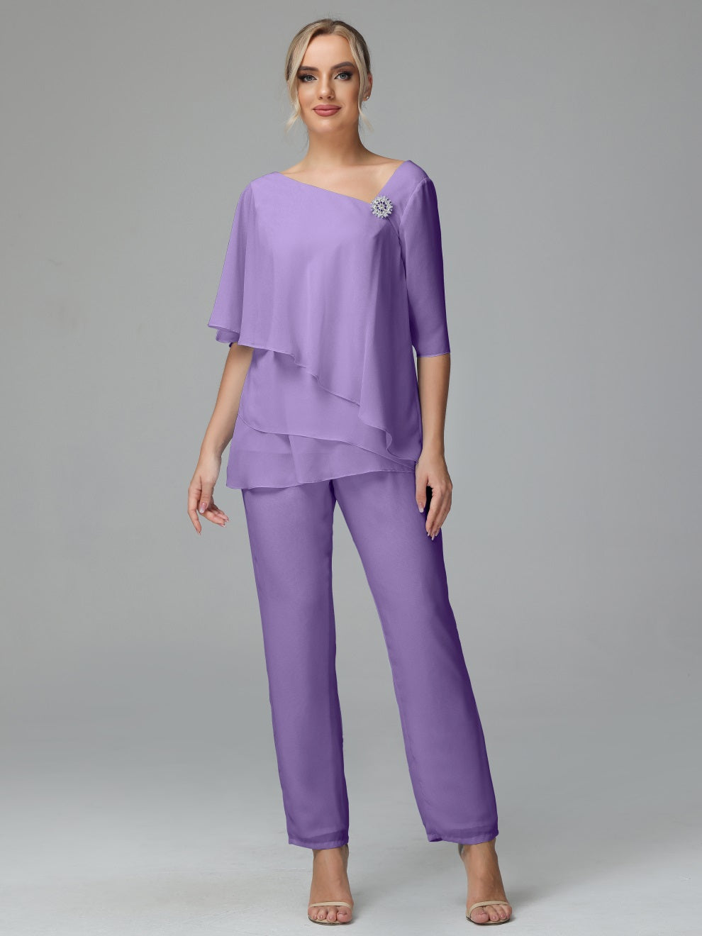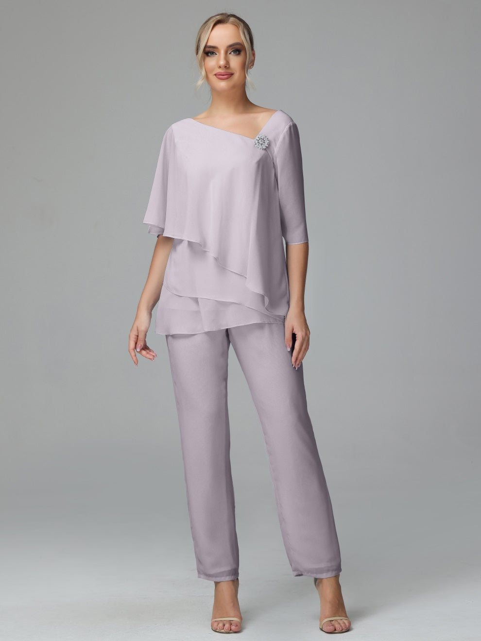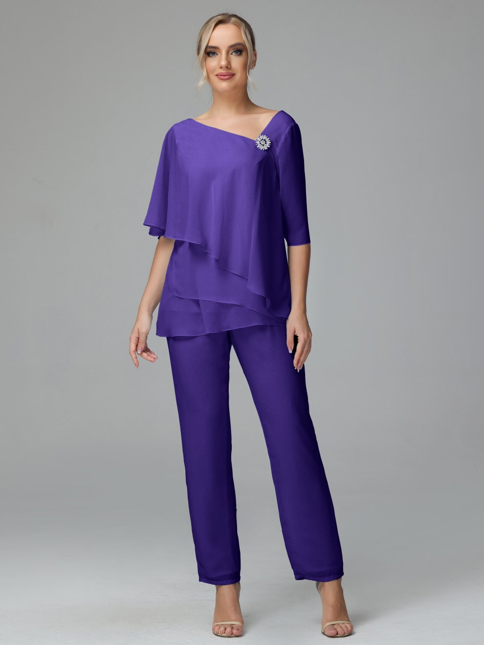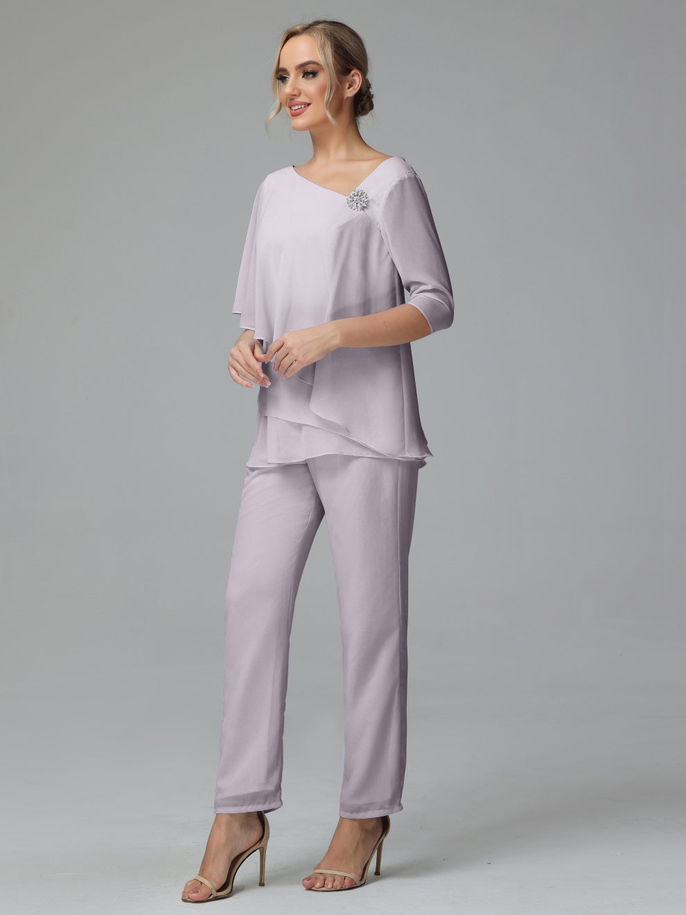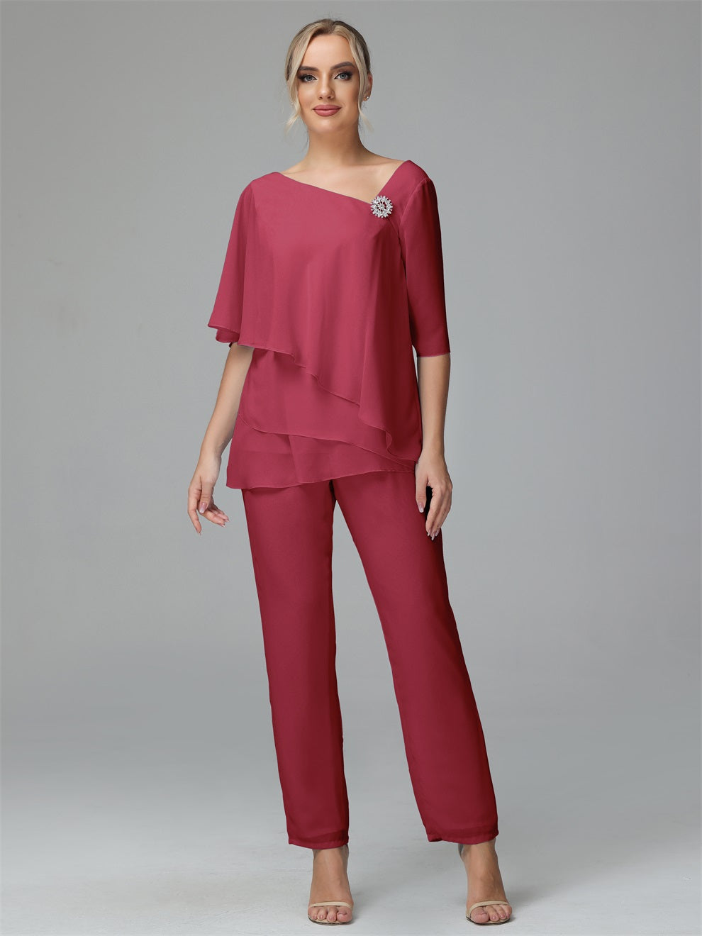 Kurze Ärmel Chiffon Mutter der Braut Kleid Hose Anzüge mit Perlen