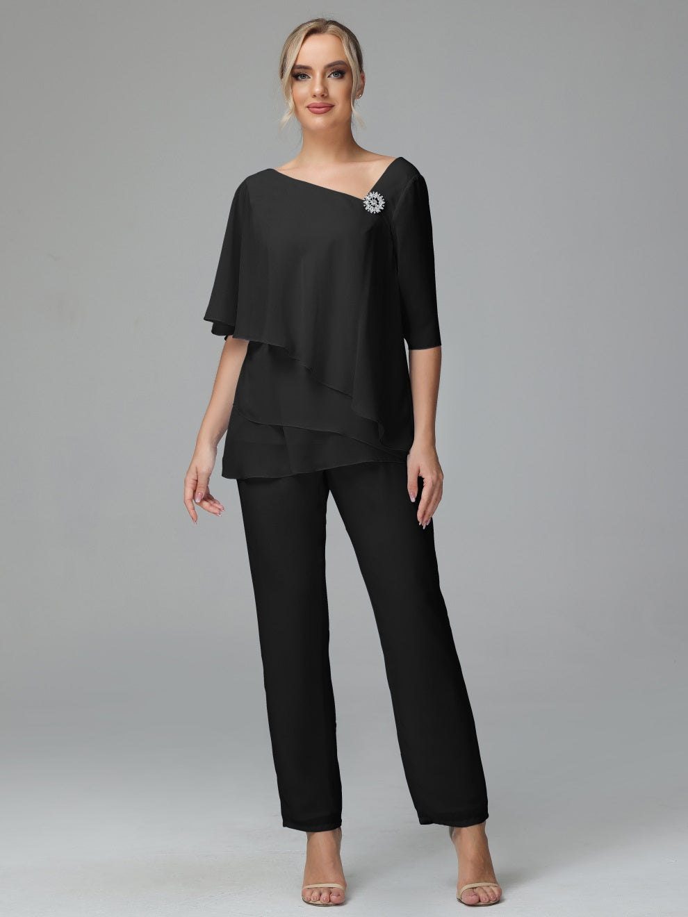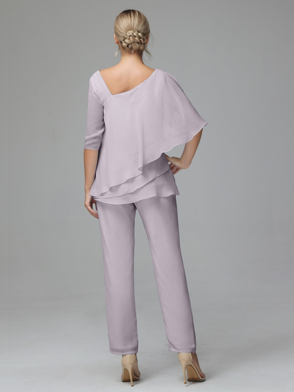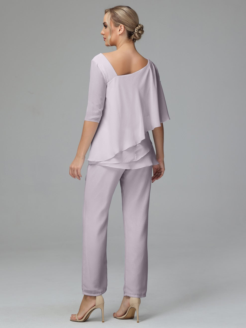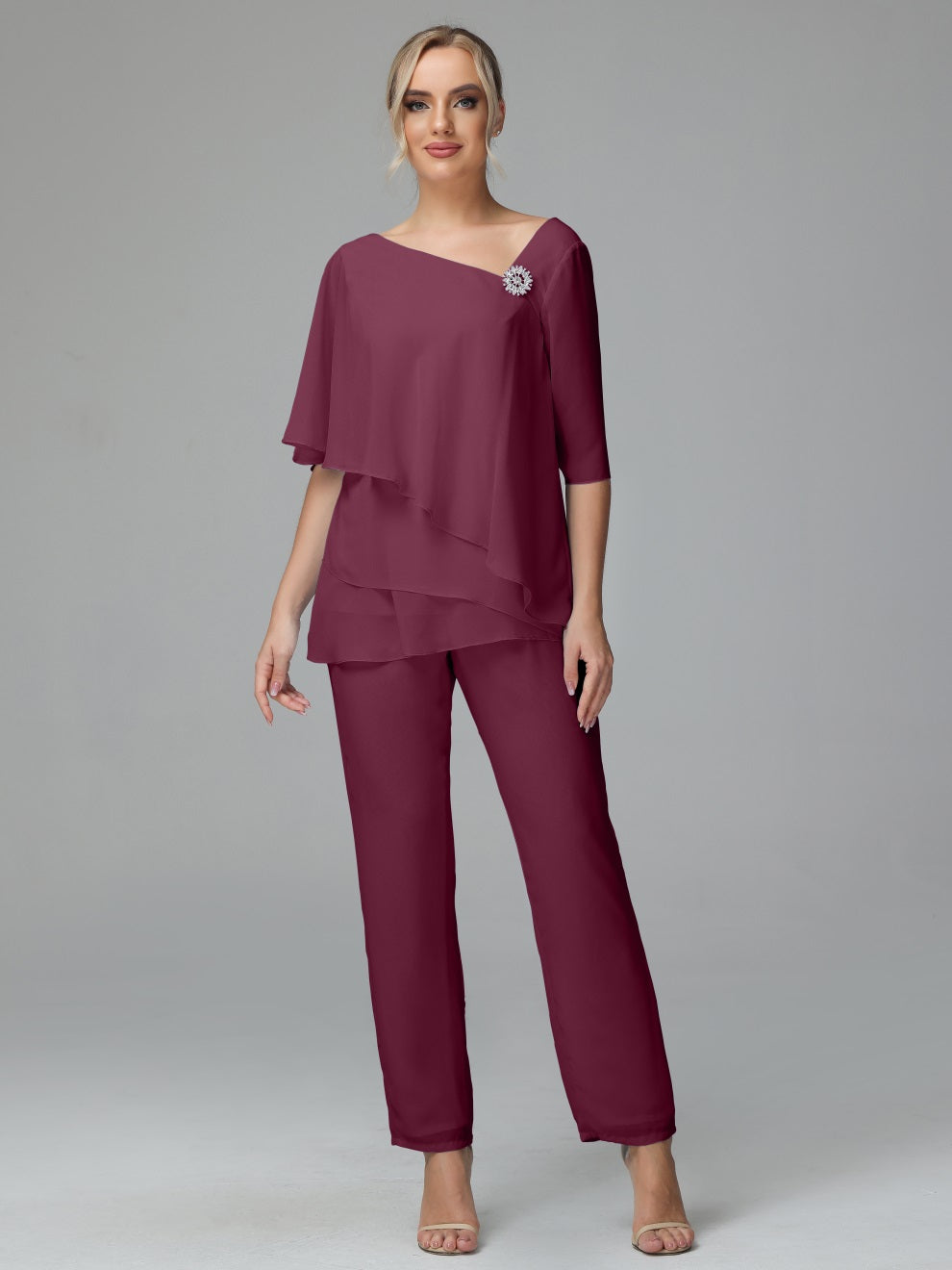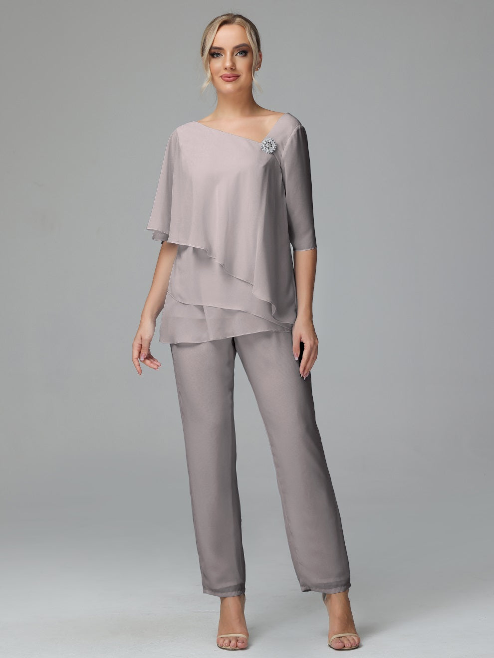 Kurze Ärmel Chiffon Mutter der Braut Kleid Hose Anzüge mit Perlen