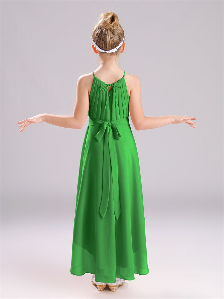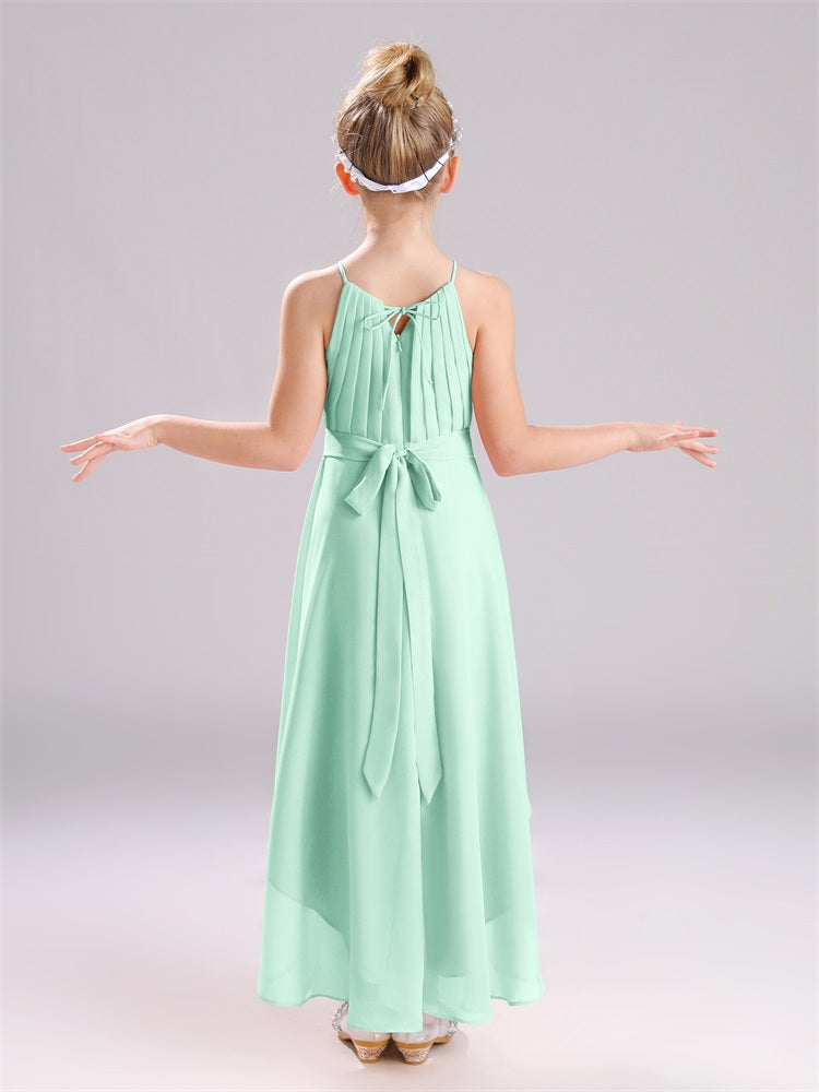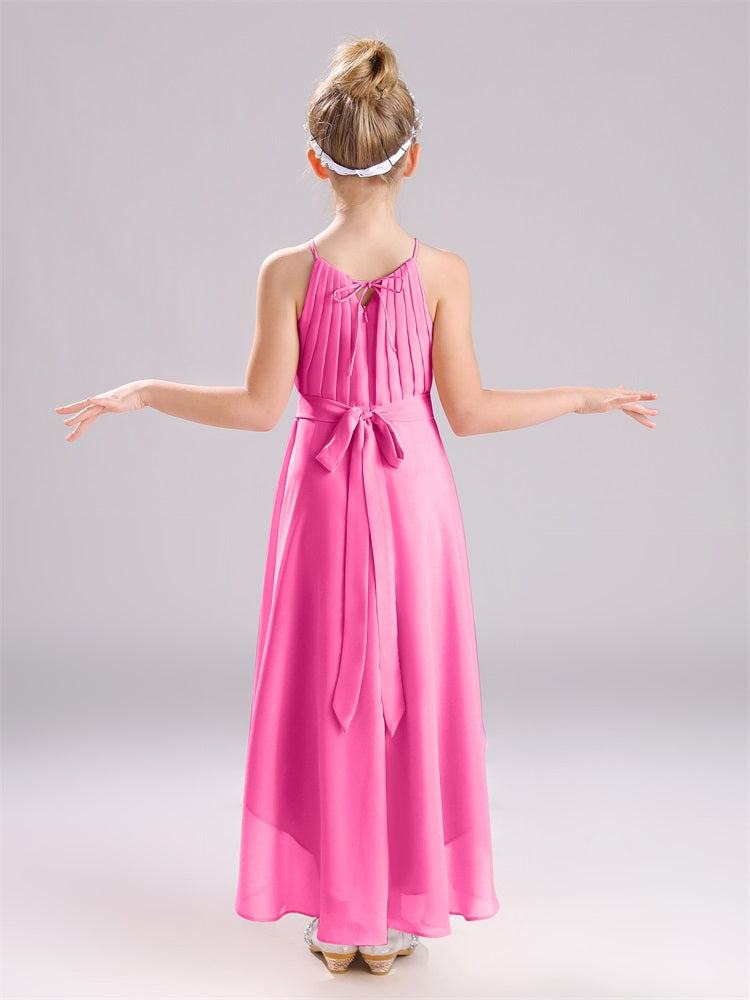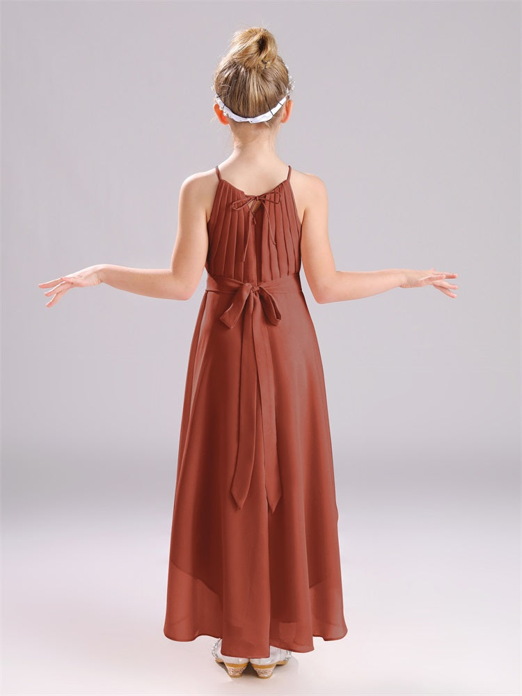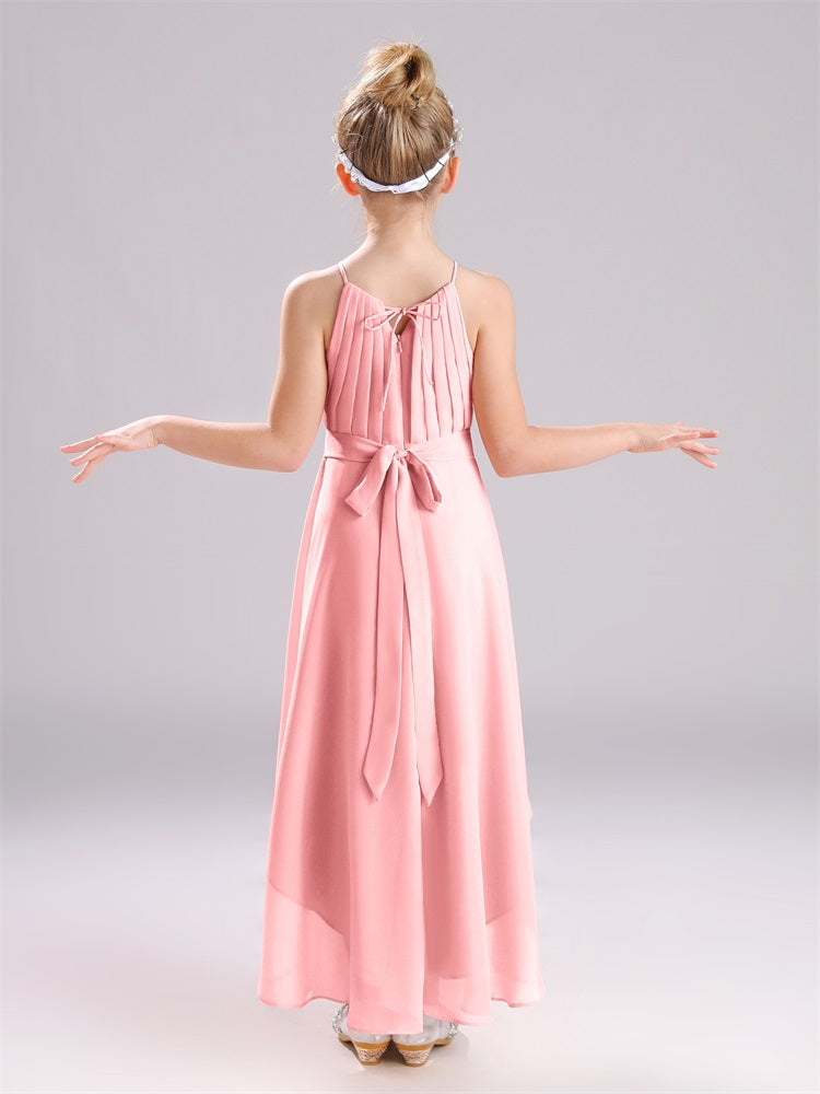 Halfter Ärmellos Falten Lang Chiffon Junior Brautjungfernkleider