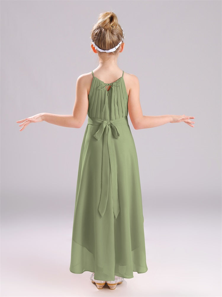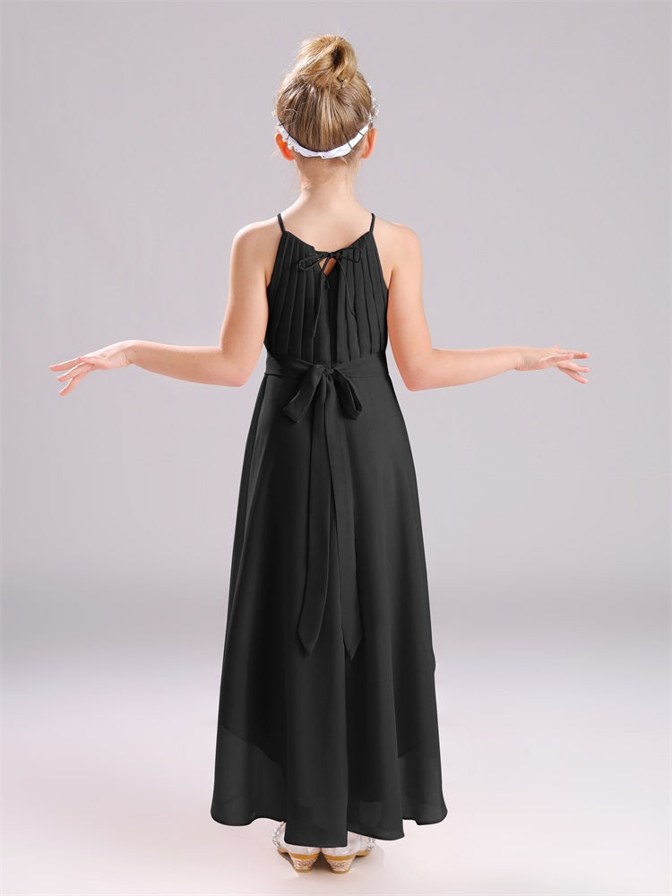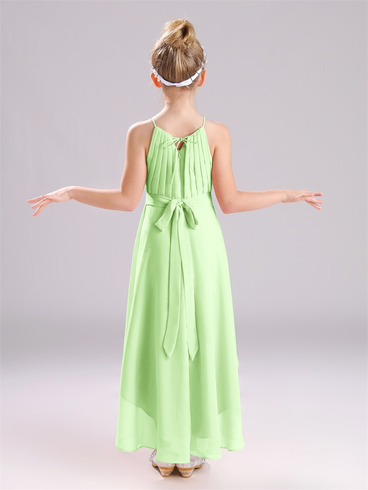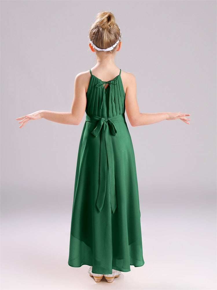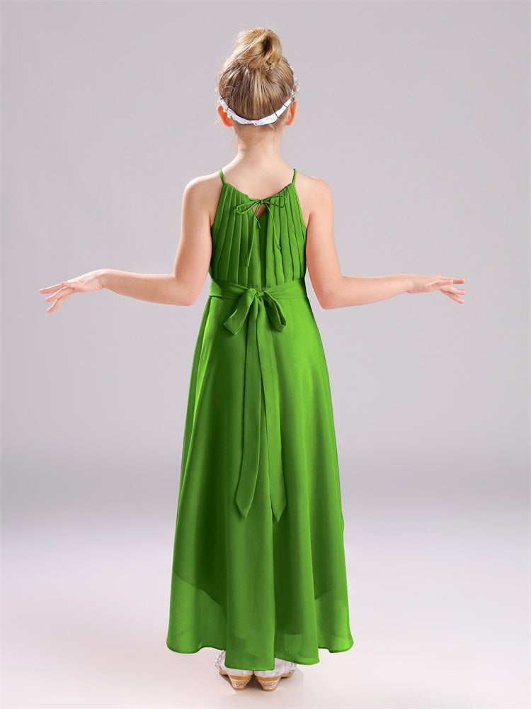 Halfter Ärmellos Falten Lang Chiffon Junior Brautjungfernkleider