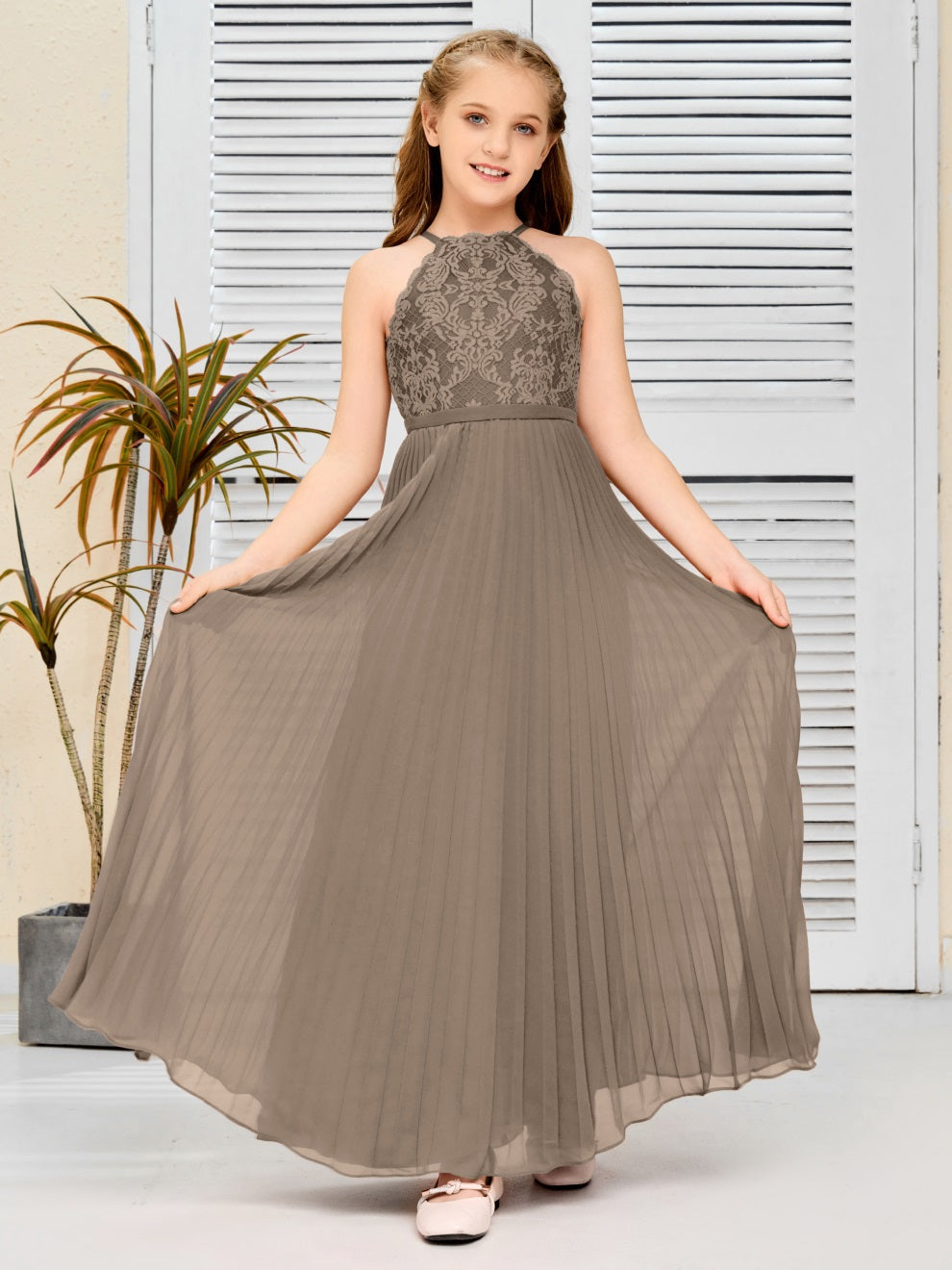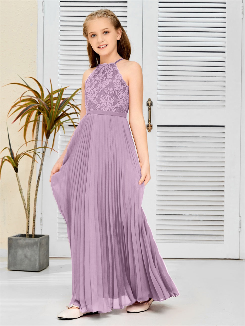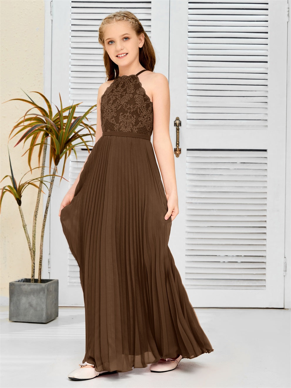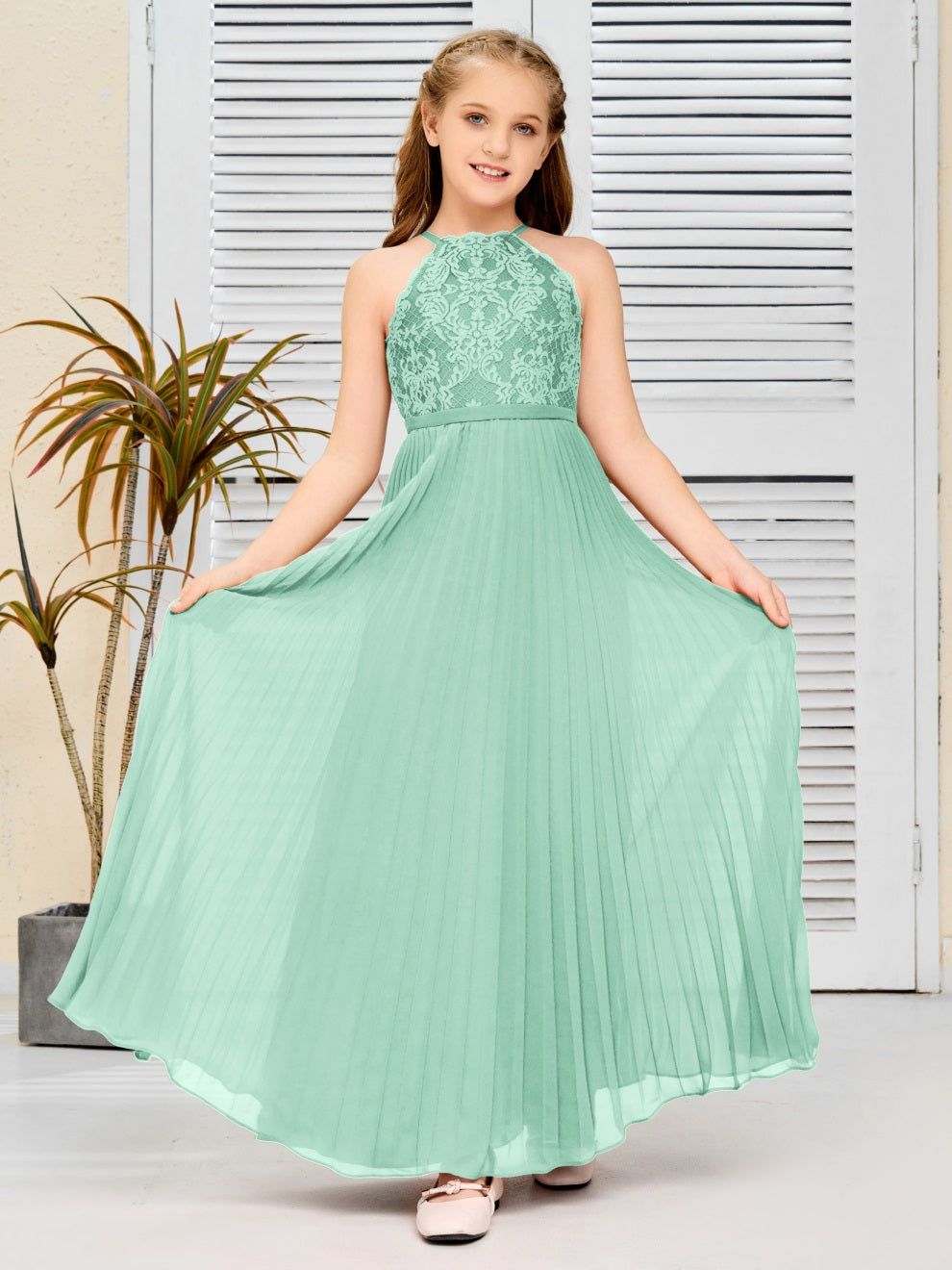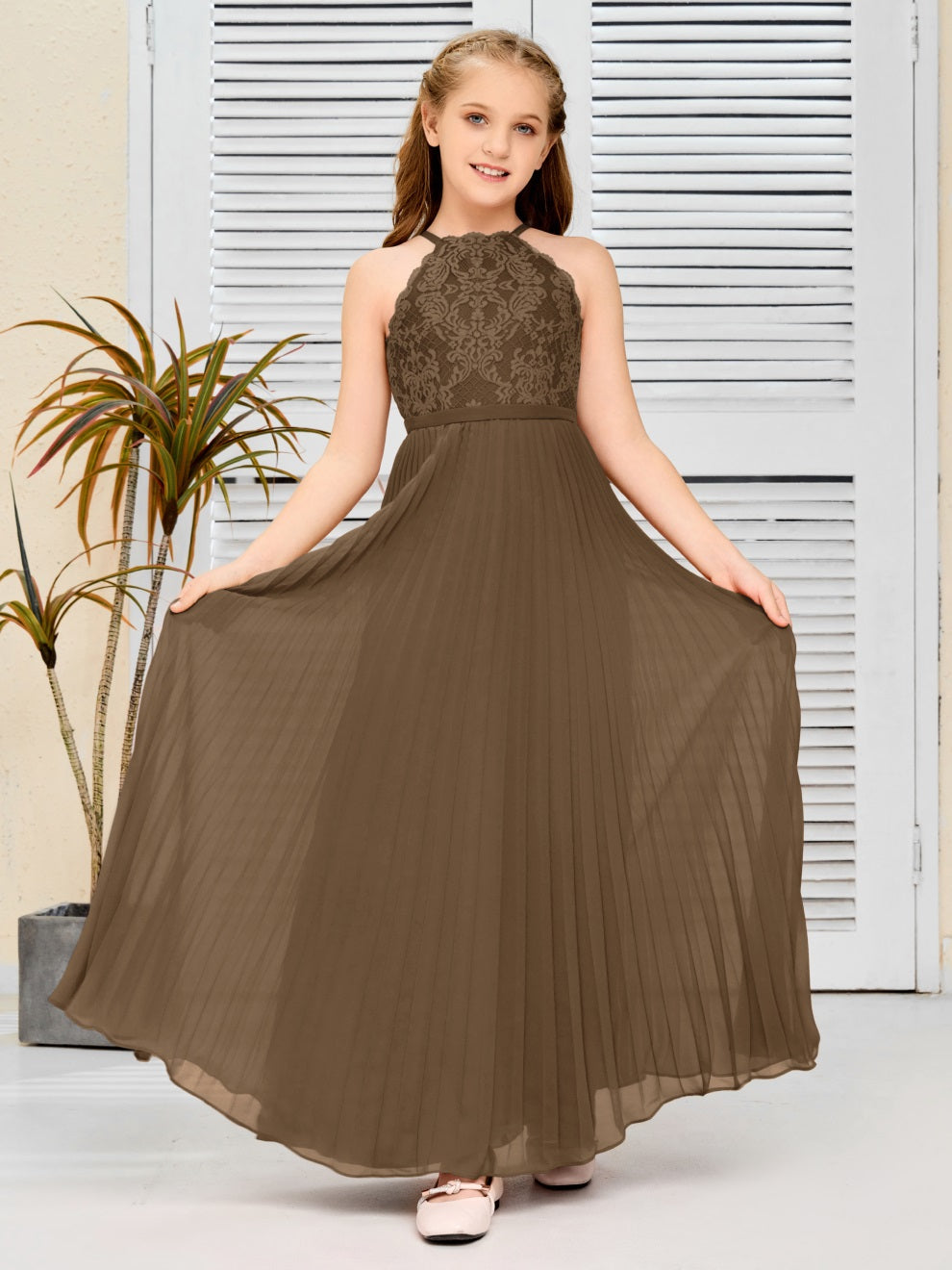 Halter A Linie Chiffon Spitze Junior Brautjungfer Kleid