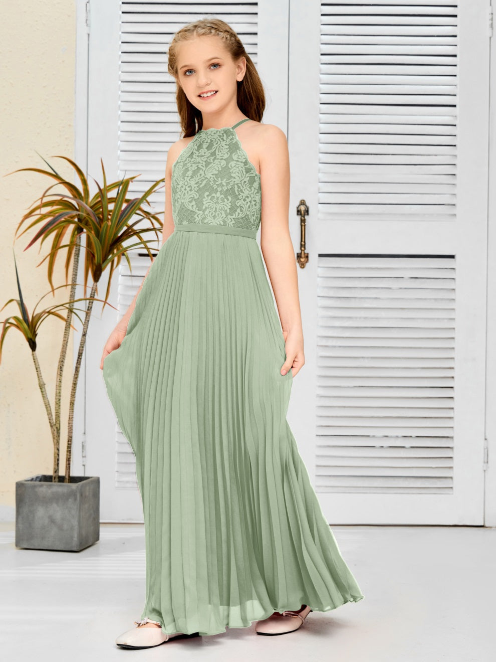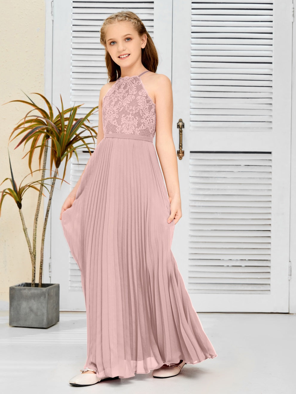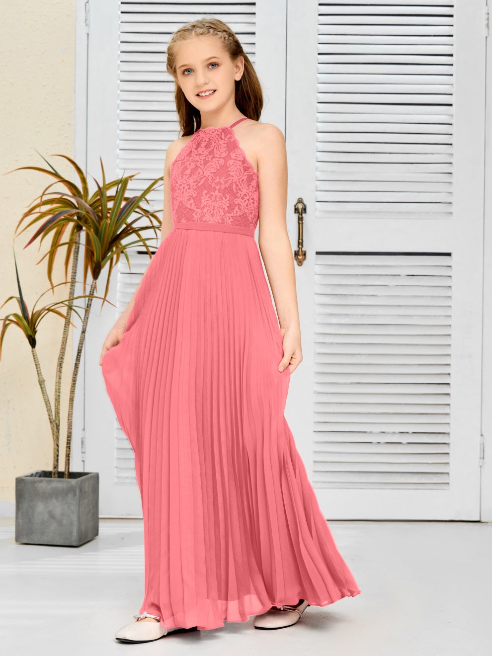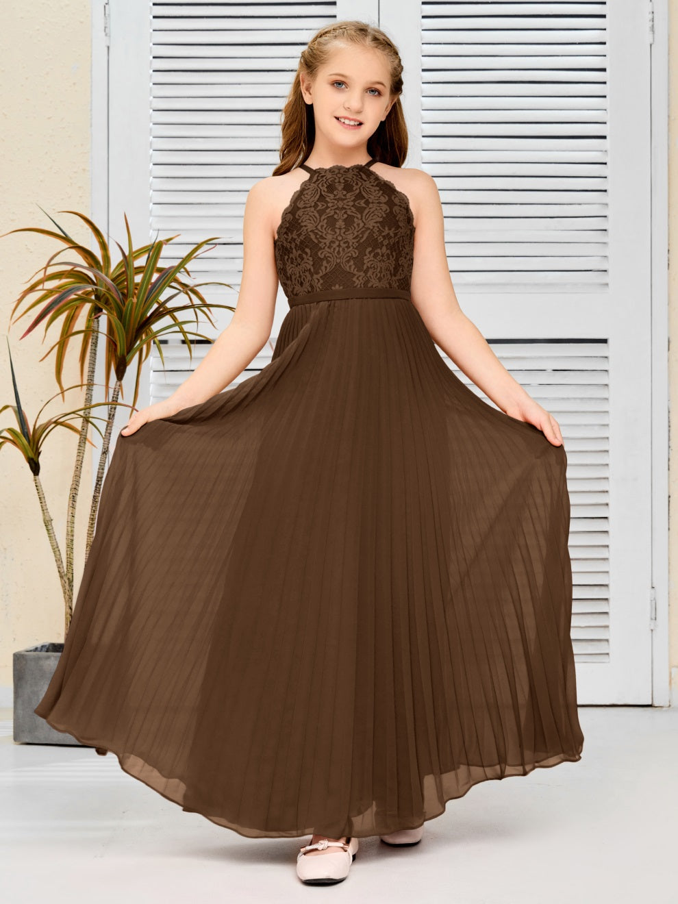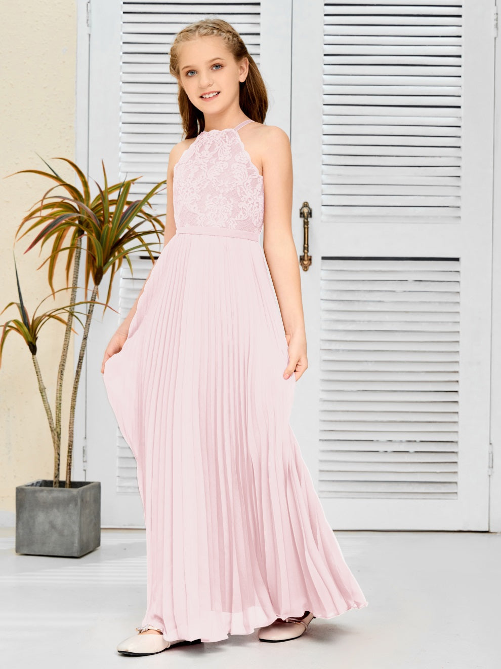 Halter A Linie Chiffon Spitze Junior Brautjungfer Kleid
