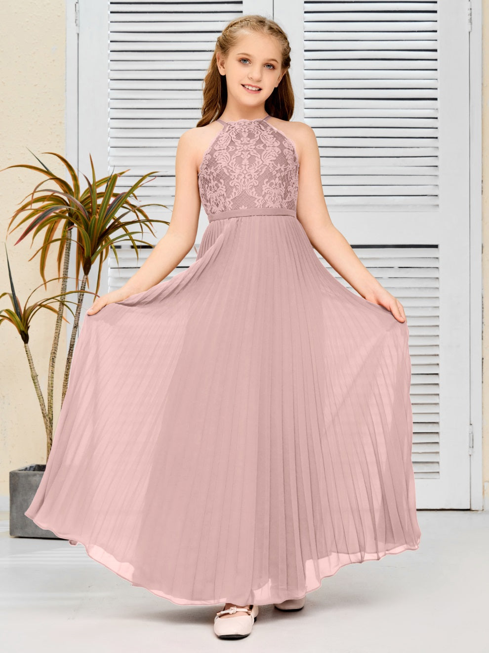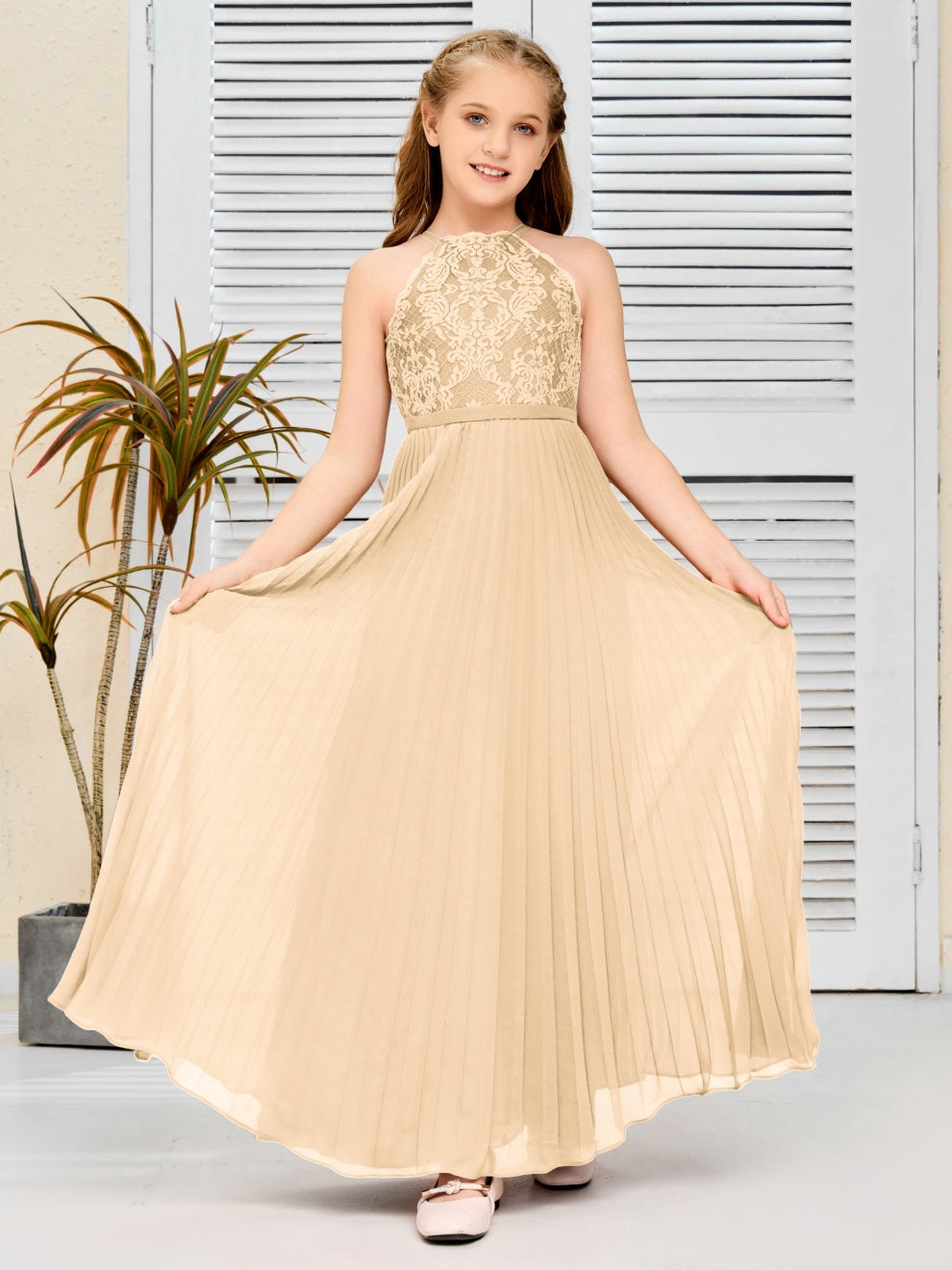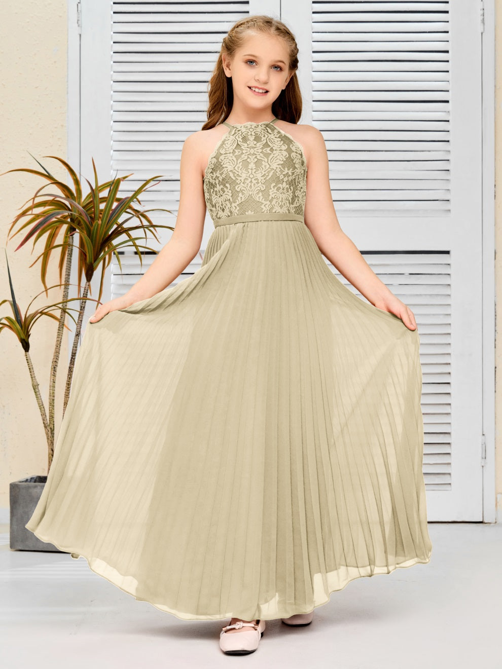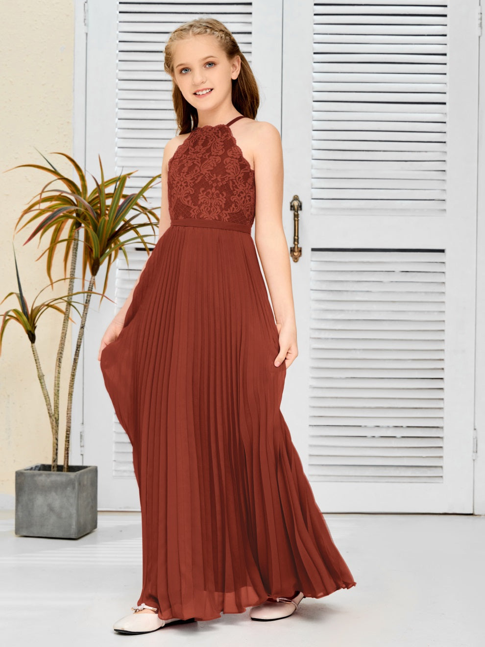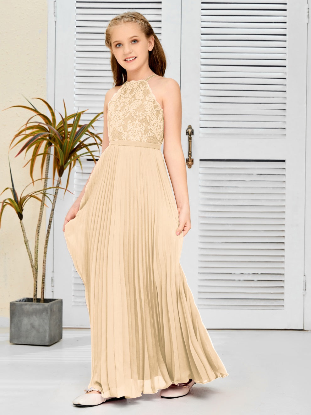 Halter A Linie Chiffon Spitze Junior Brautjungfer Kleid