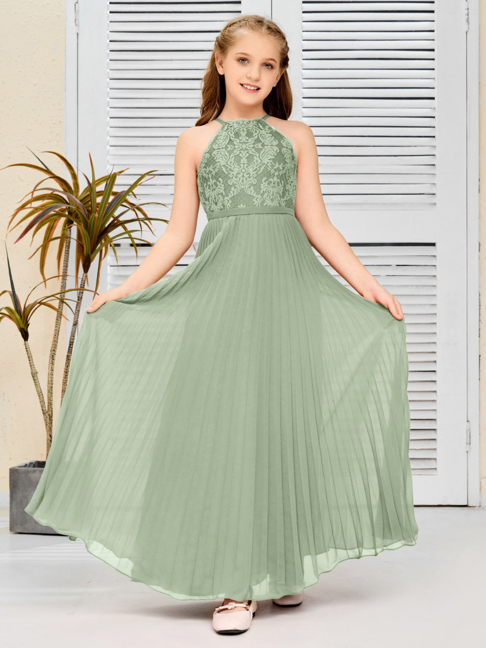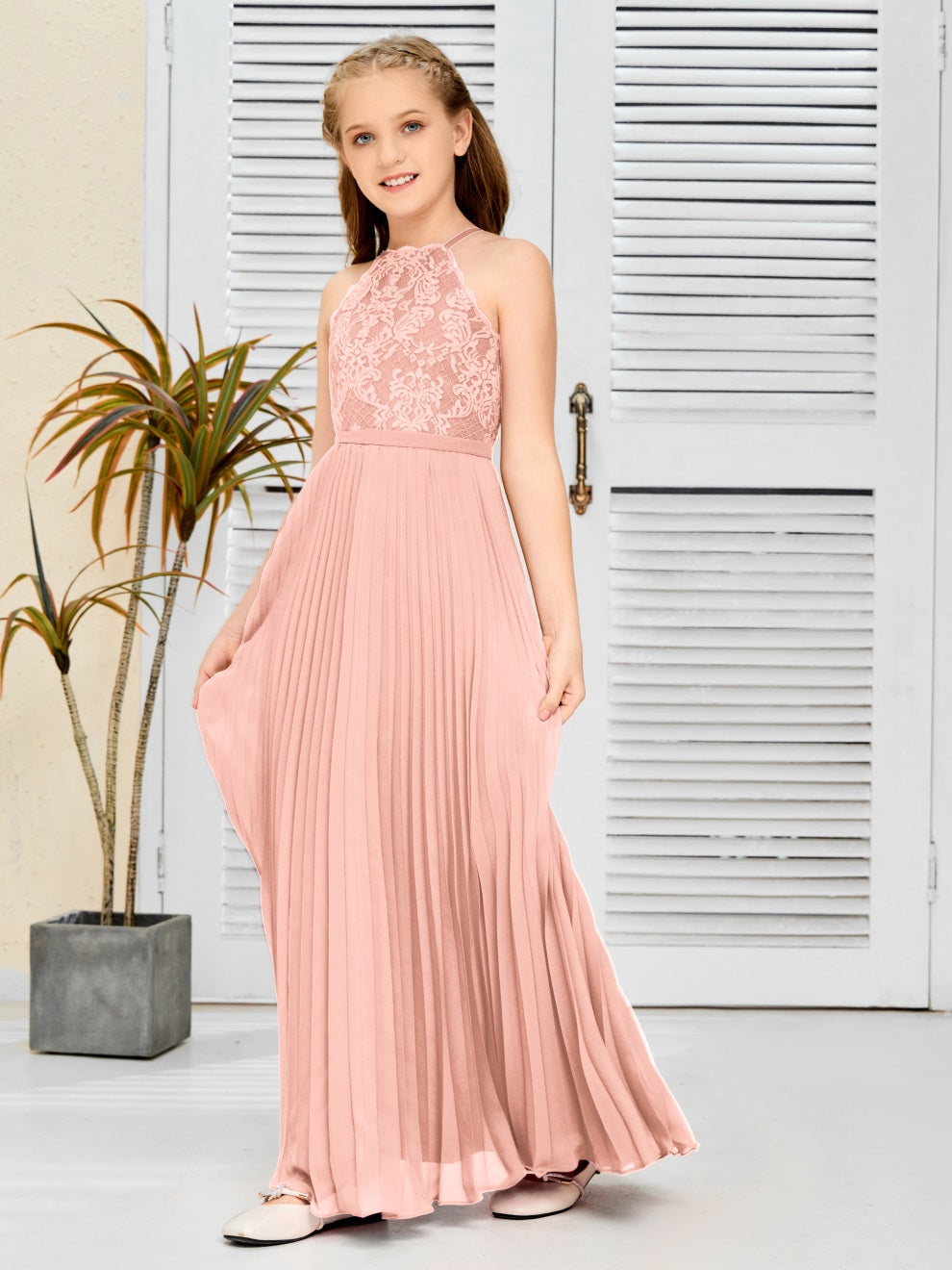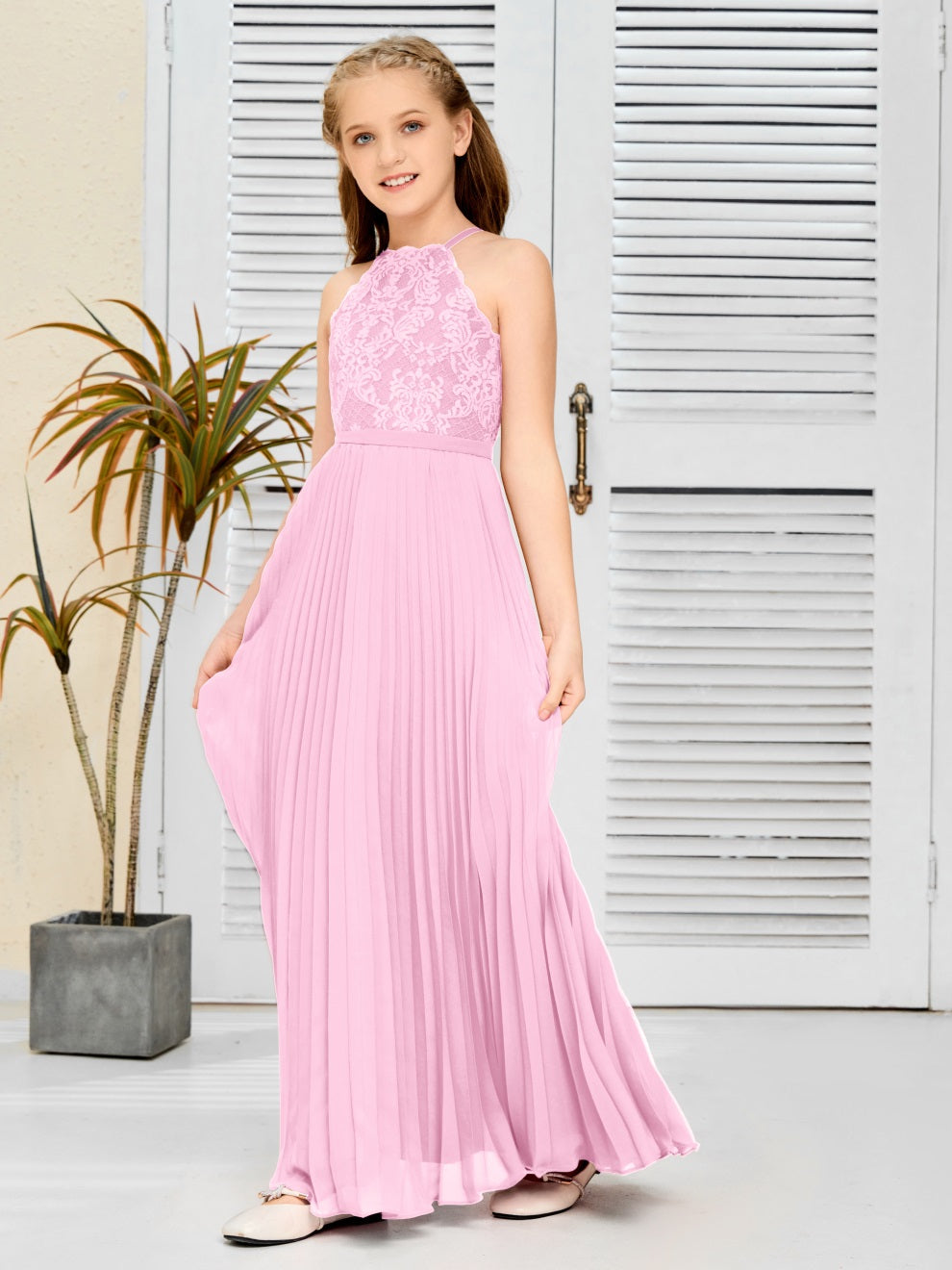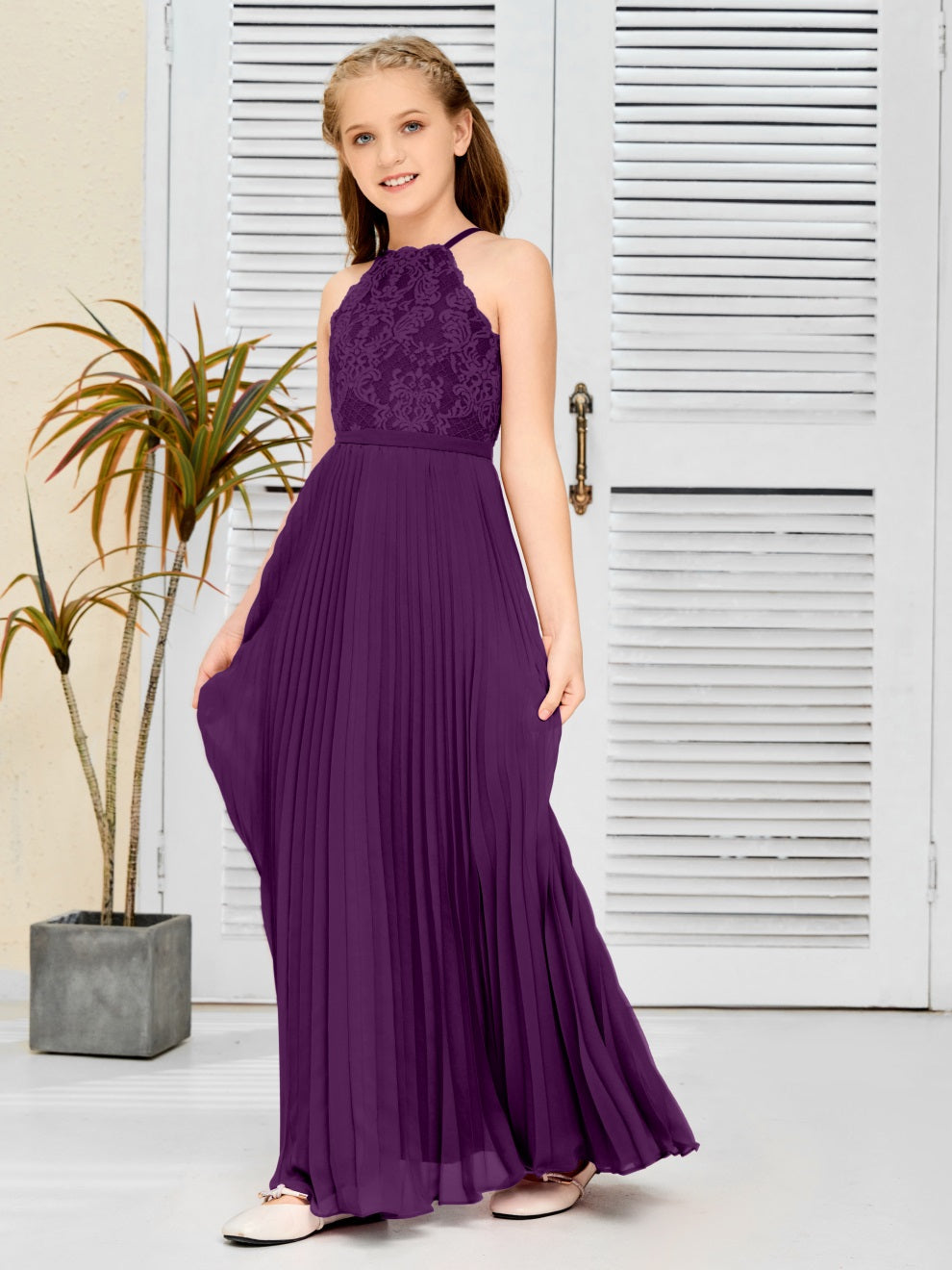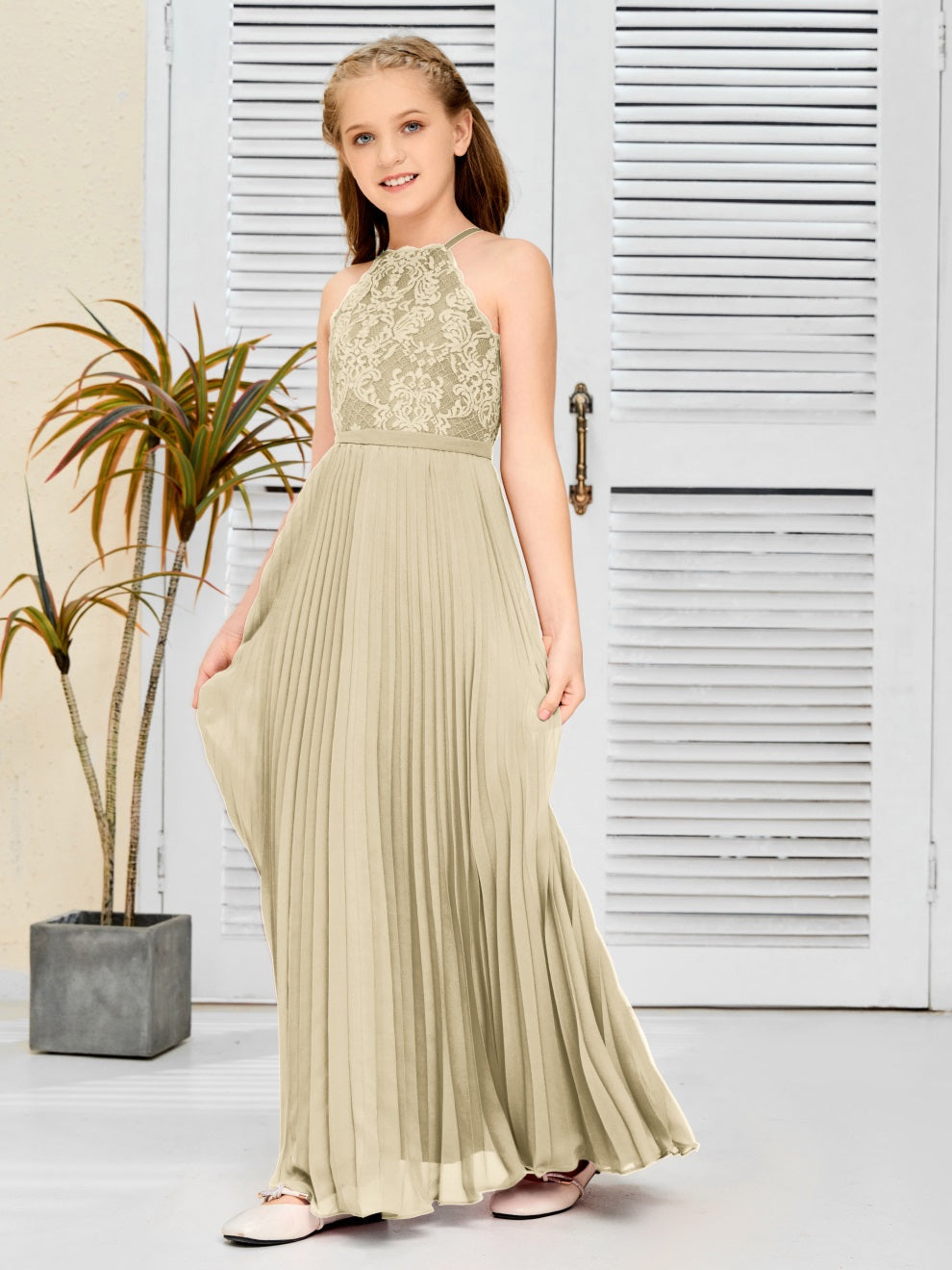 Halter A Linie Chiffon Spitze Junior Brautjungfer Kleid