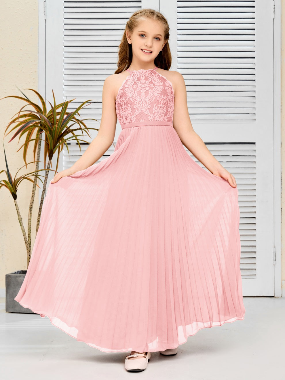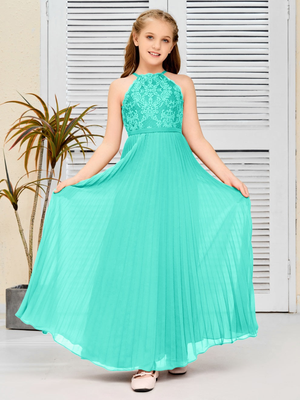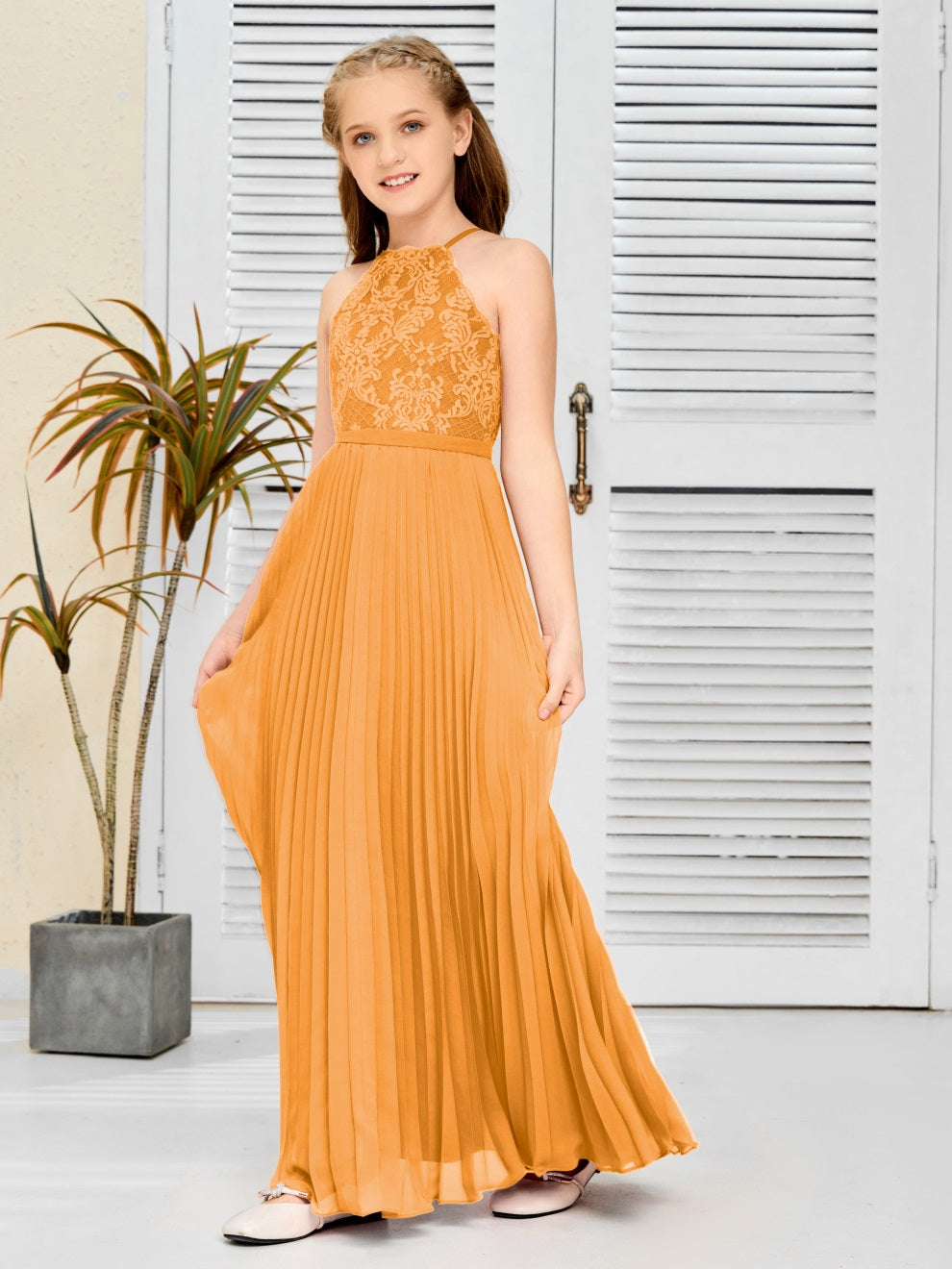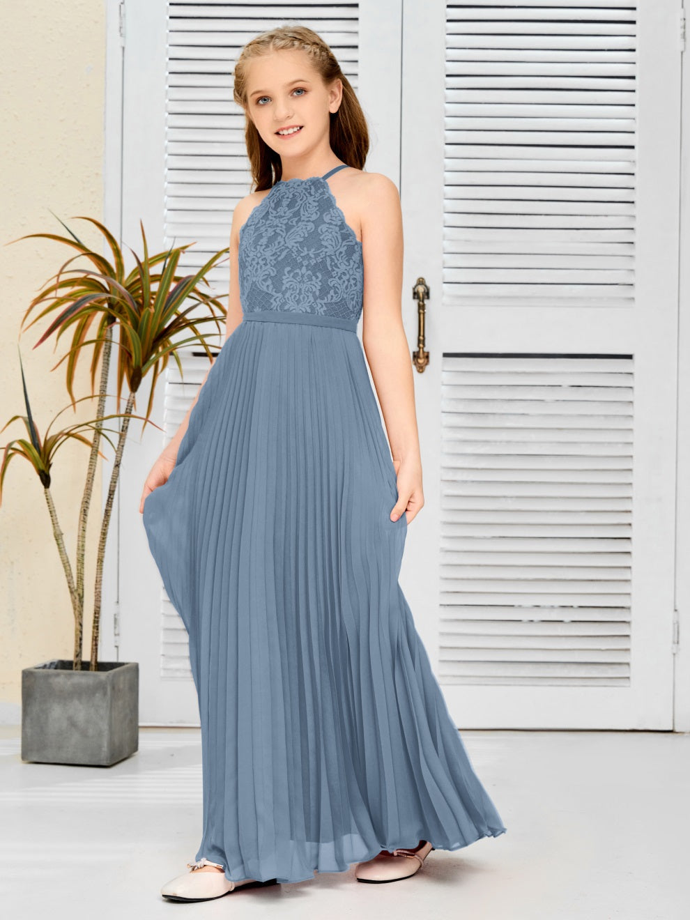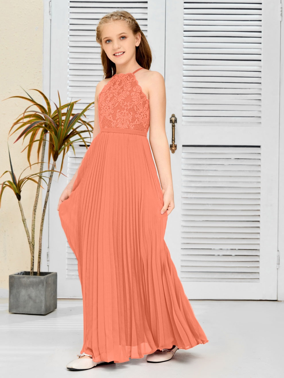 Halter A Linie Chiffon Spitze Junior Brautjungfer Kleid
