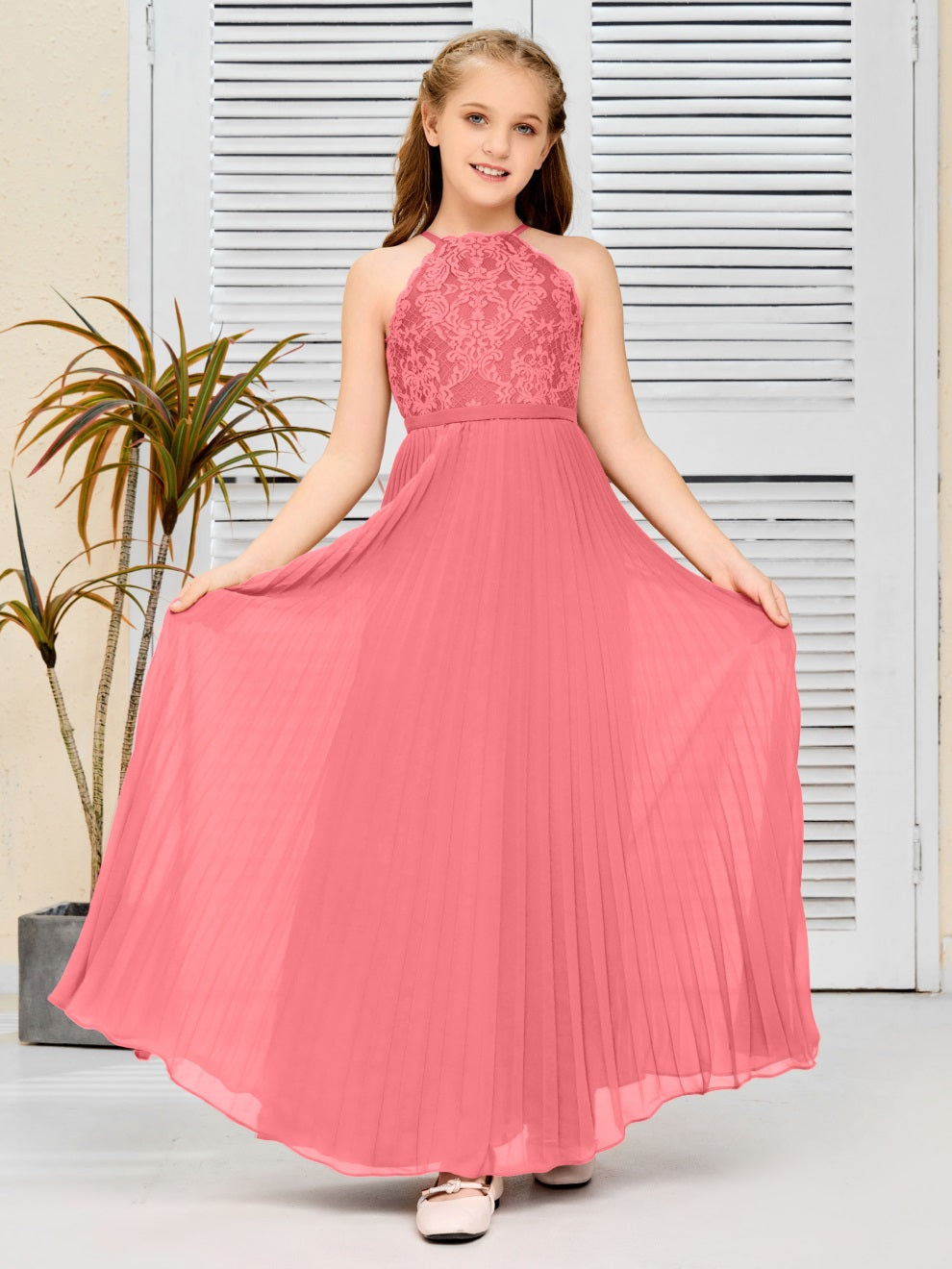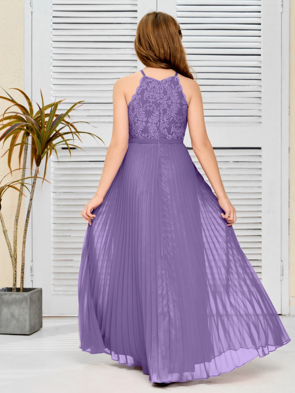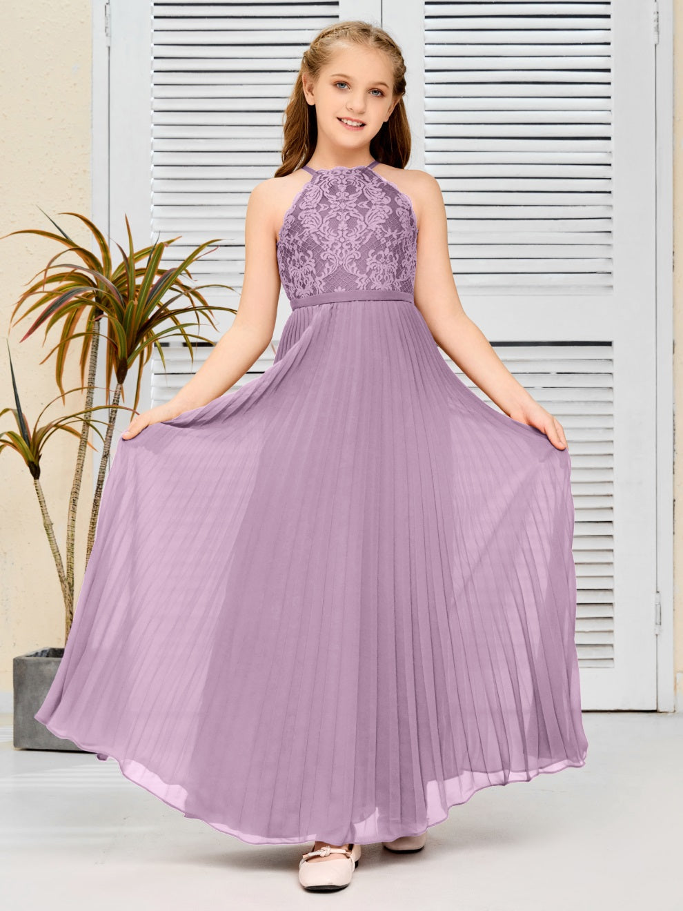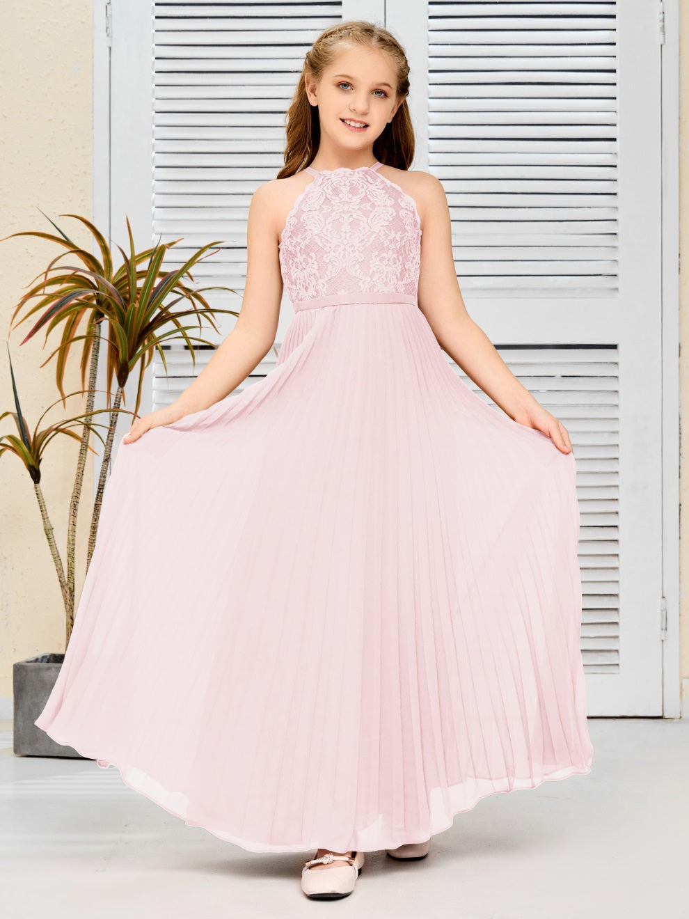 Halter A Linie Chiffon Spitze Junior Brautjungfer Kleid