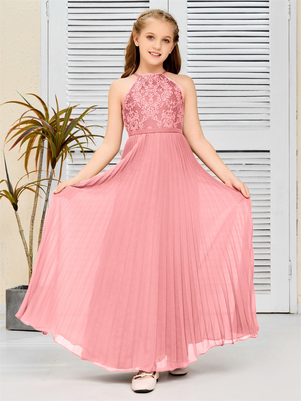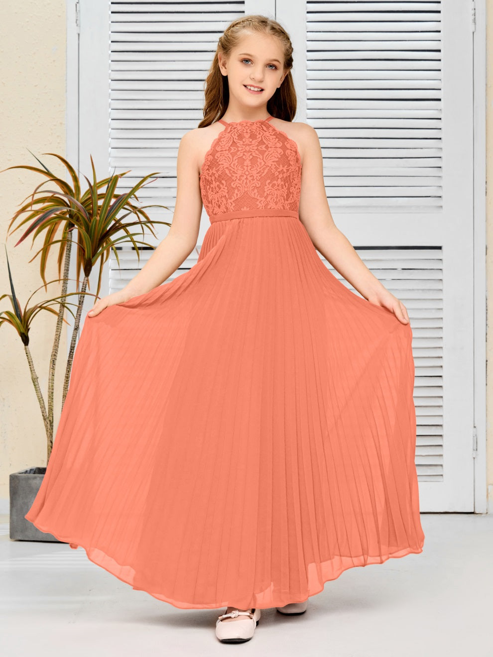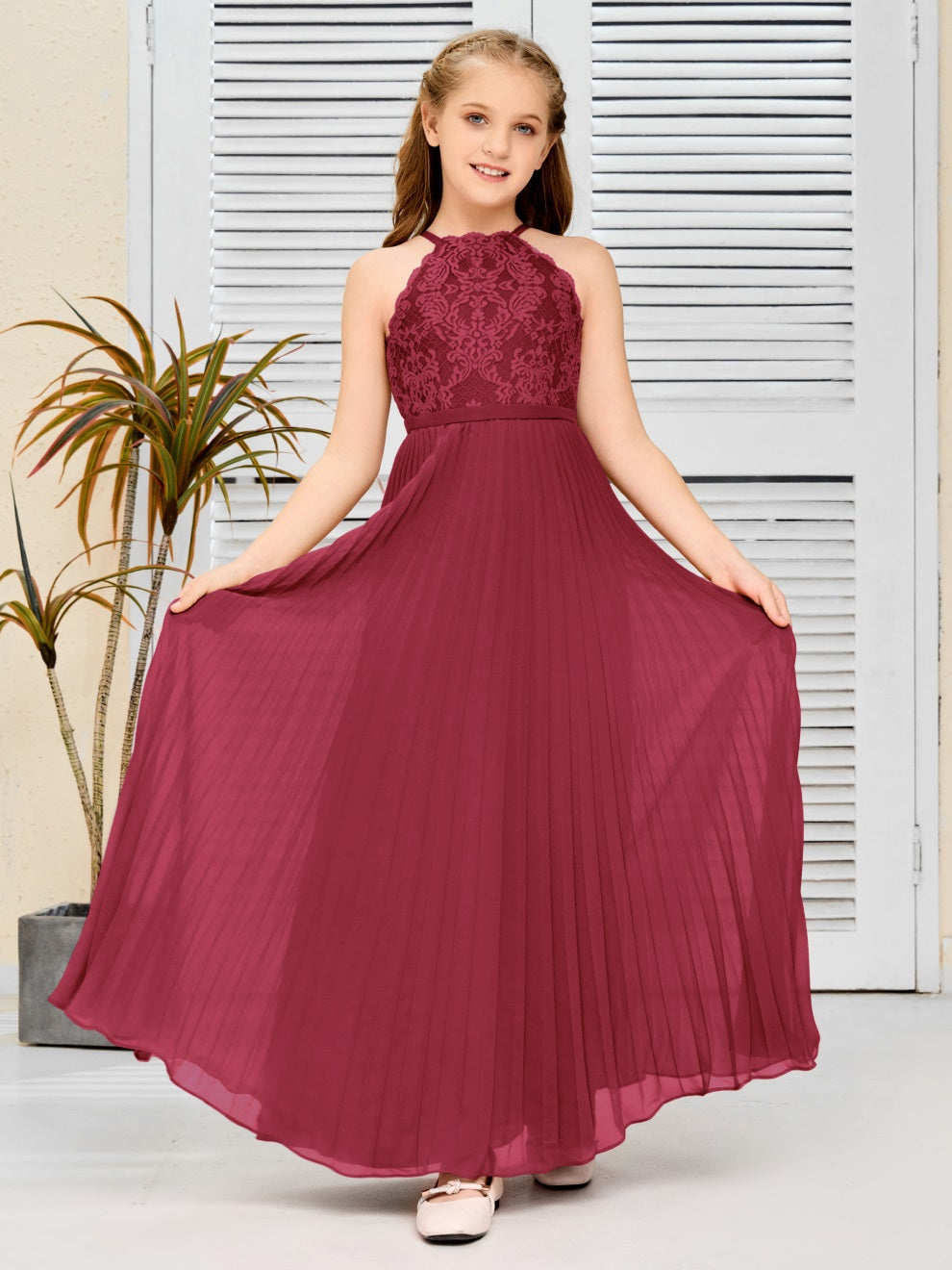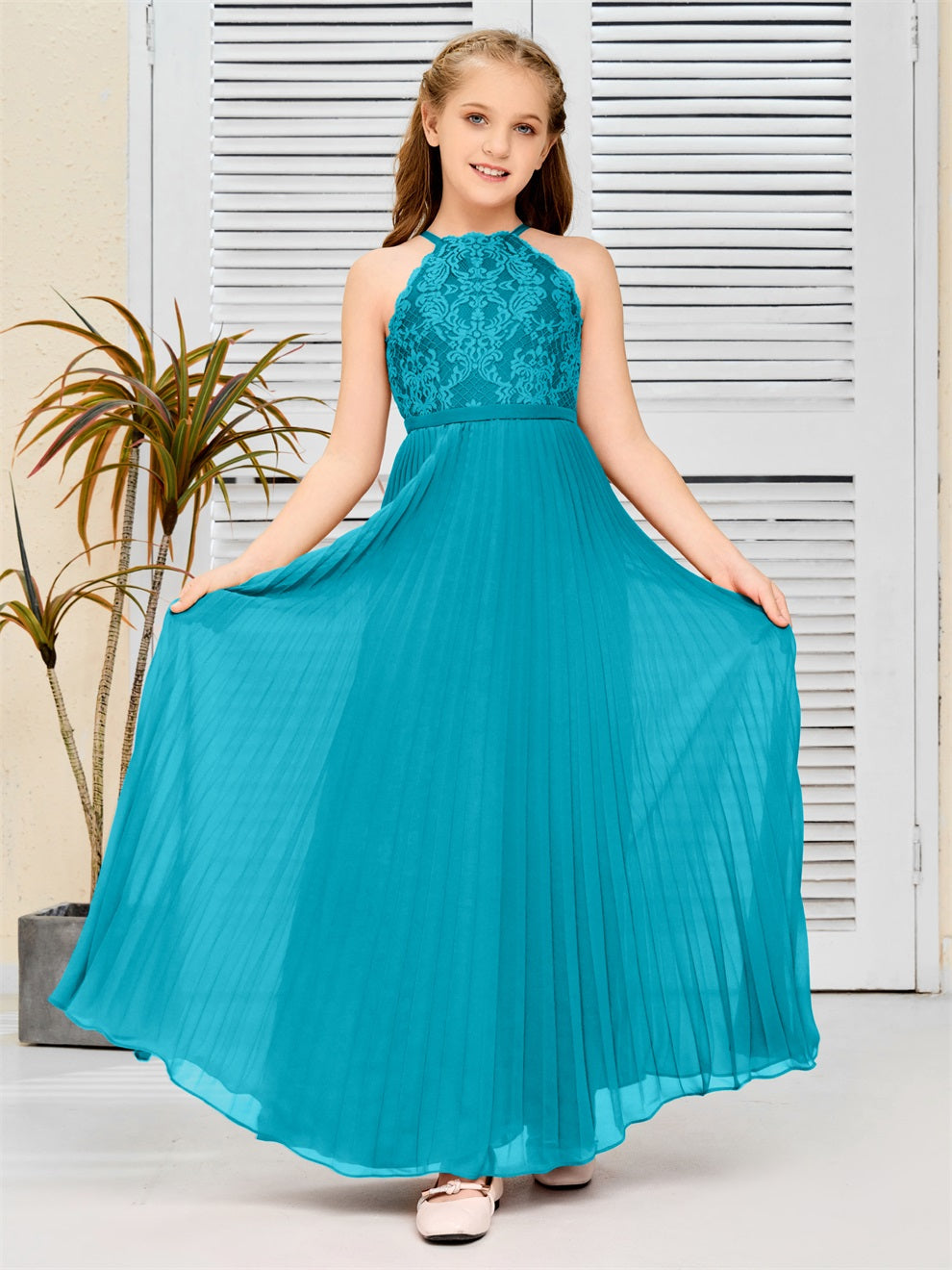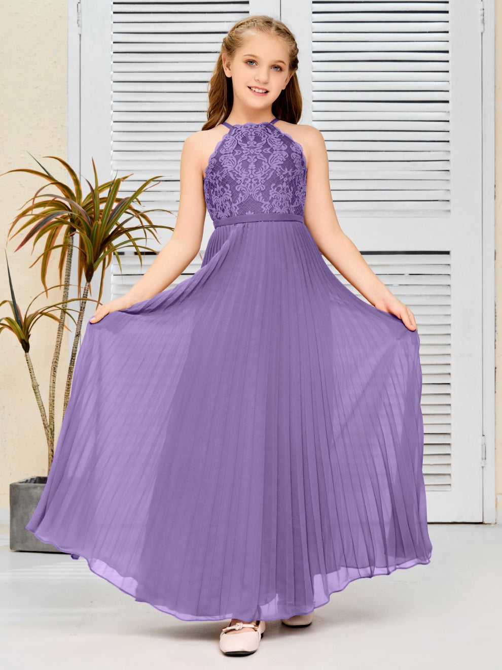 Halter A Linie Chiffon Spitze Junior Brautjungfer Kleid
