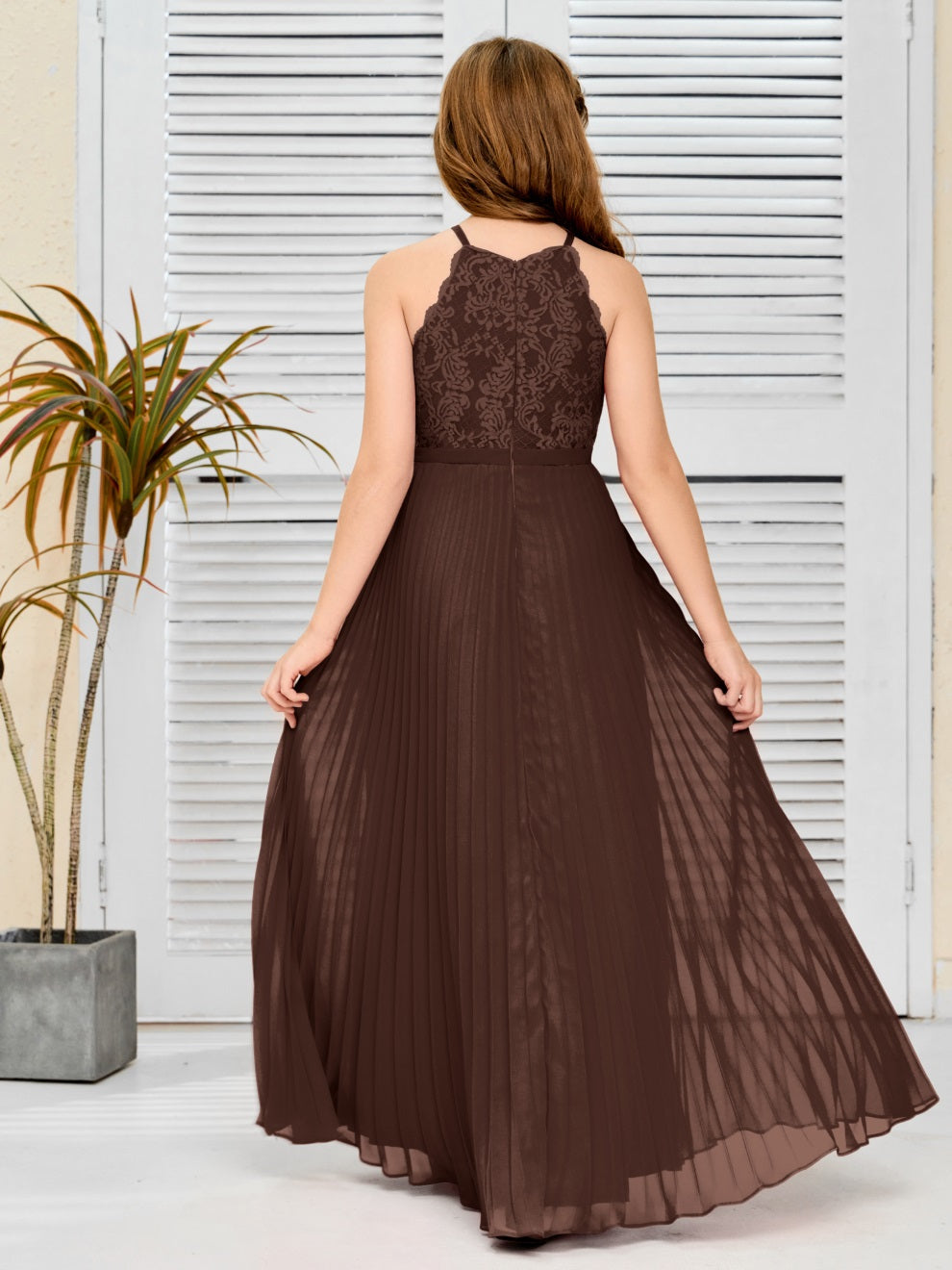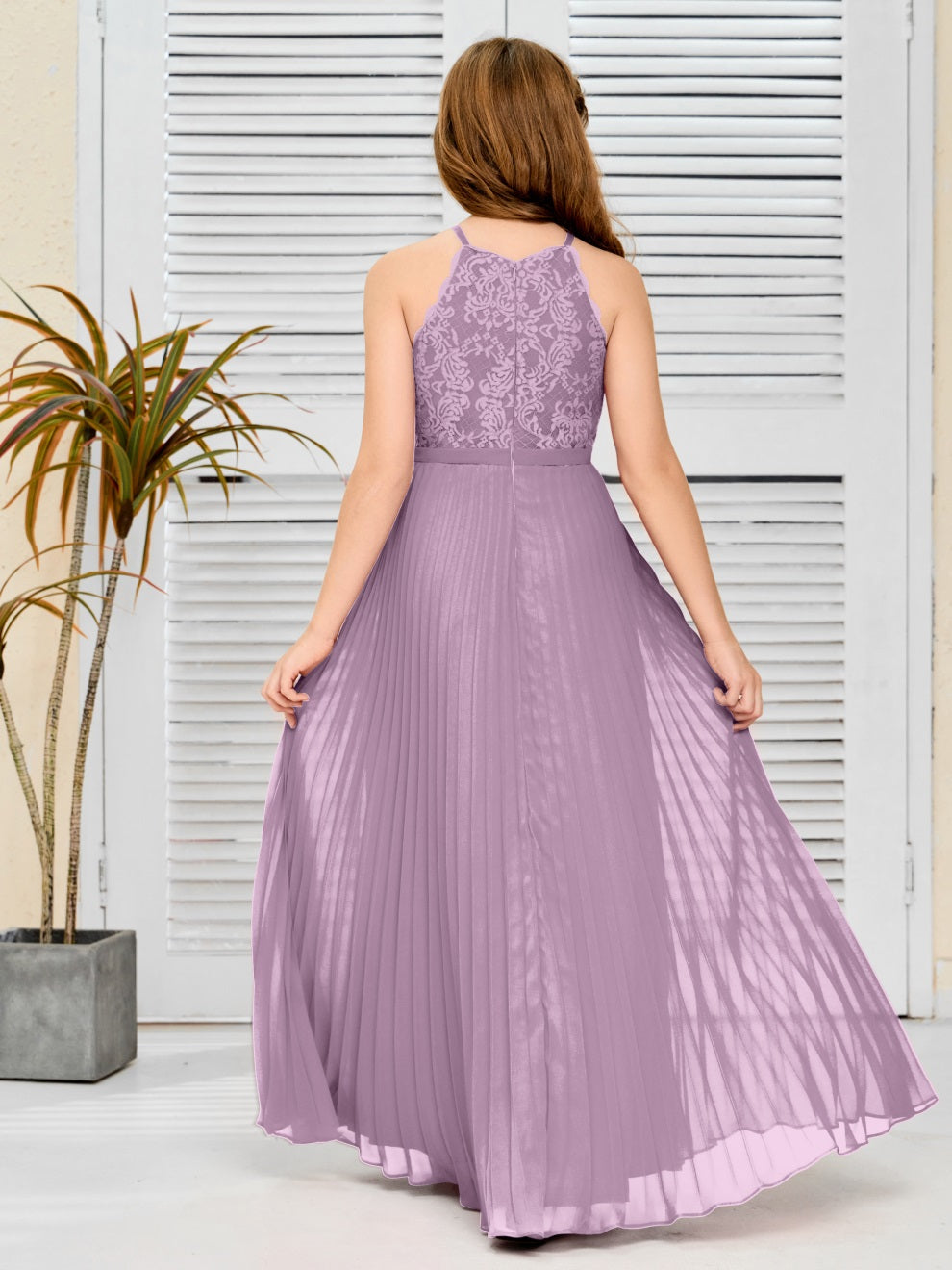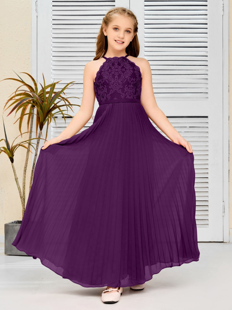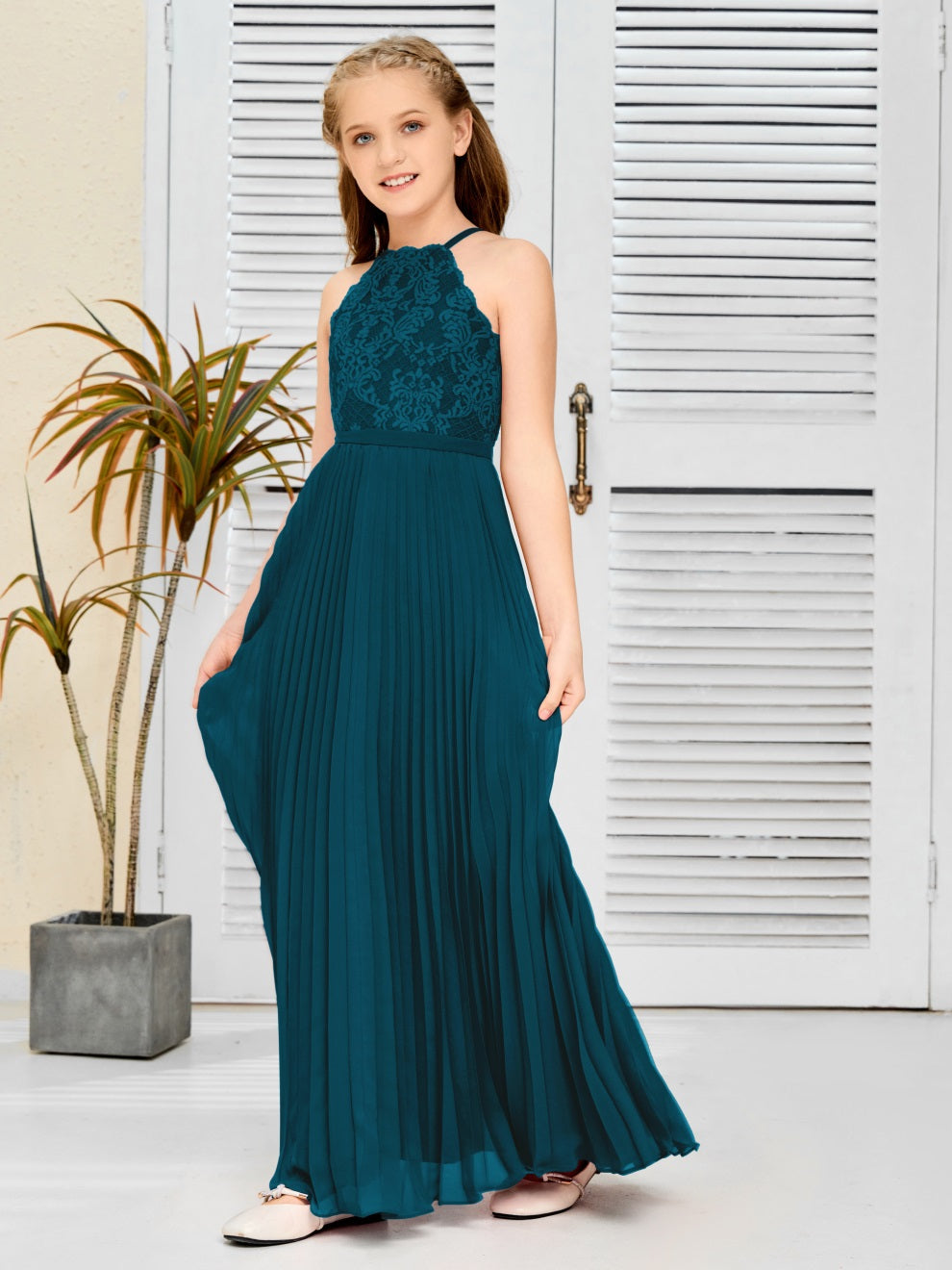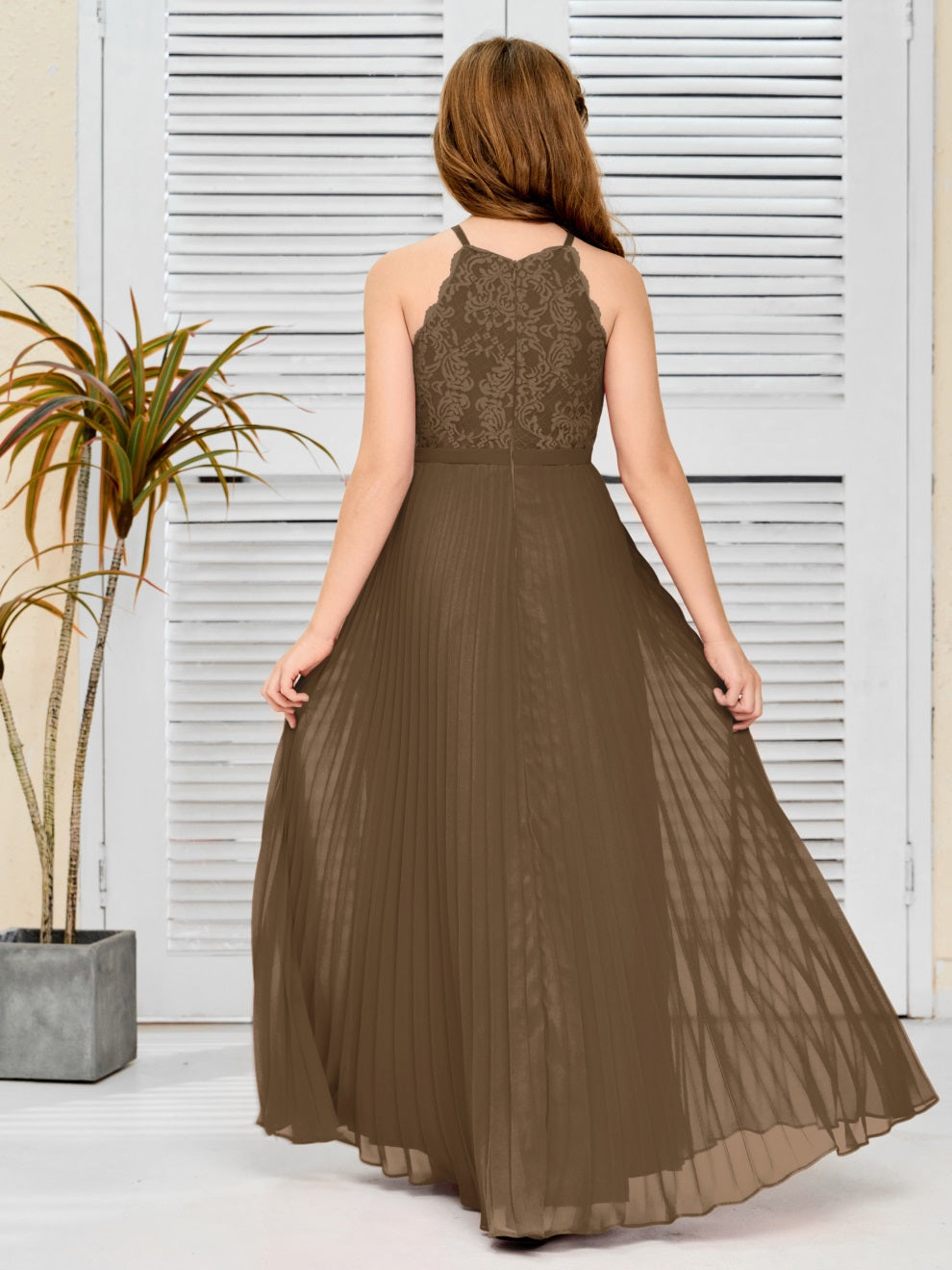 Halter A Linie Chiffon Spitze Junior Brautjungfer Kleid