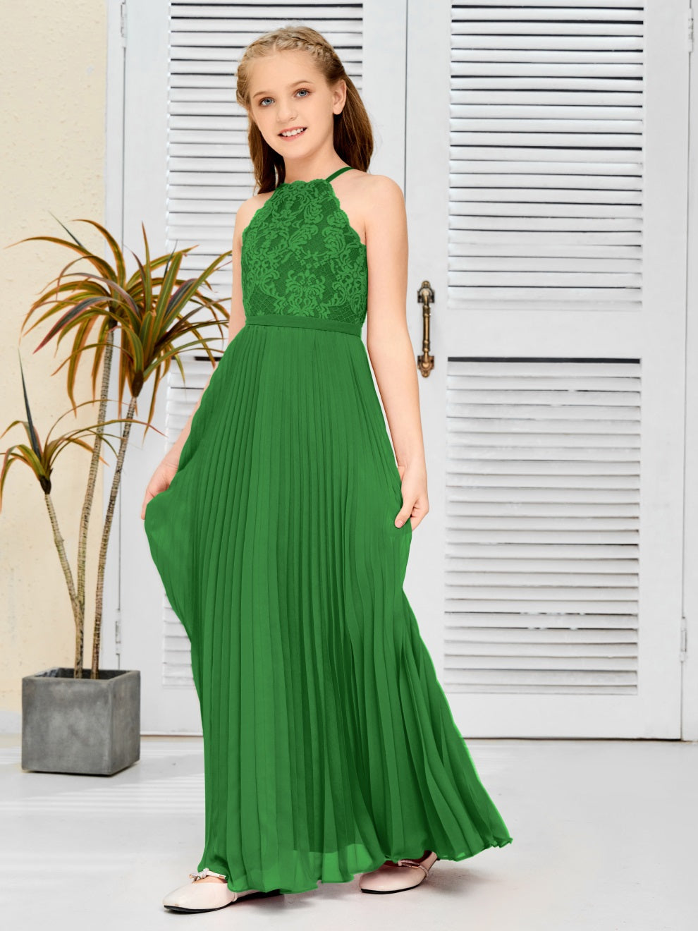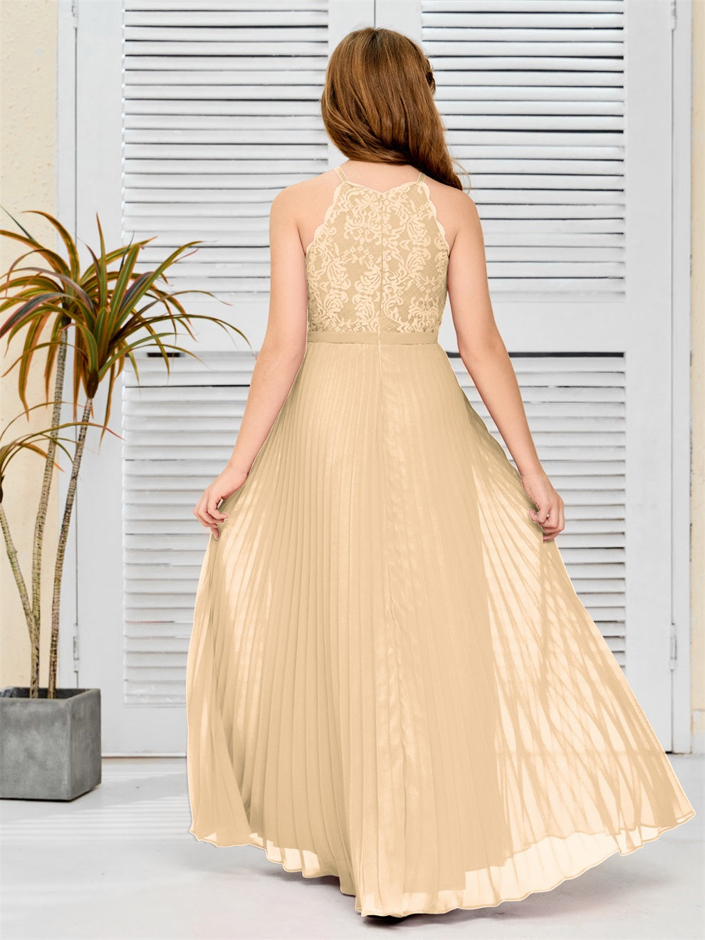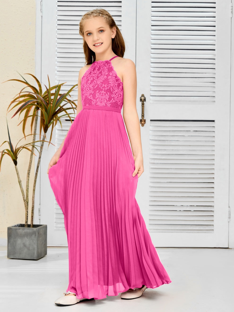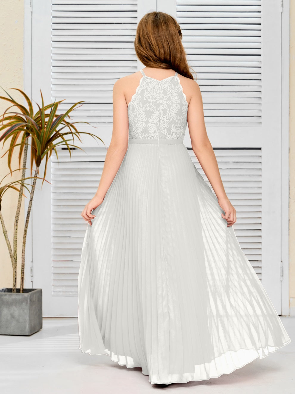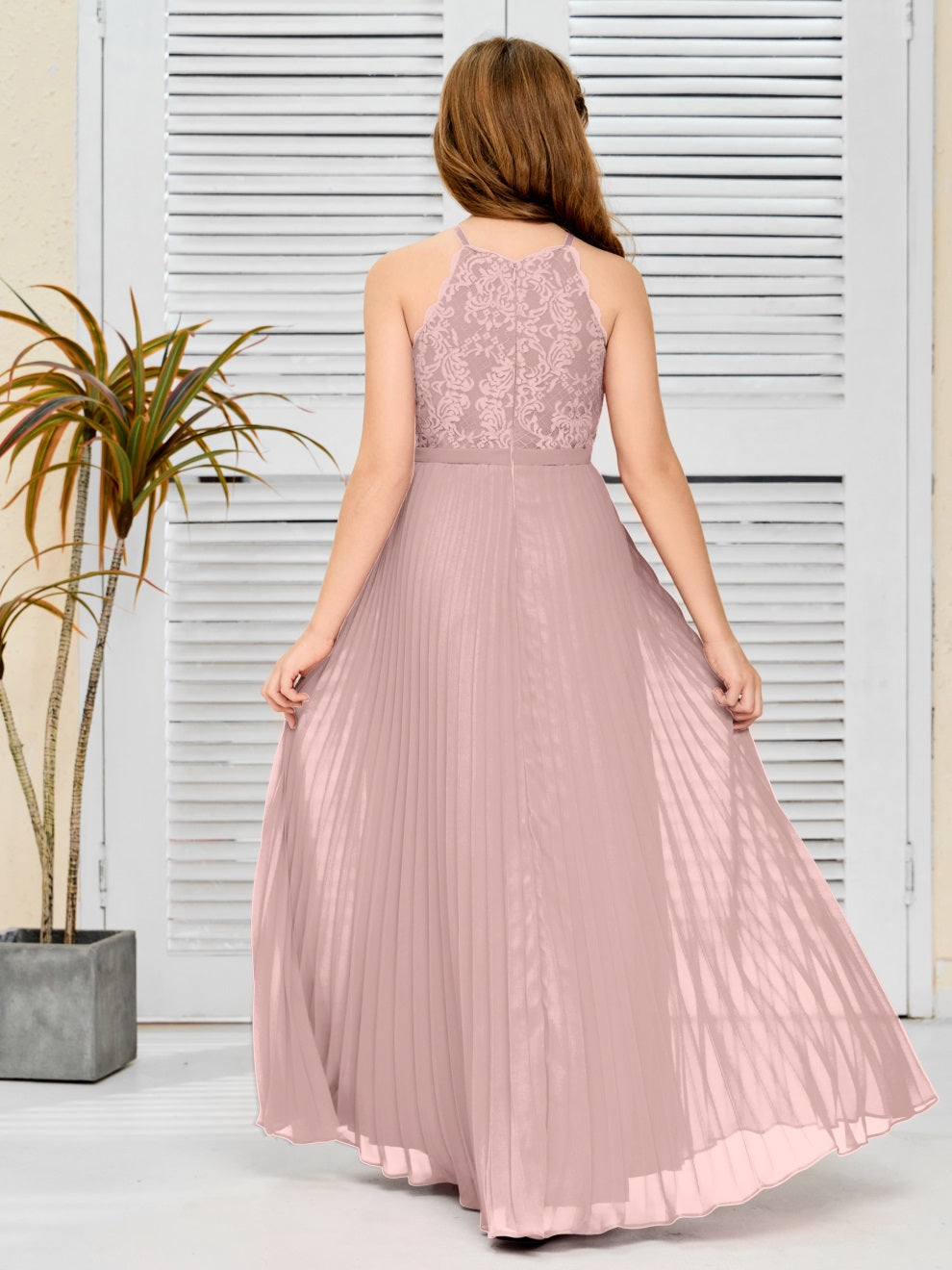 Halter A Linie Chiffon Spitze Junior Brautjungfer Kleid