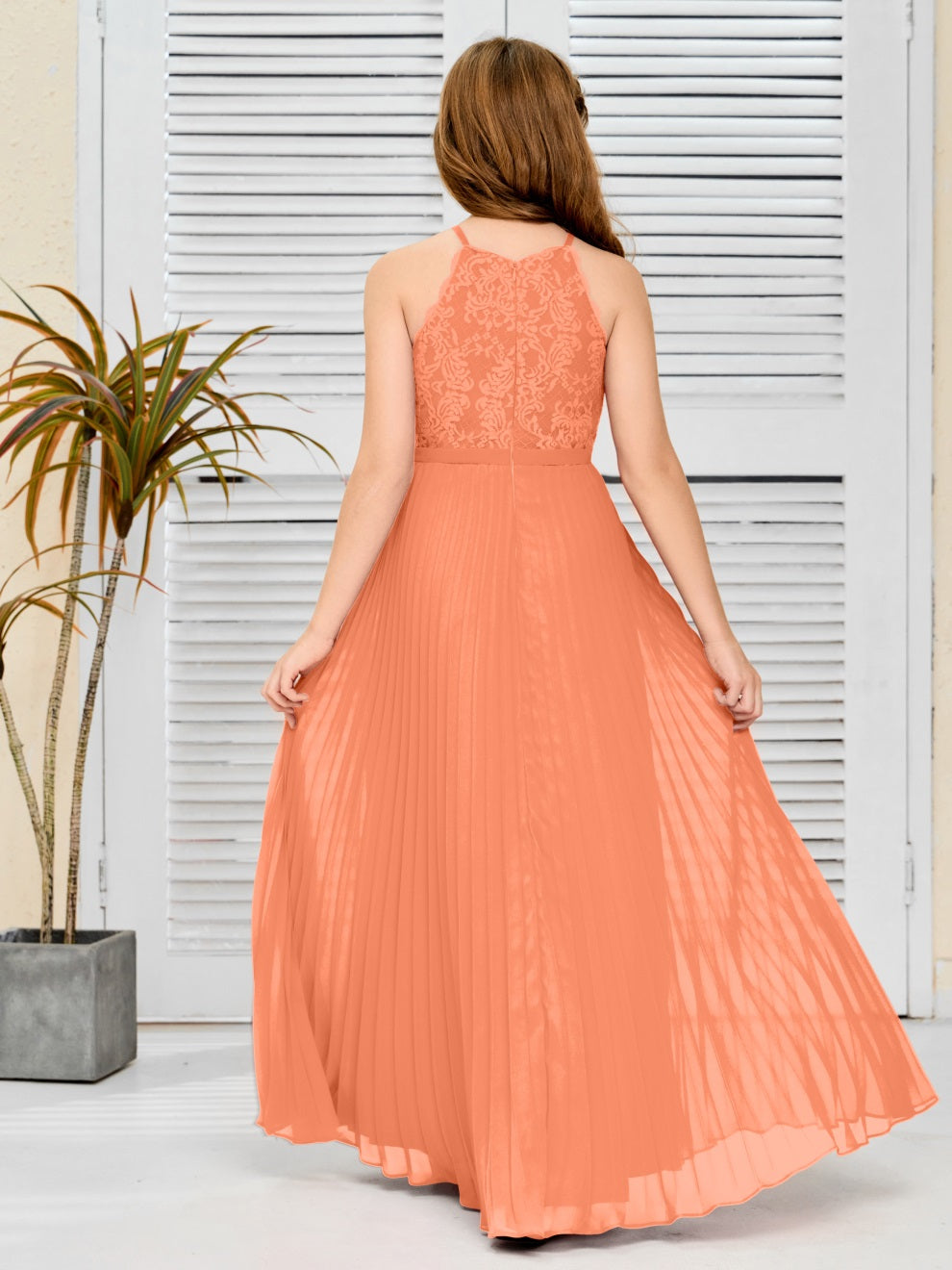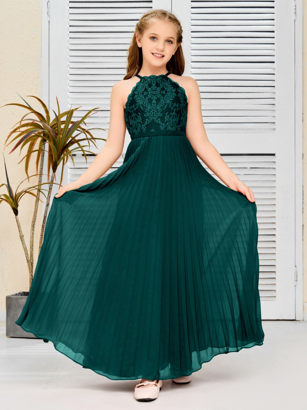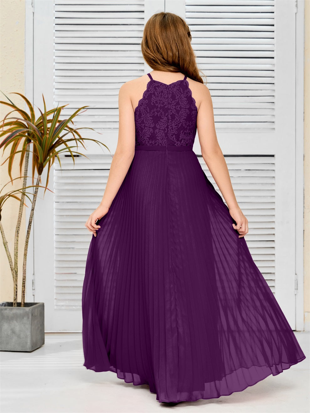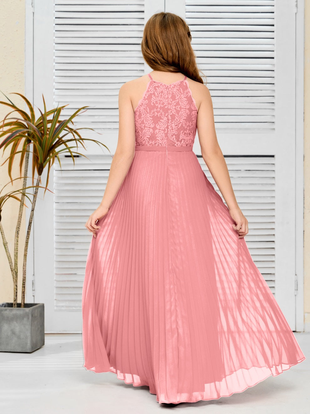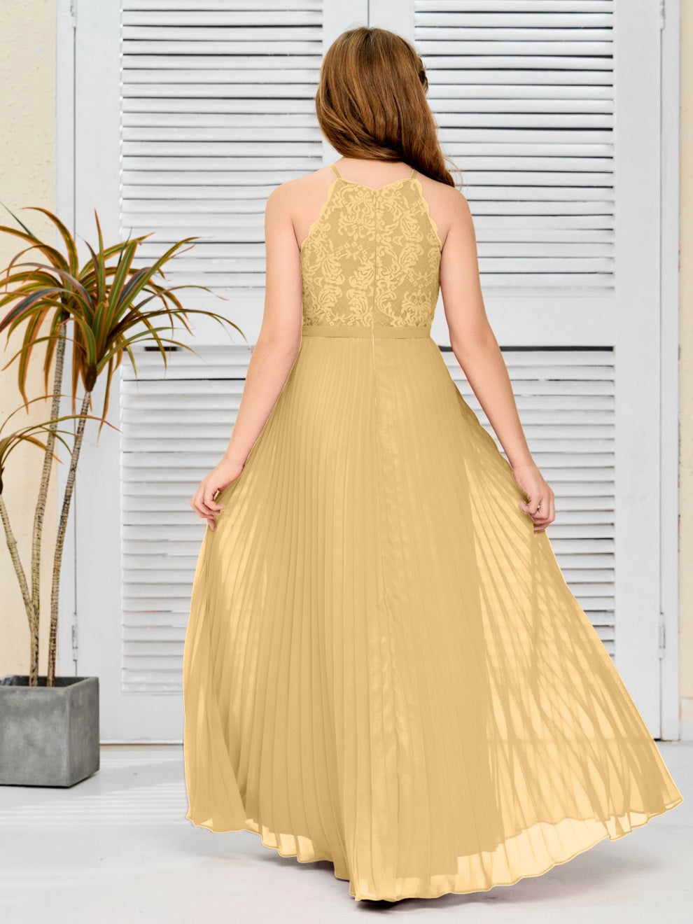 Halter A Linie Chiffon Spitze Junior Brautjungfer Kleid