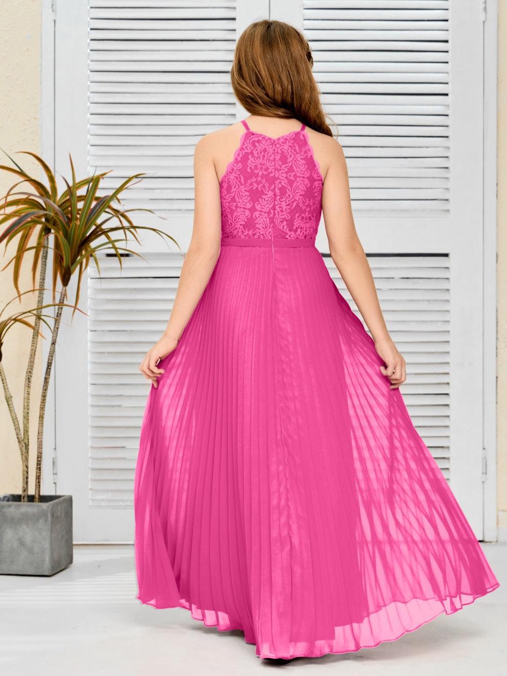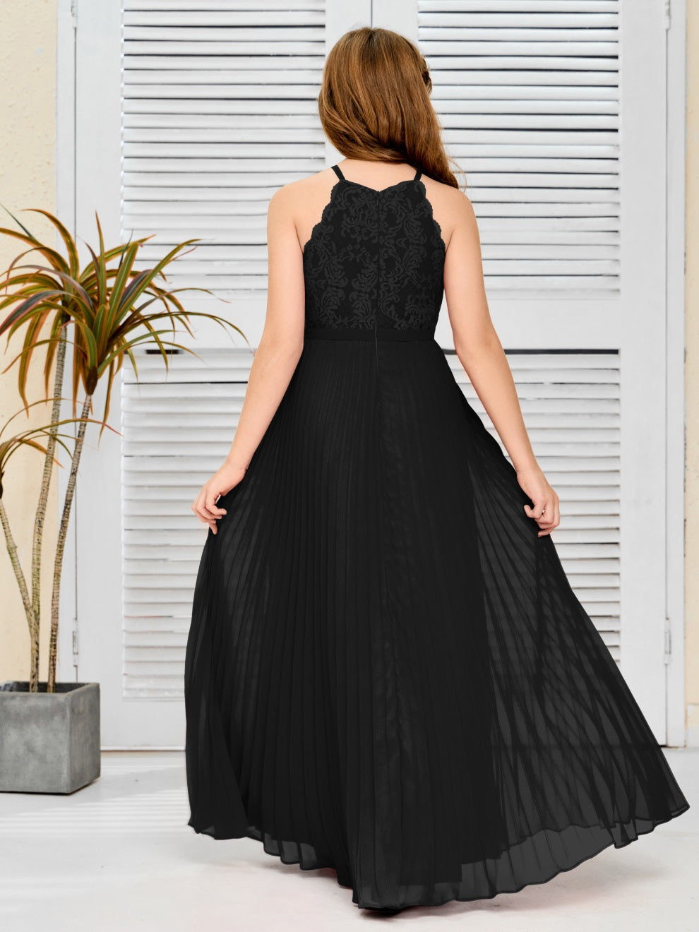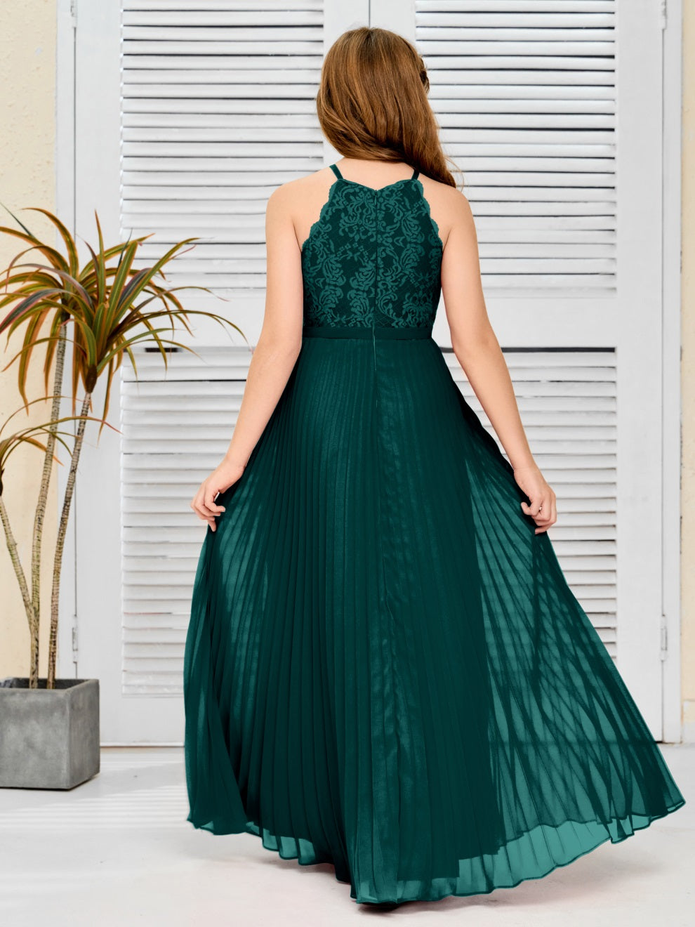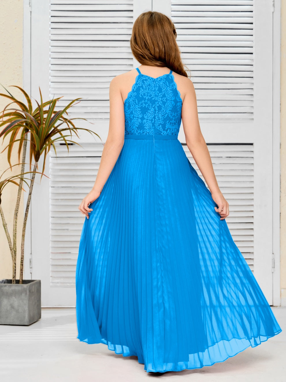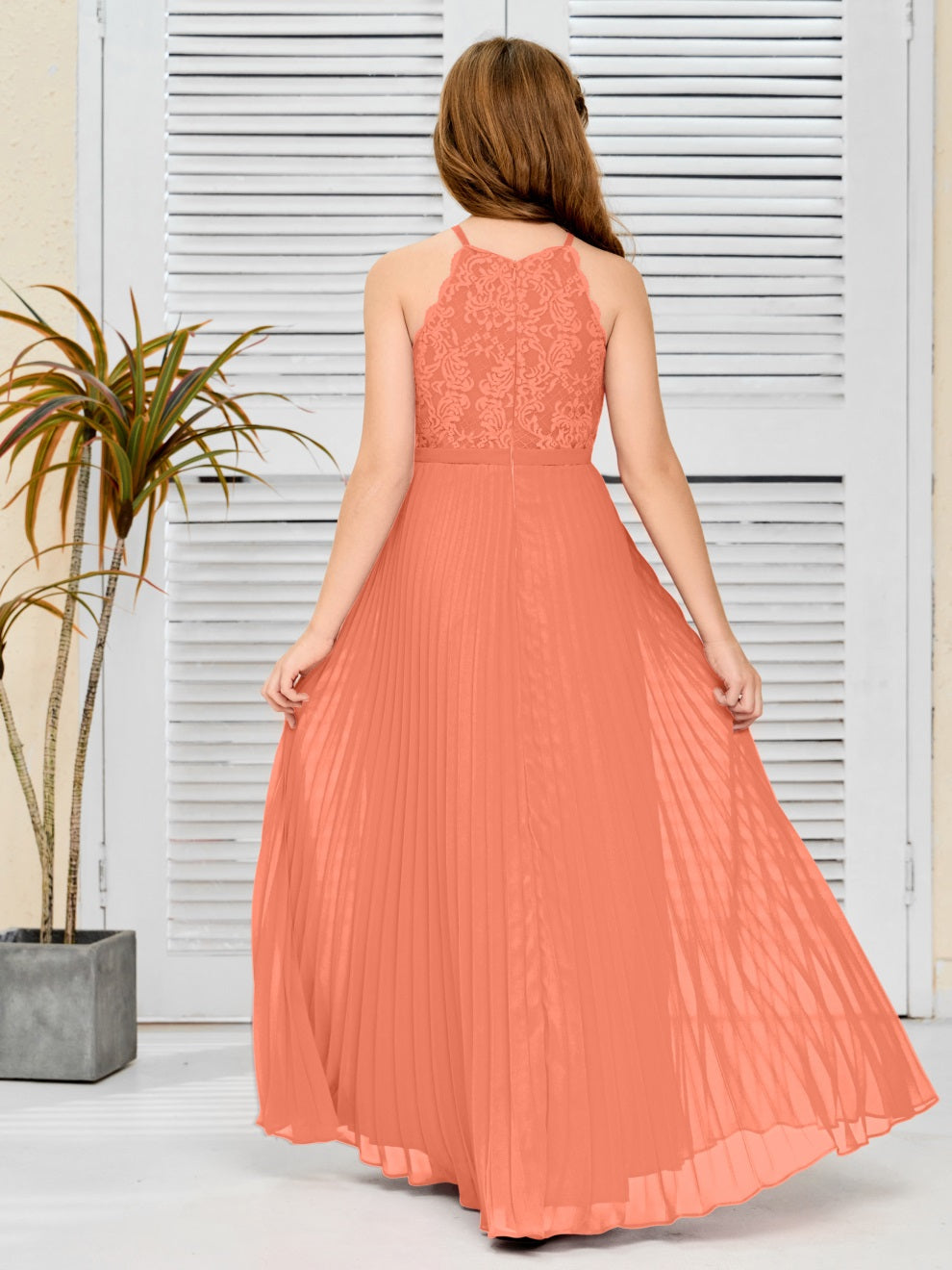 Halter A Linie Chiffon Spitze Junior Brautjungfer Kleid