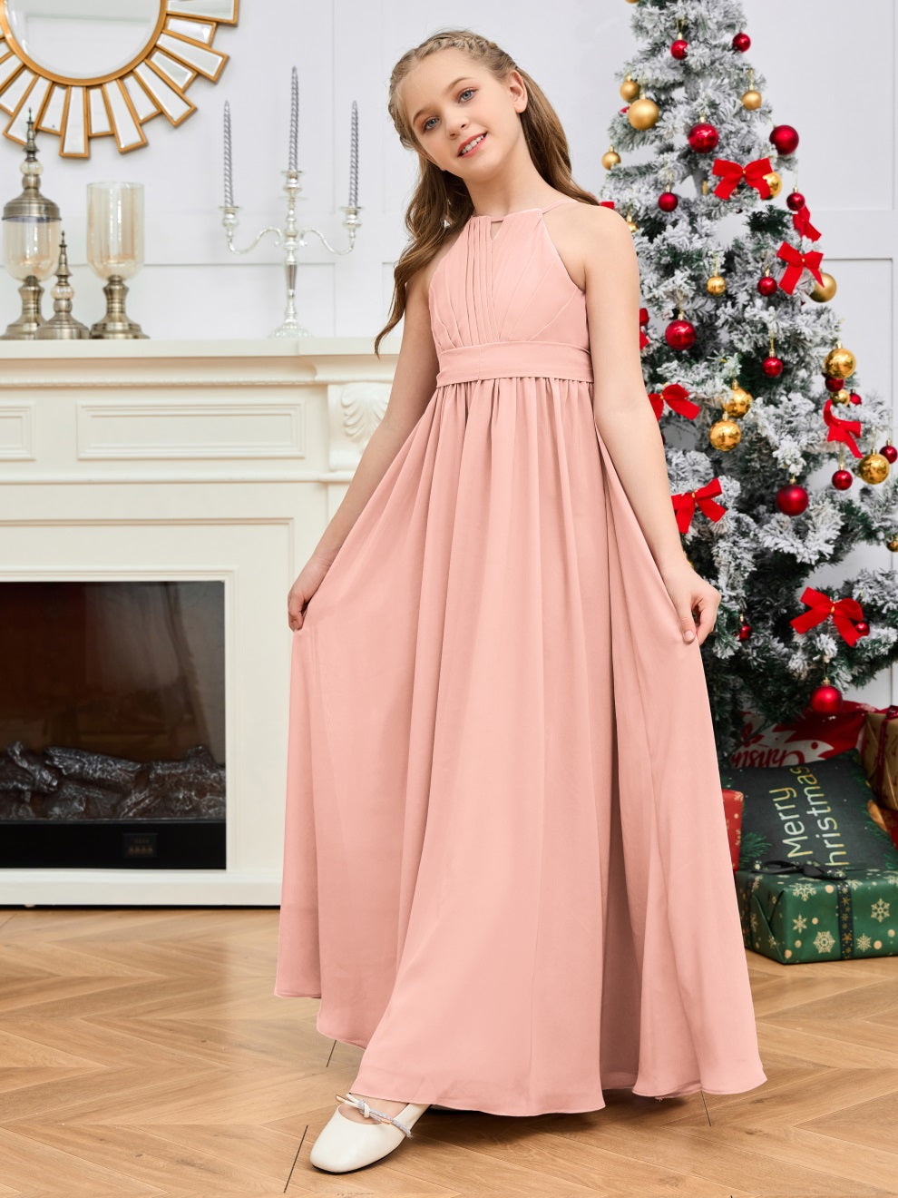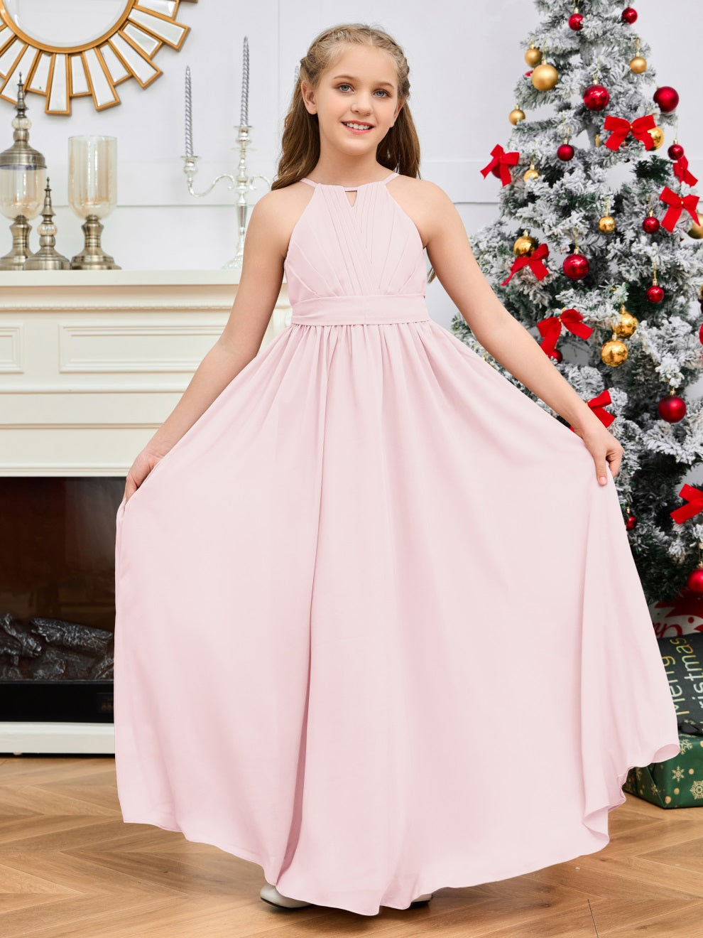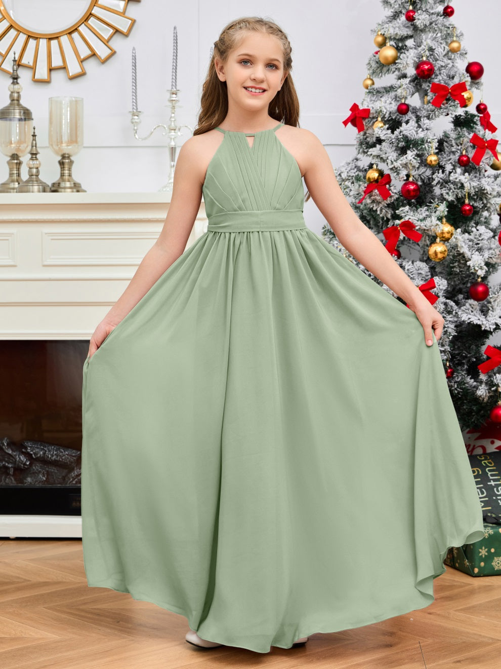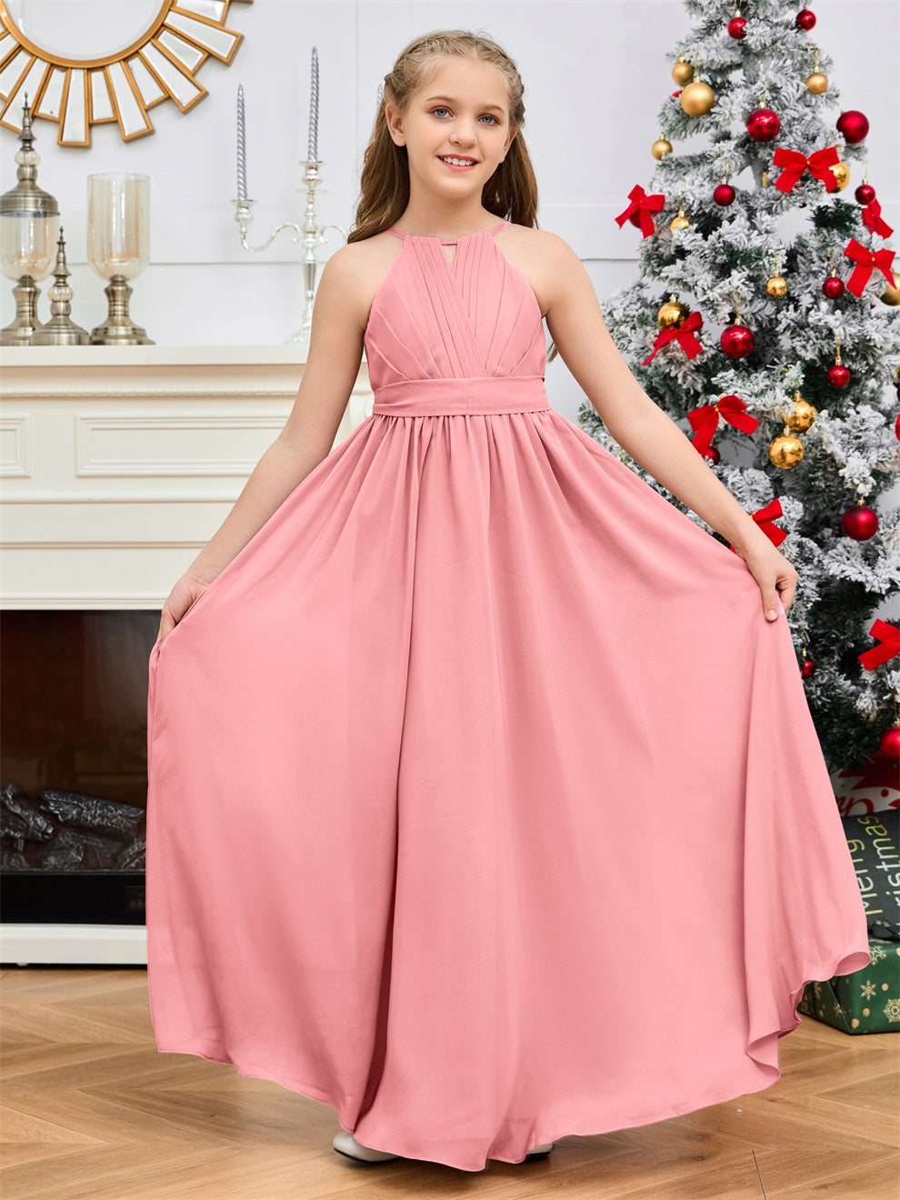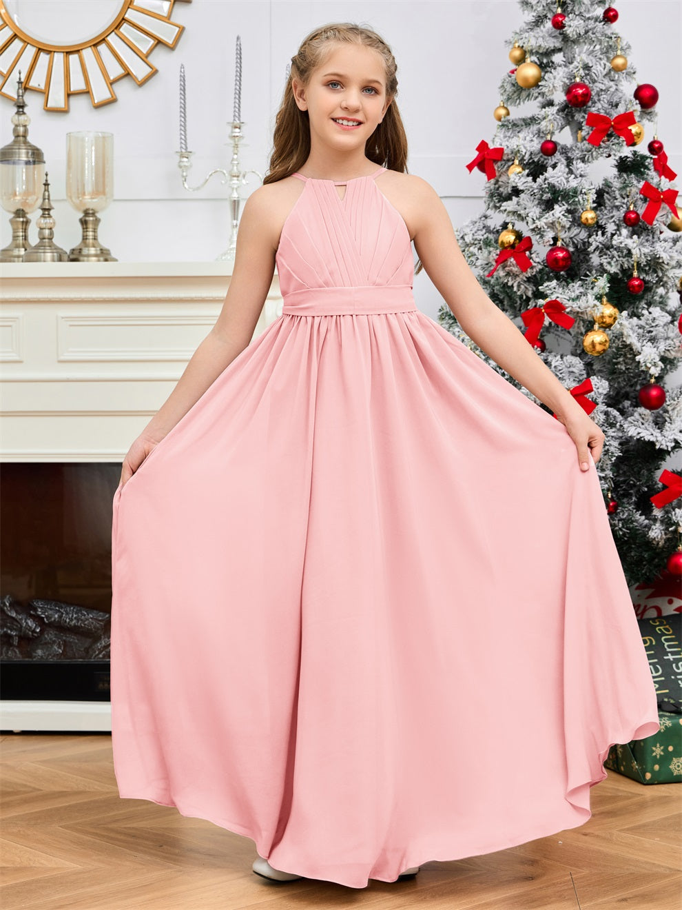 Halter bodenlanges Chiffon Junior Brautjungfernkleid