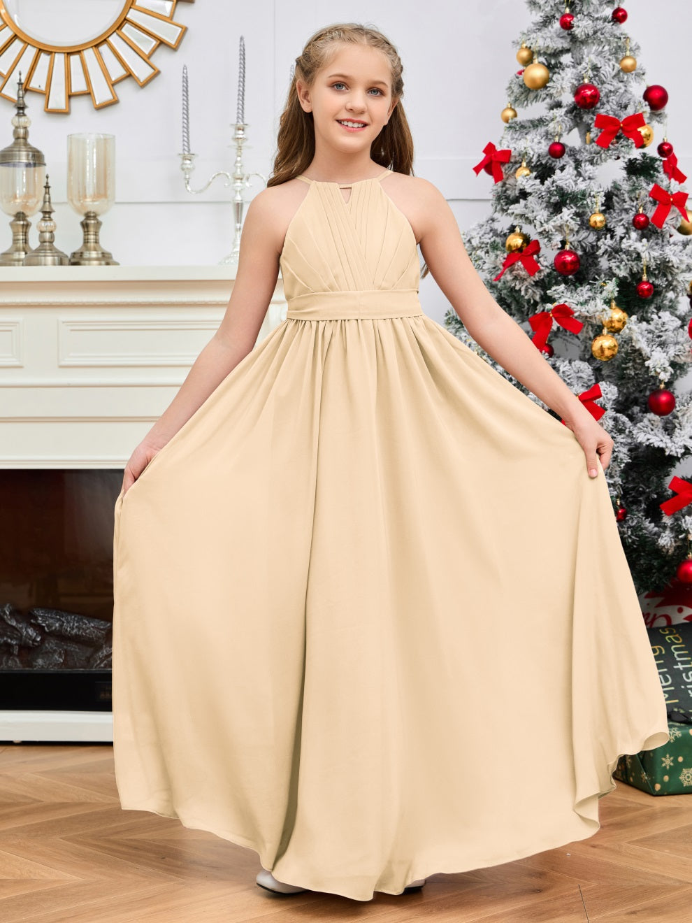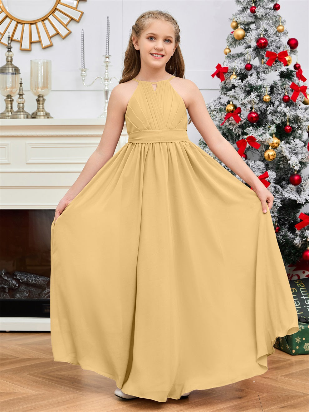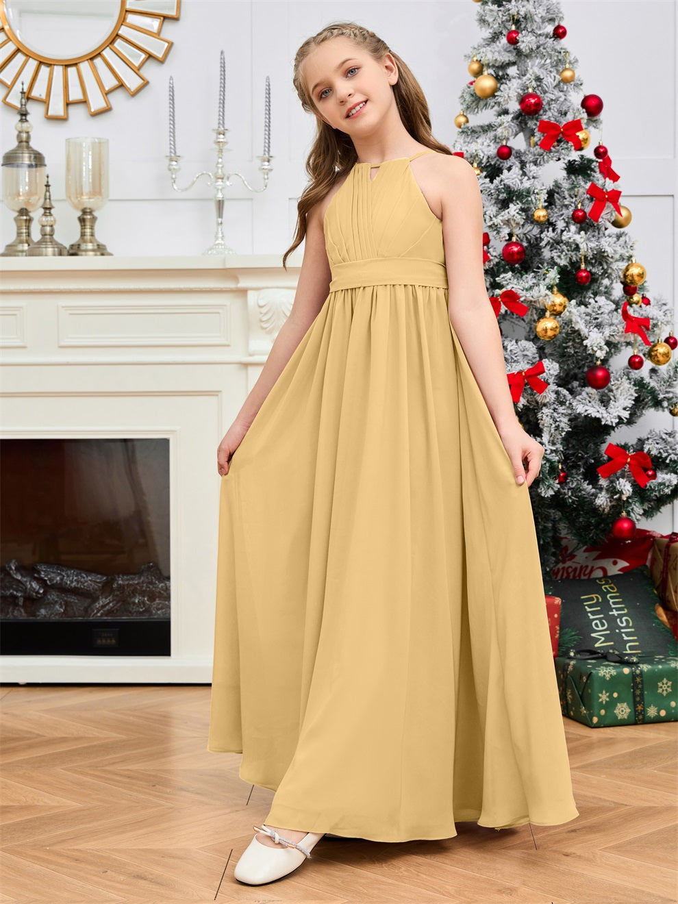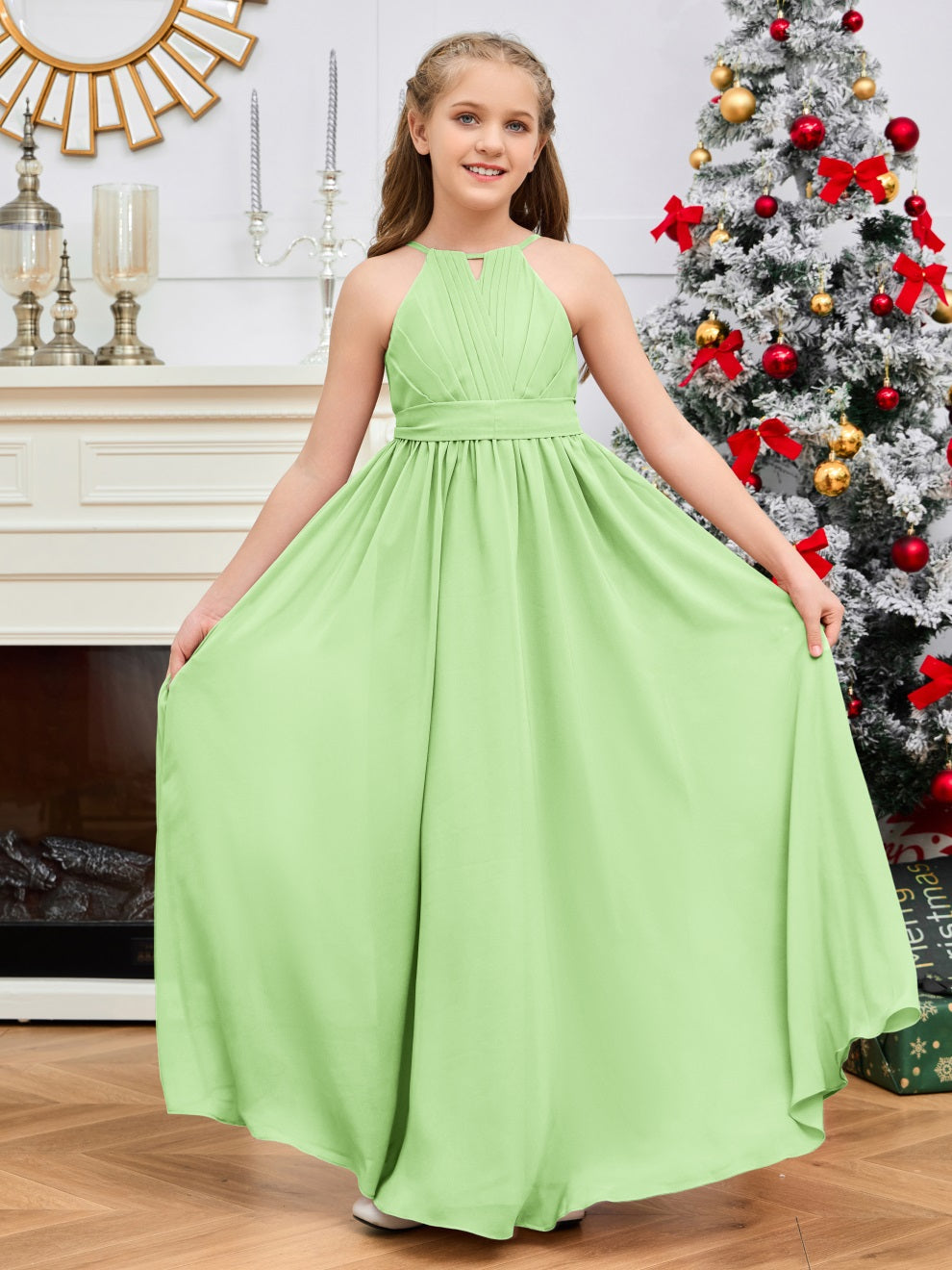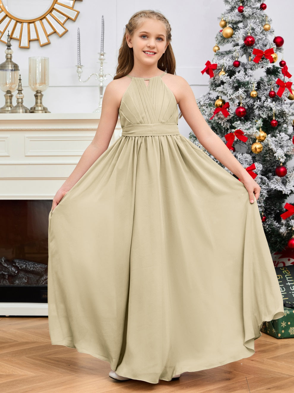 Halter bodenlanges Chiffon Junior Brautjungfernkleid
