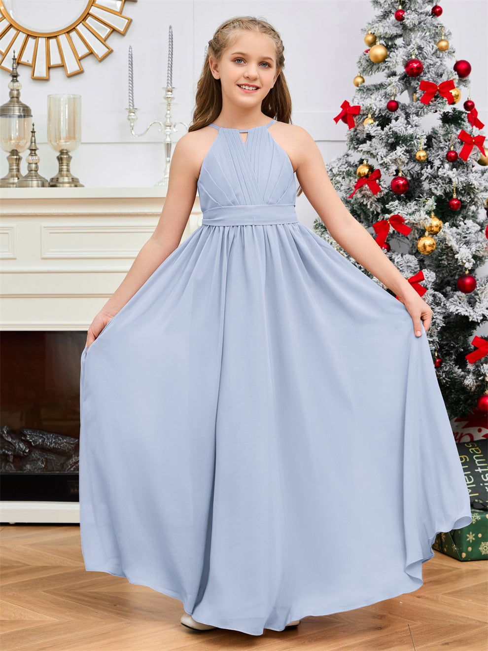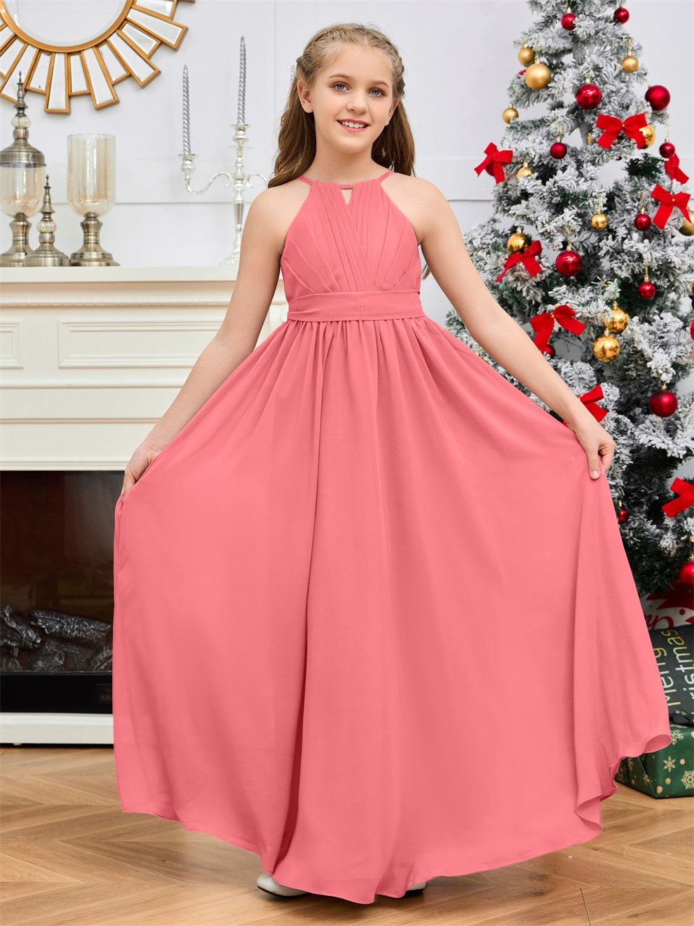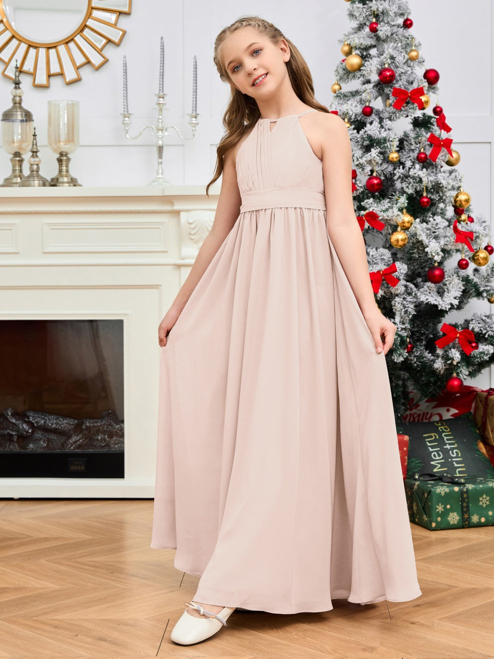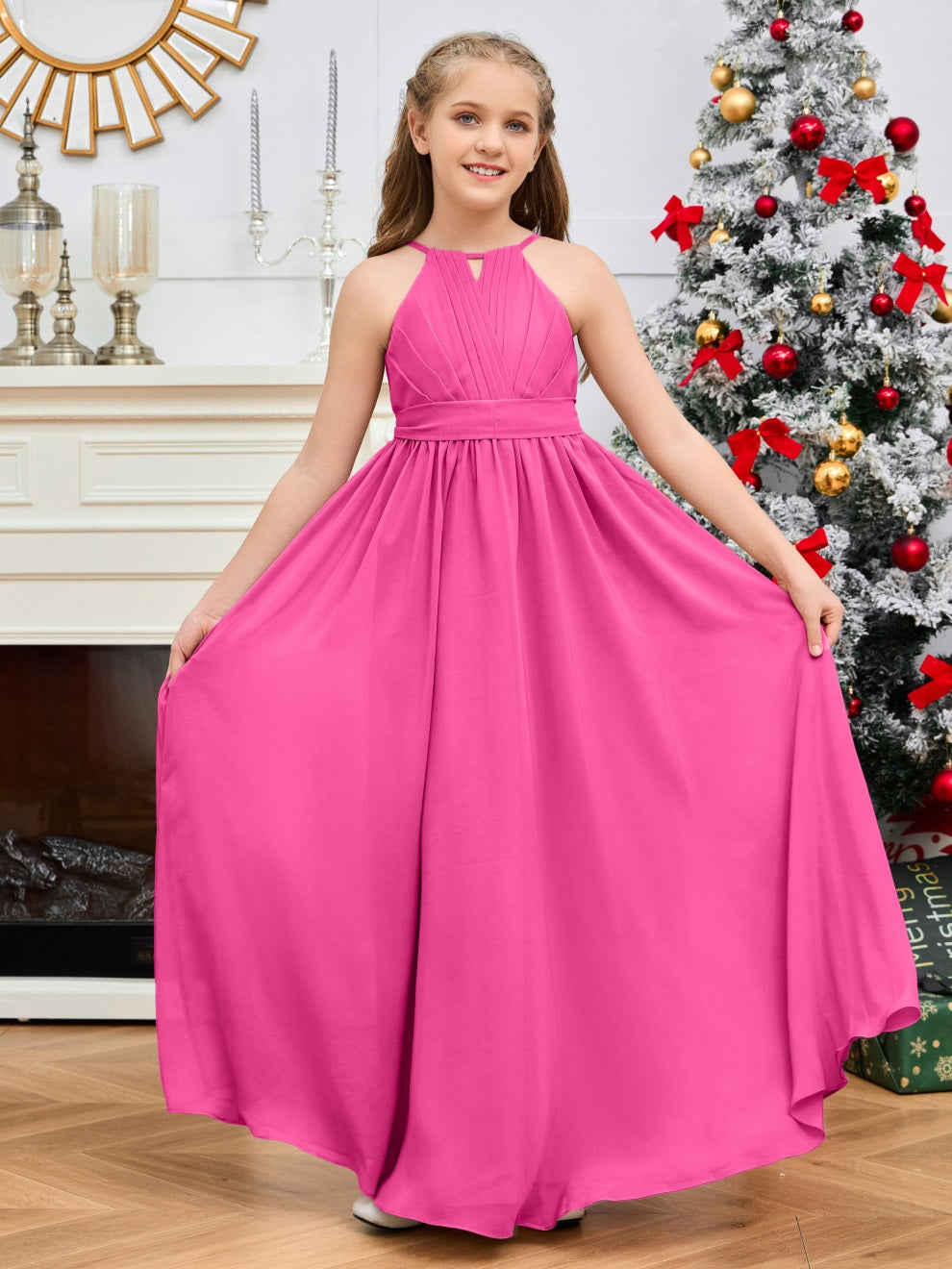 Halter bodenlanges Chiffon Junior Brautjungfernkleid