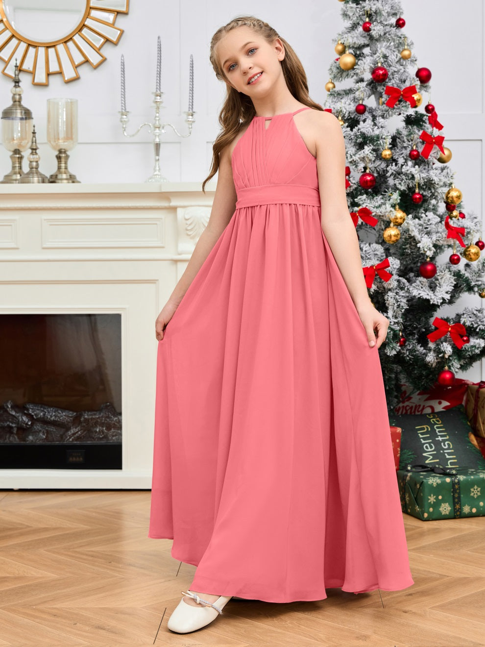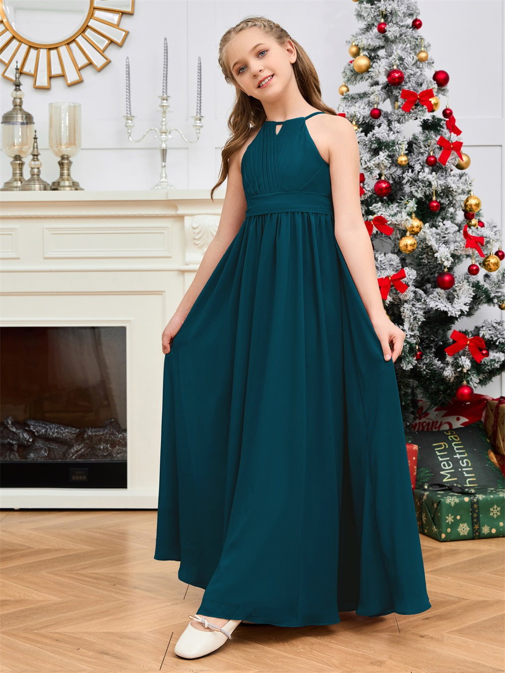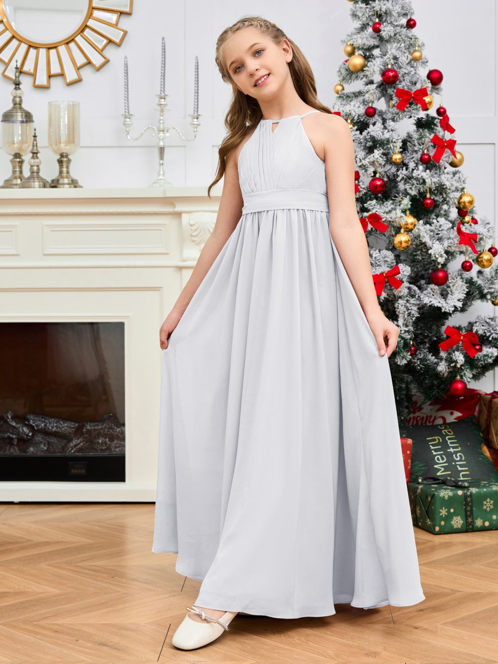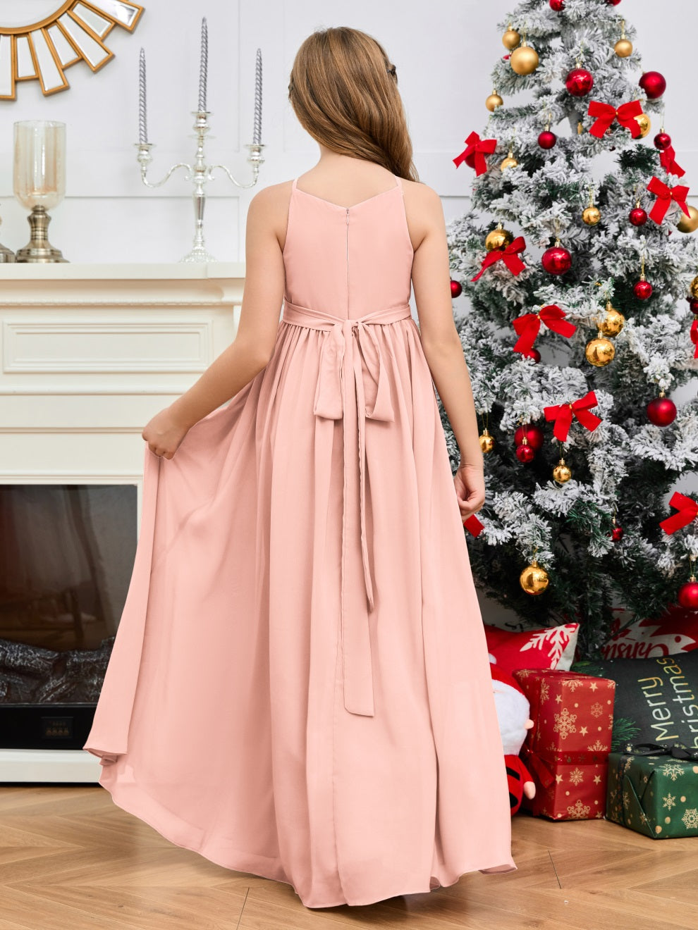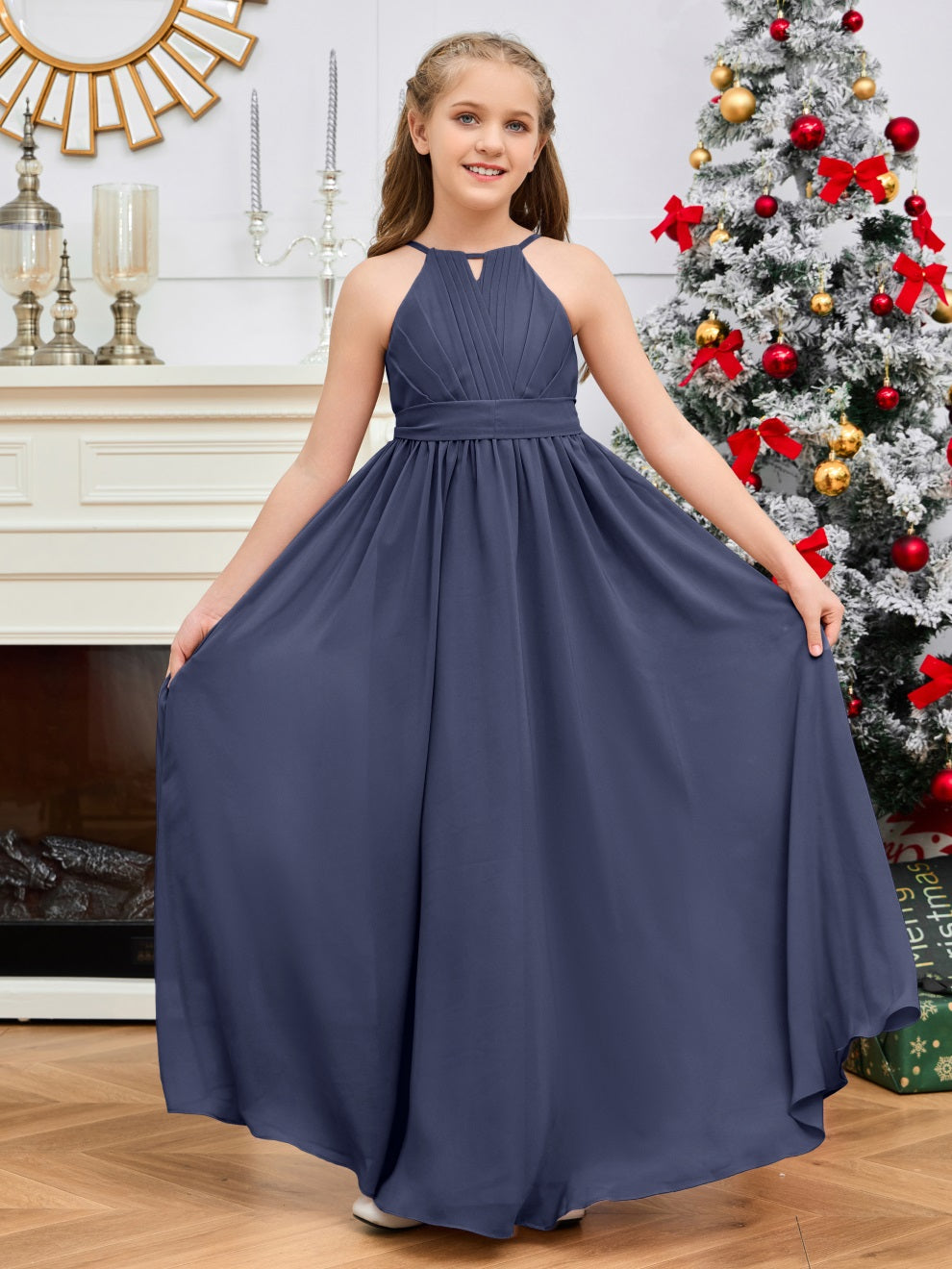Halter bodenlanges Chiffon Junior Brautjungfernkleid