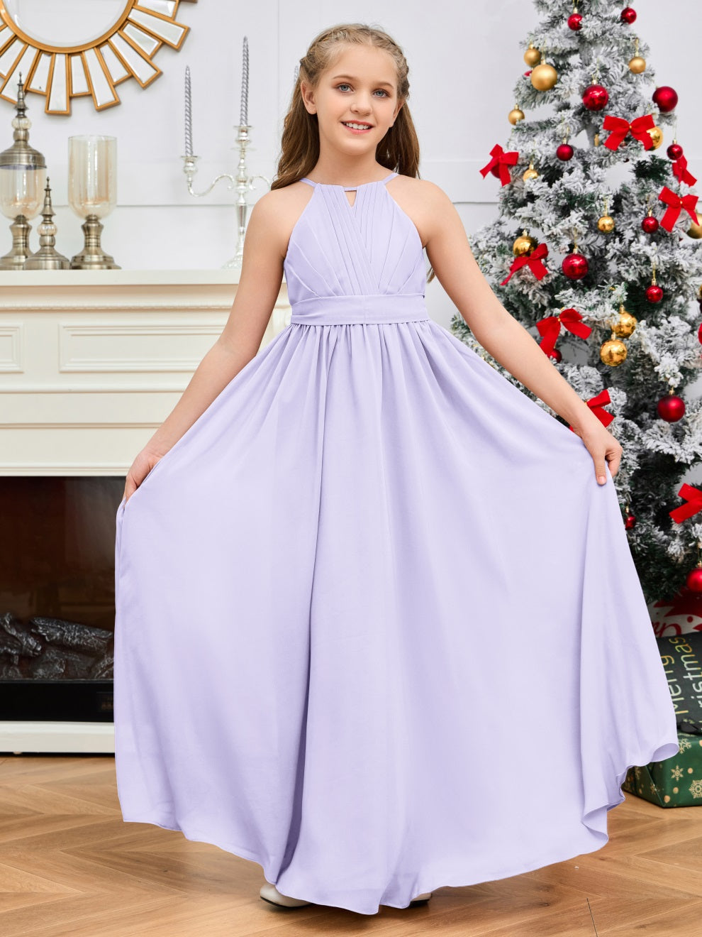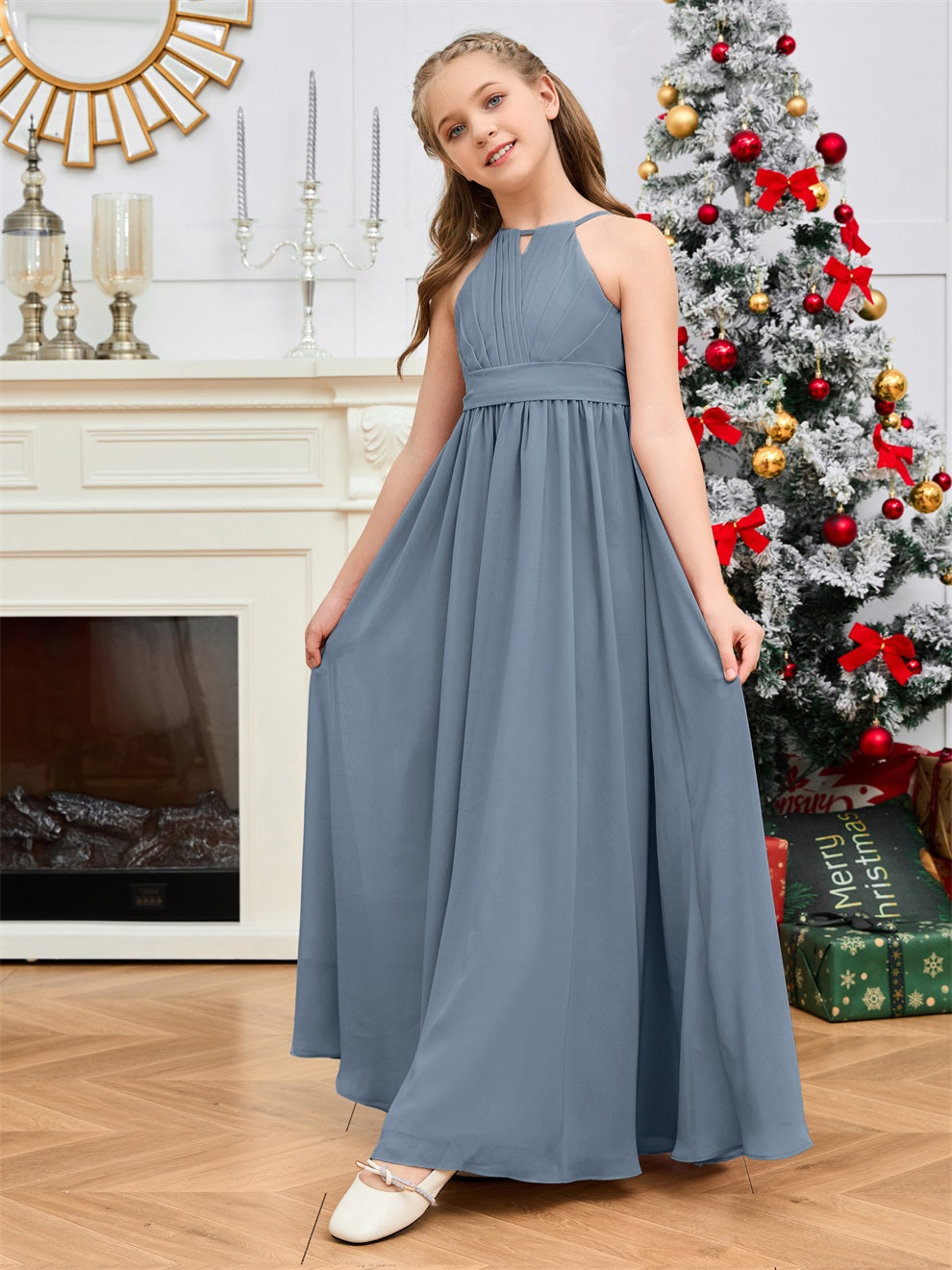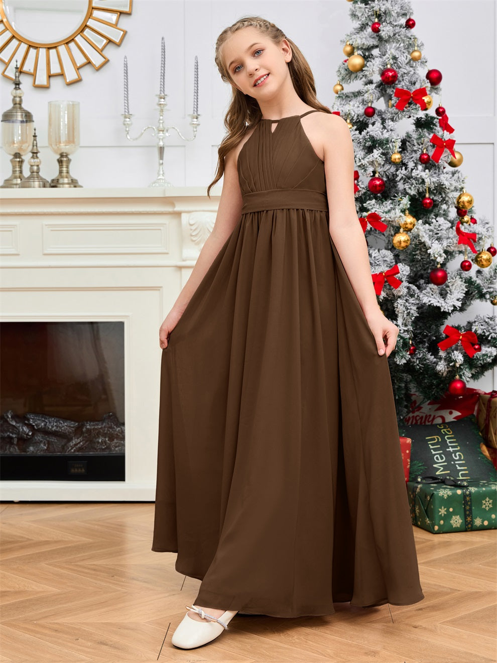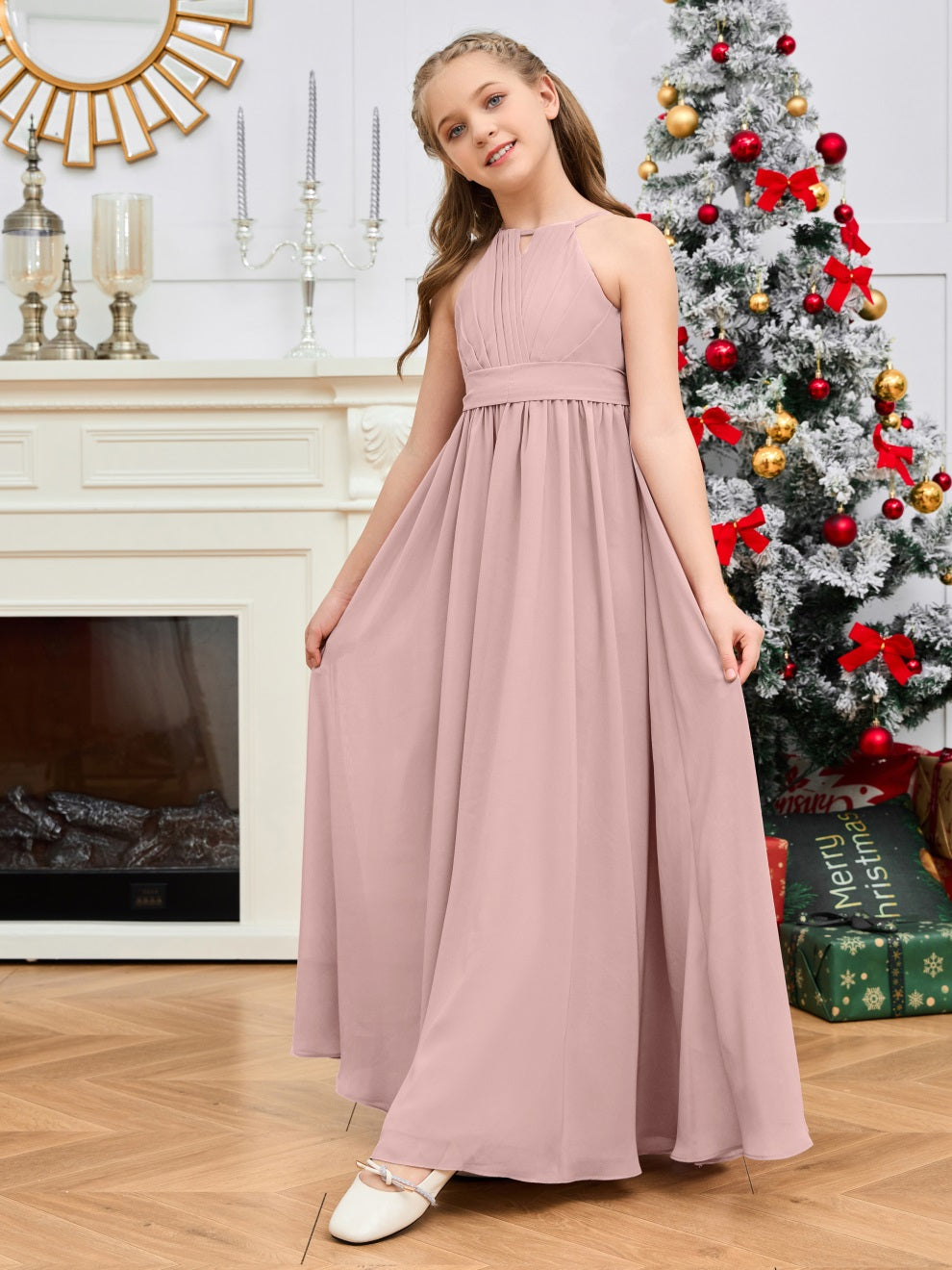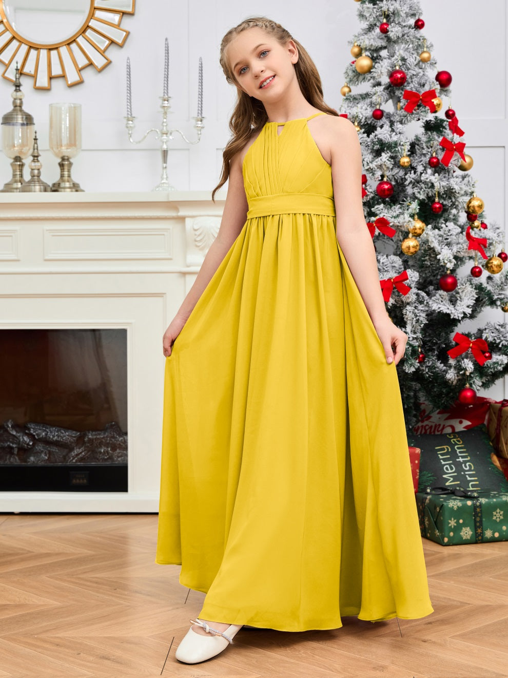 Halter bodenlanges Chiffon Junior Brautjungfernkleid