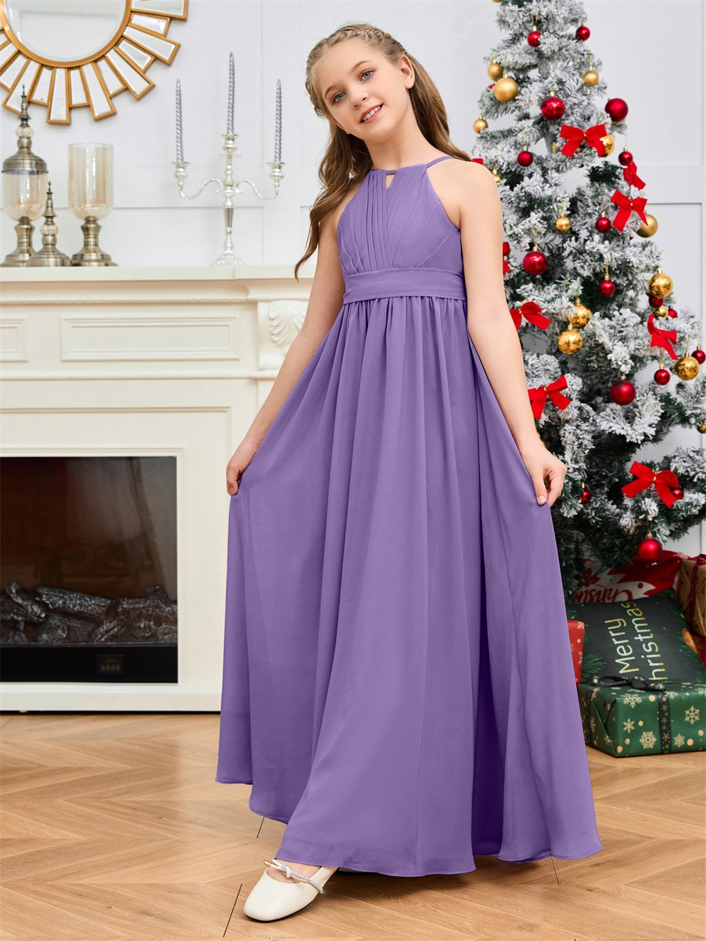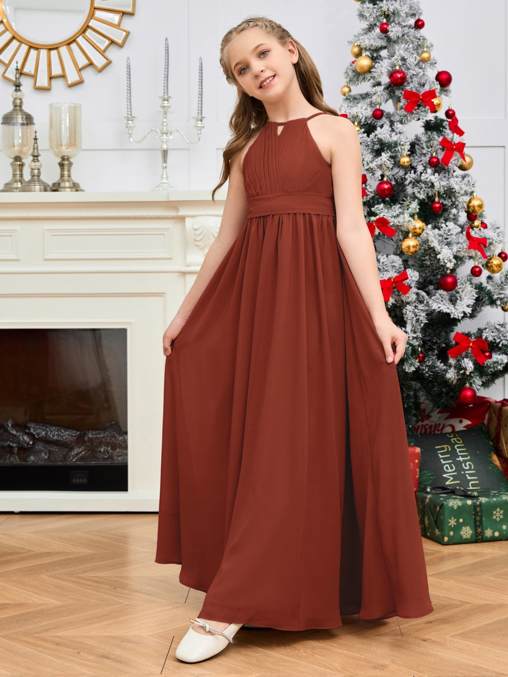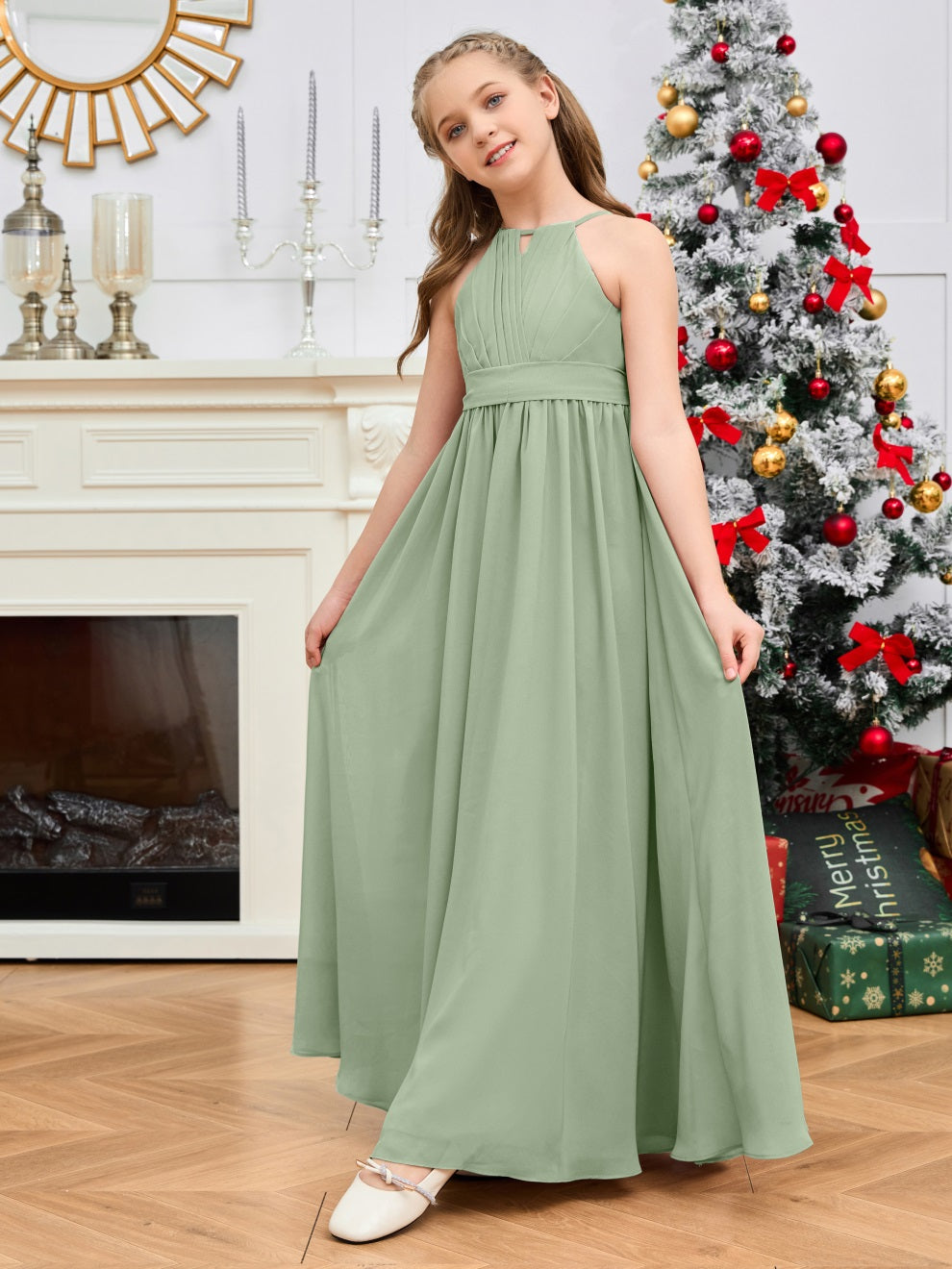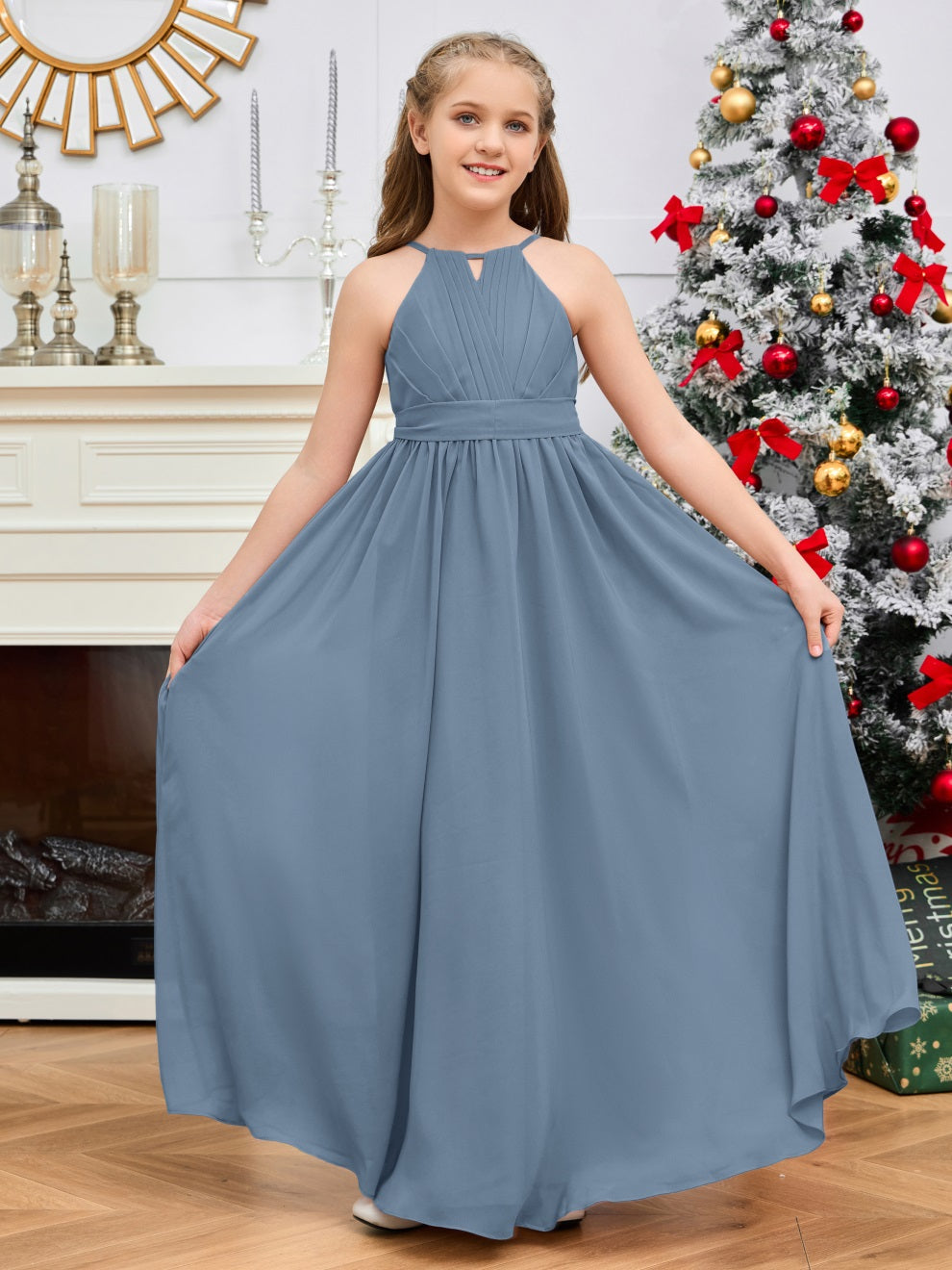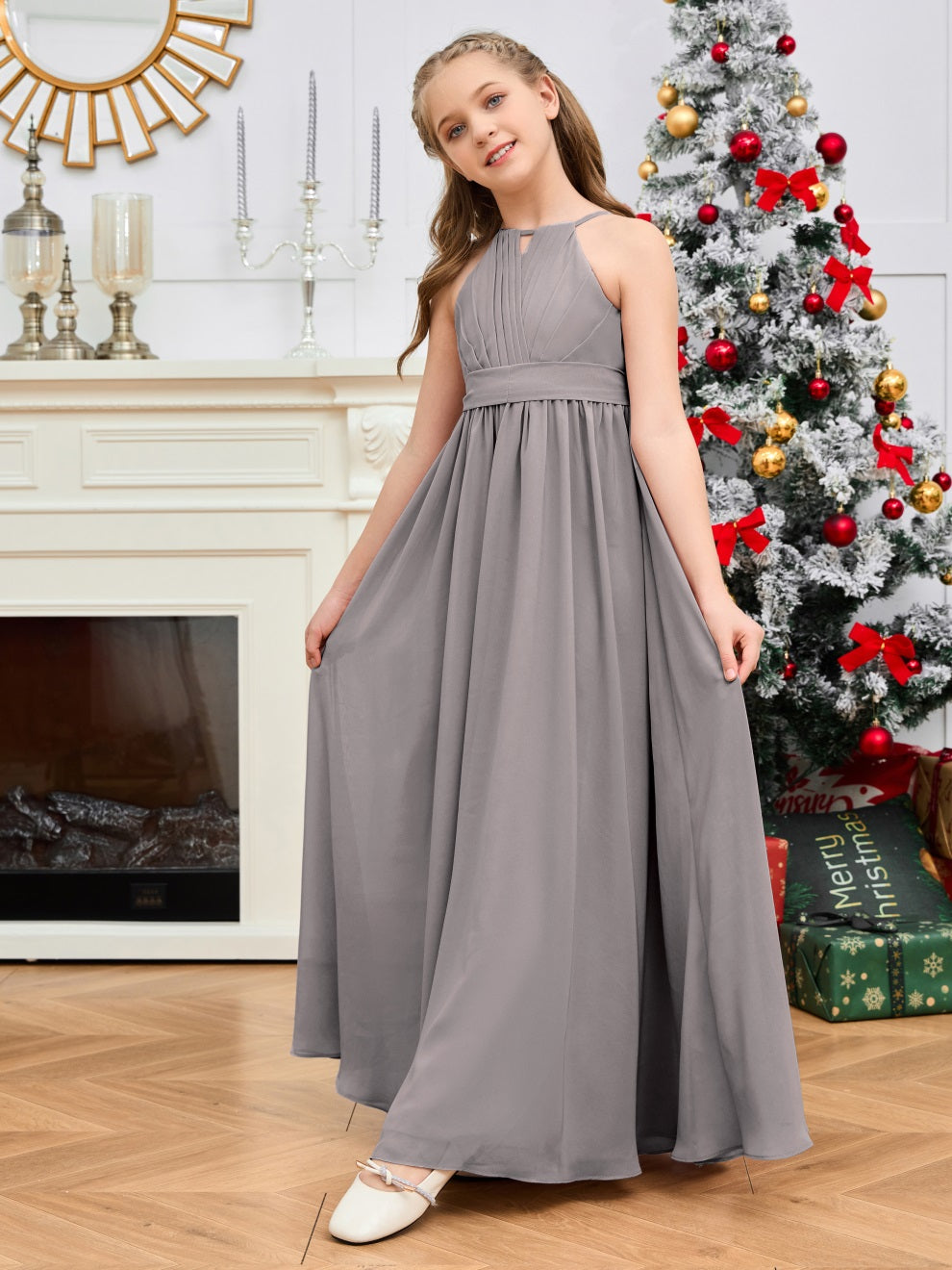 Halter bodenlanges Chiffon Junior Brautjungfernkleid