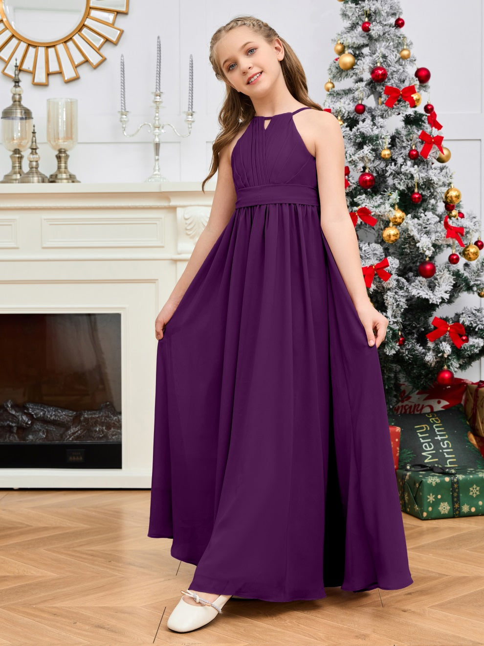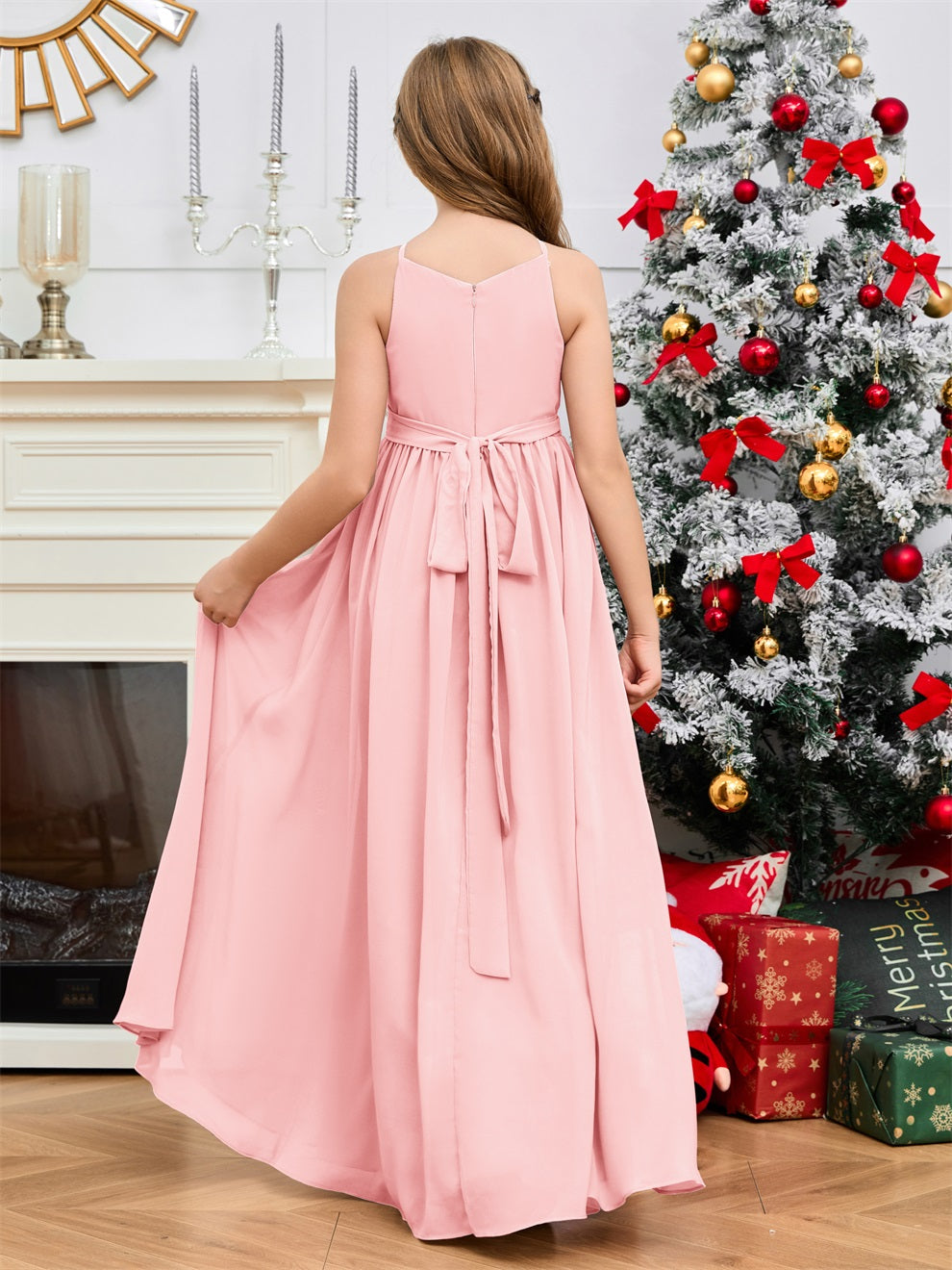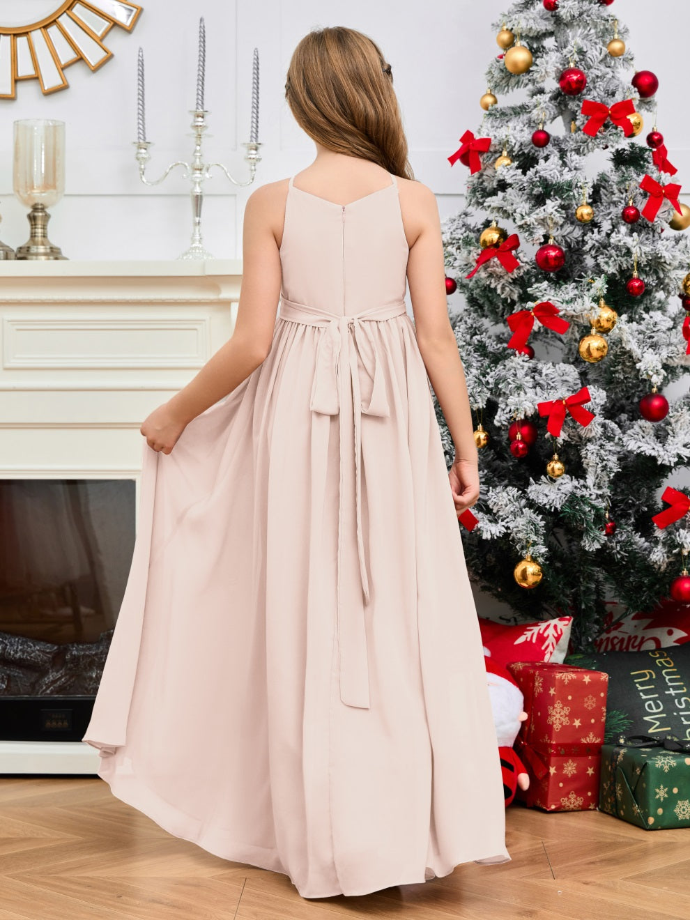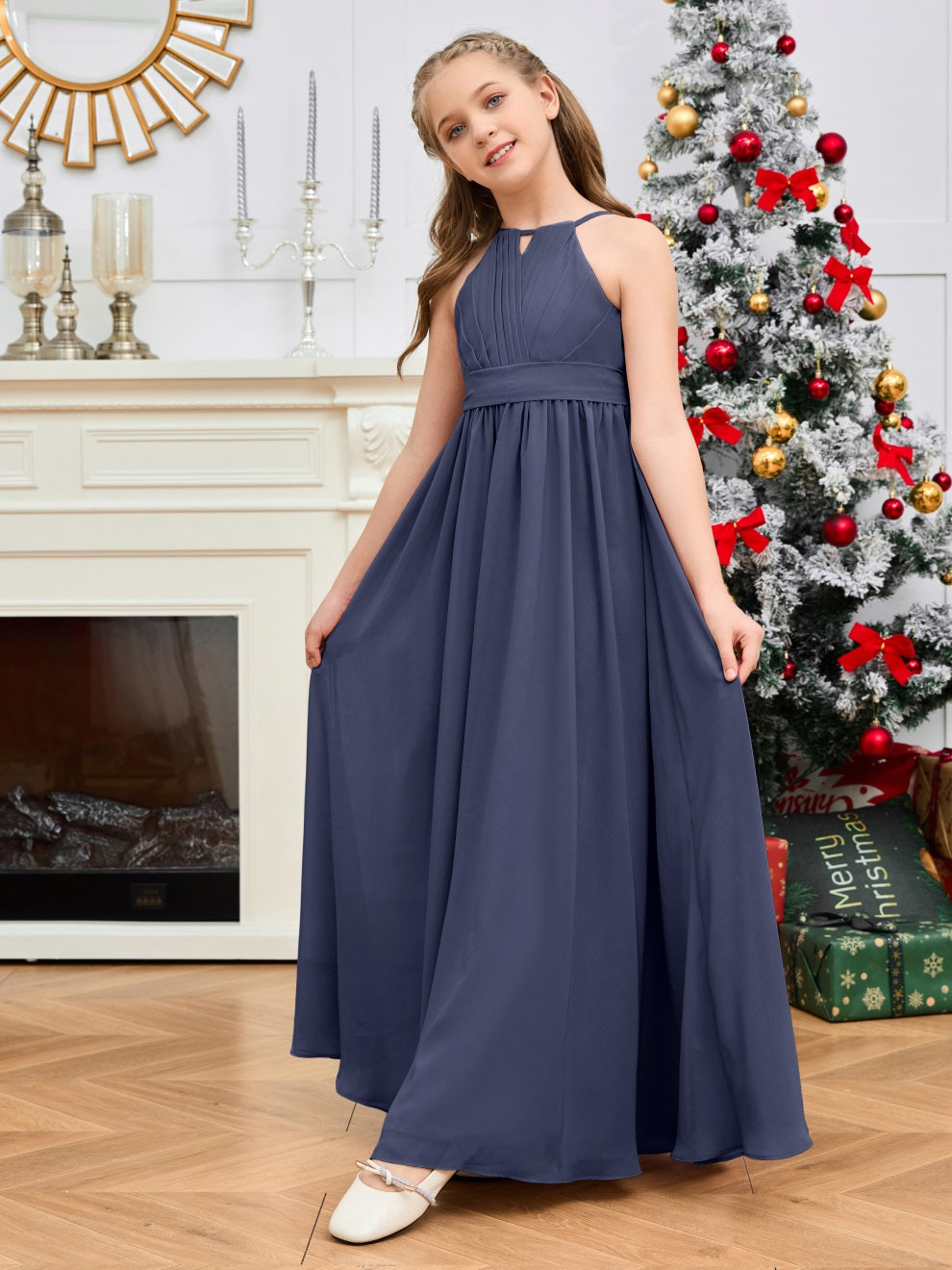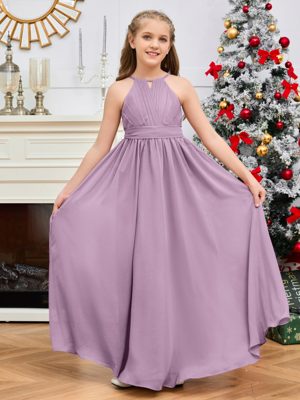 Halter bodenlanges Chiffon Junior Brautjungfernkleid