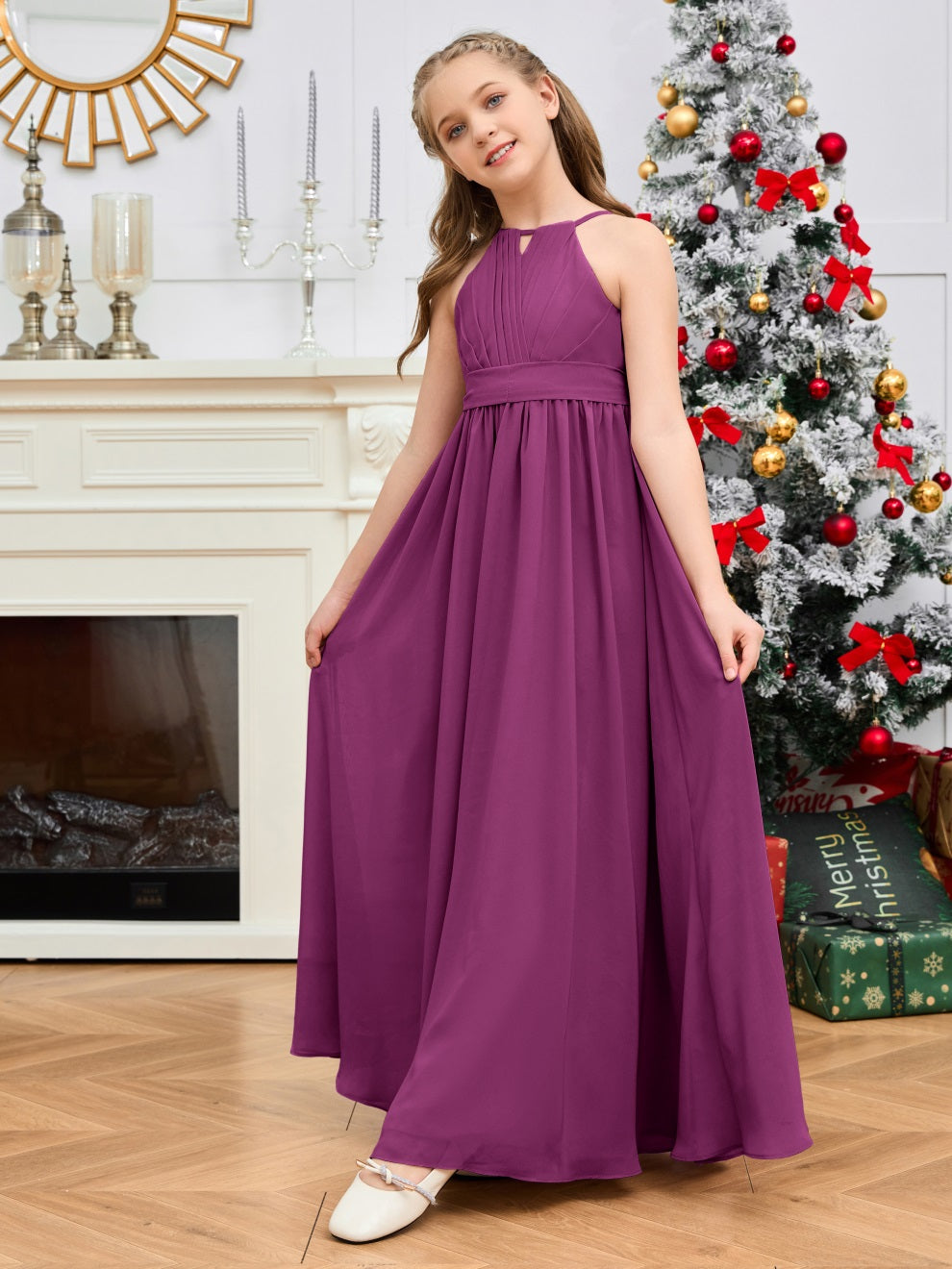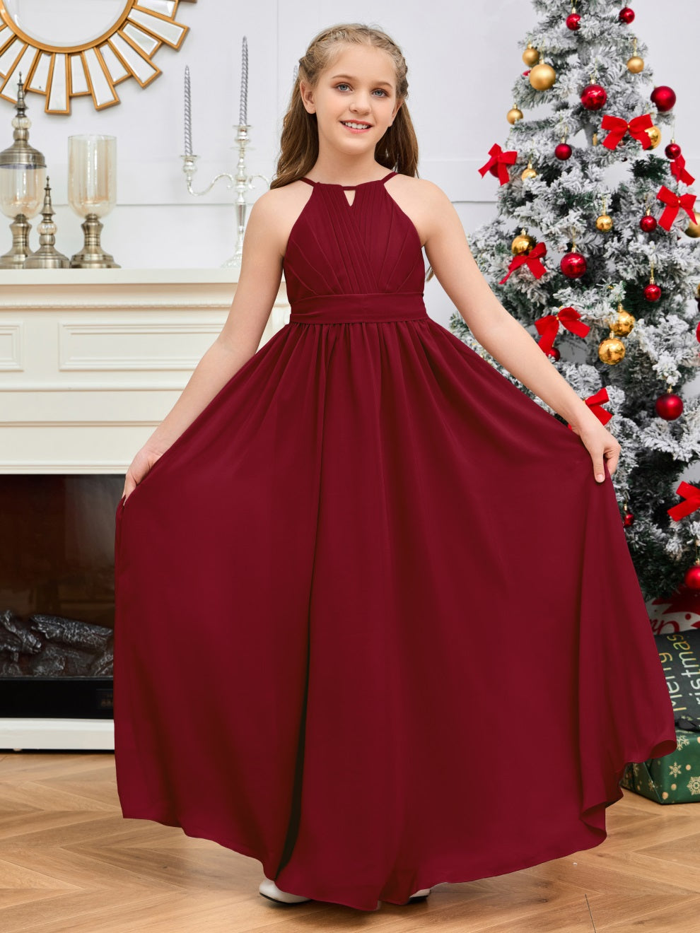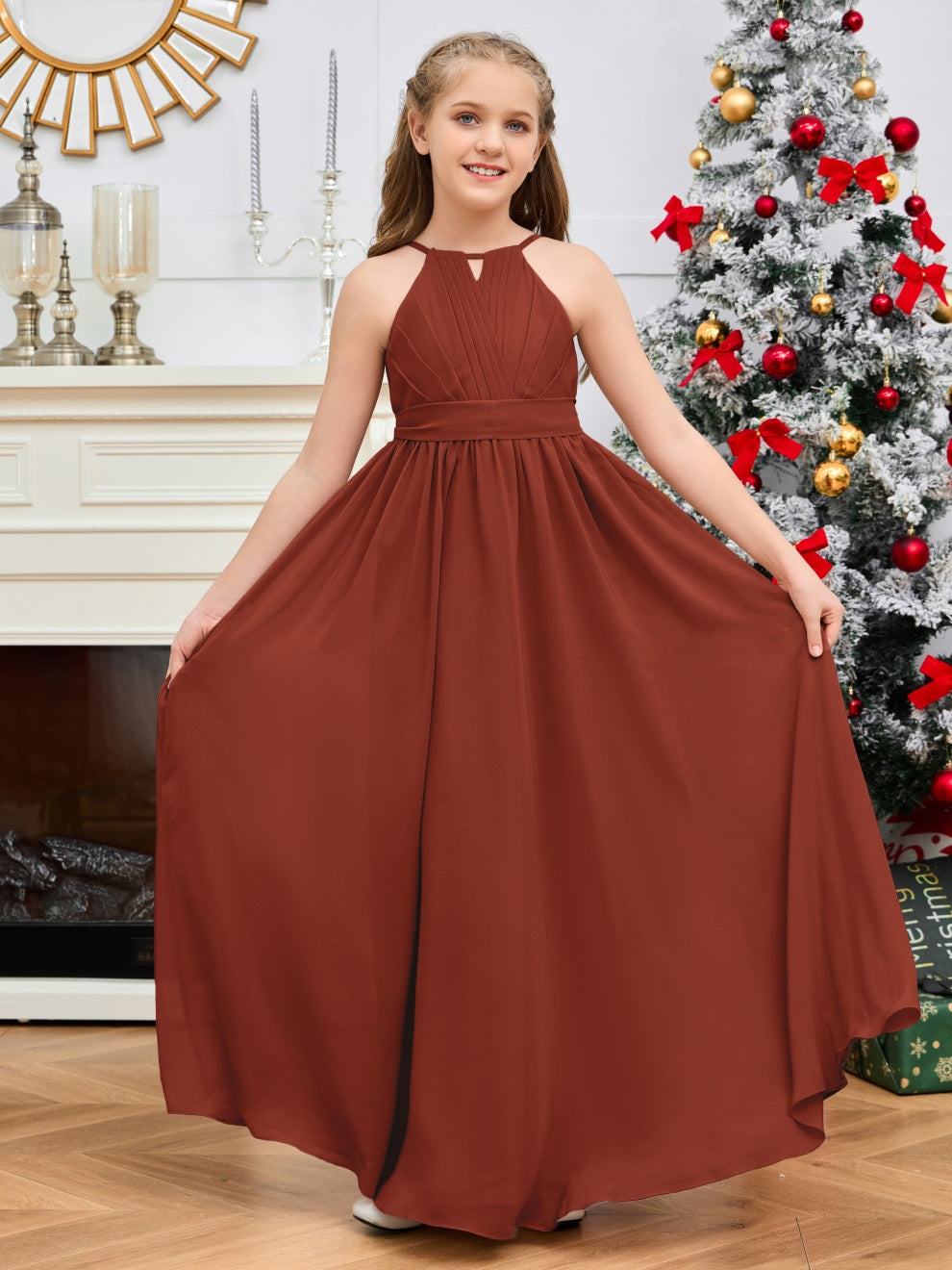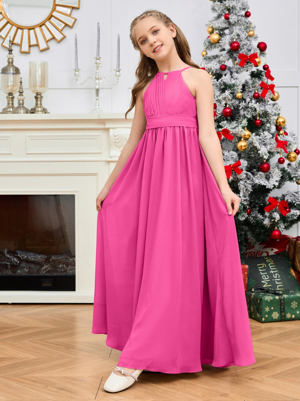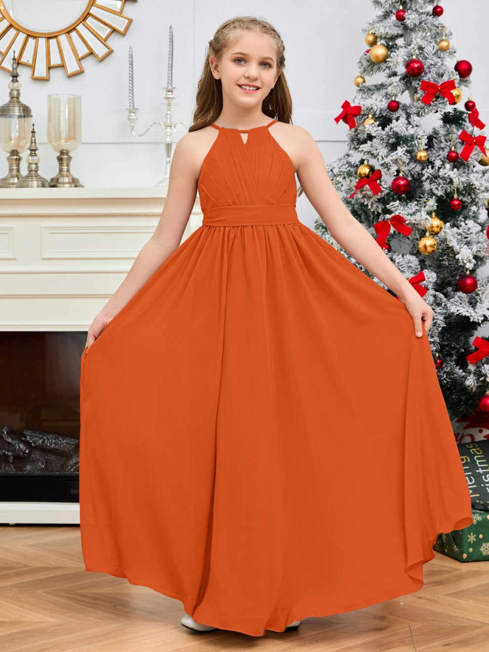 Halter bodenlanges Chiffon Junior Brautjungfernkleid