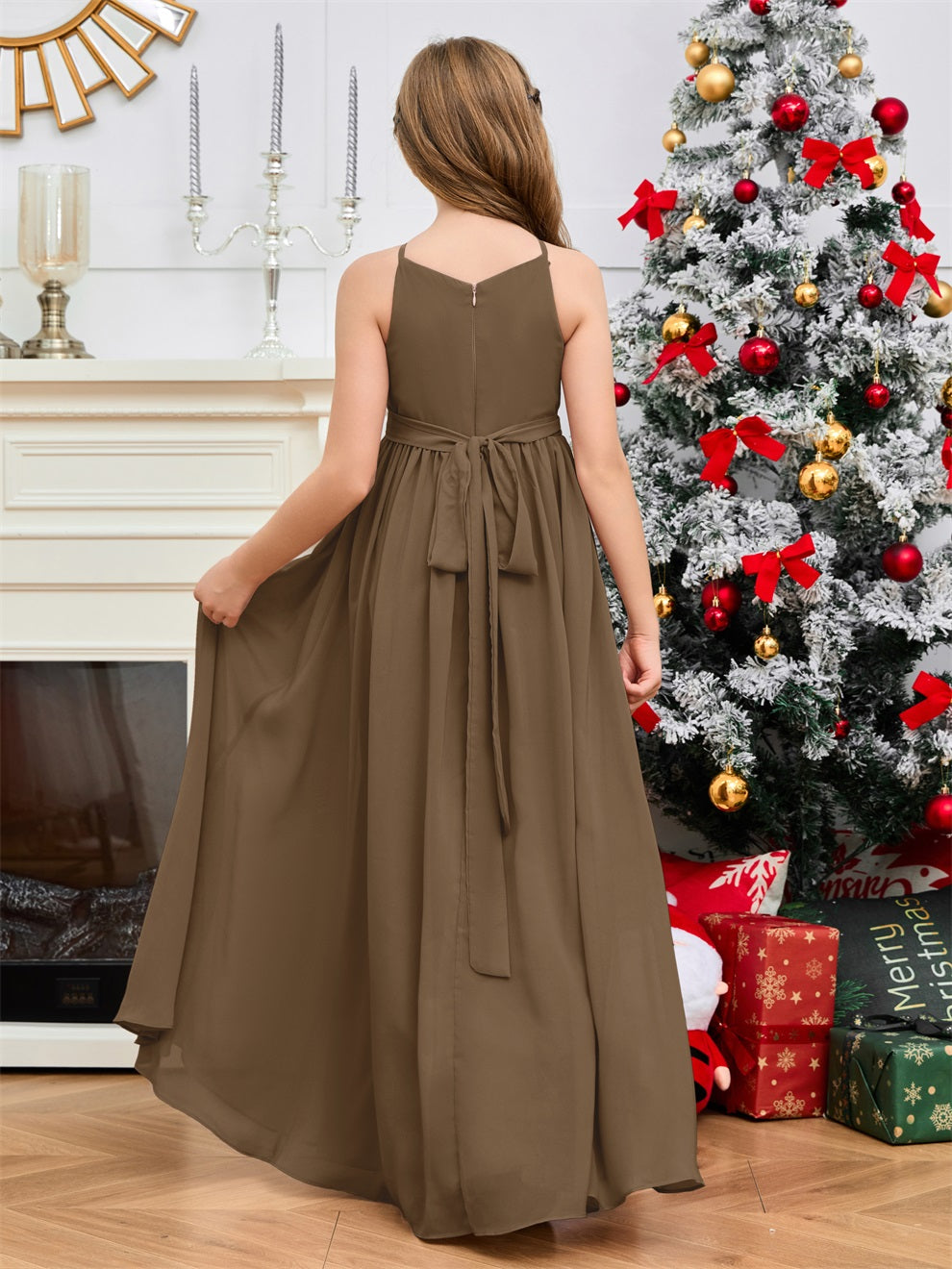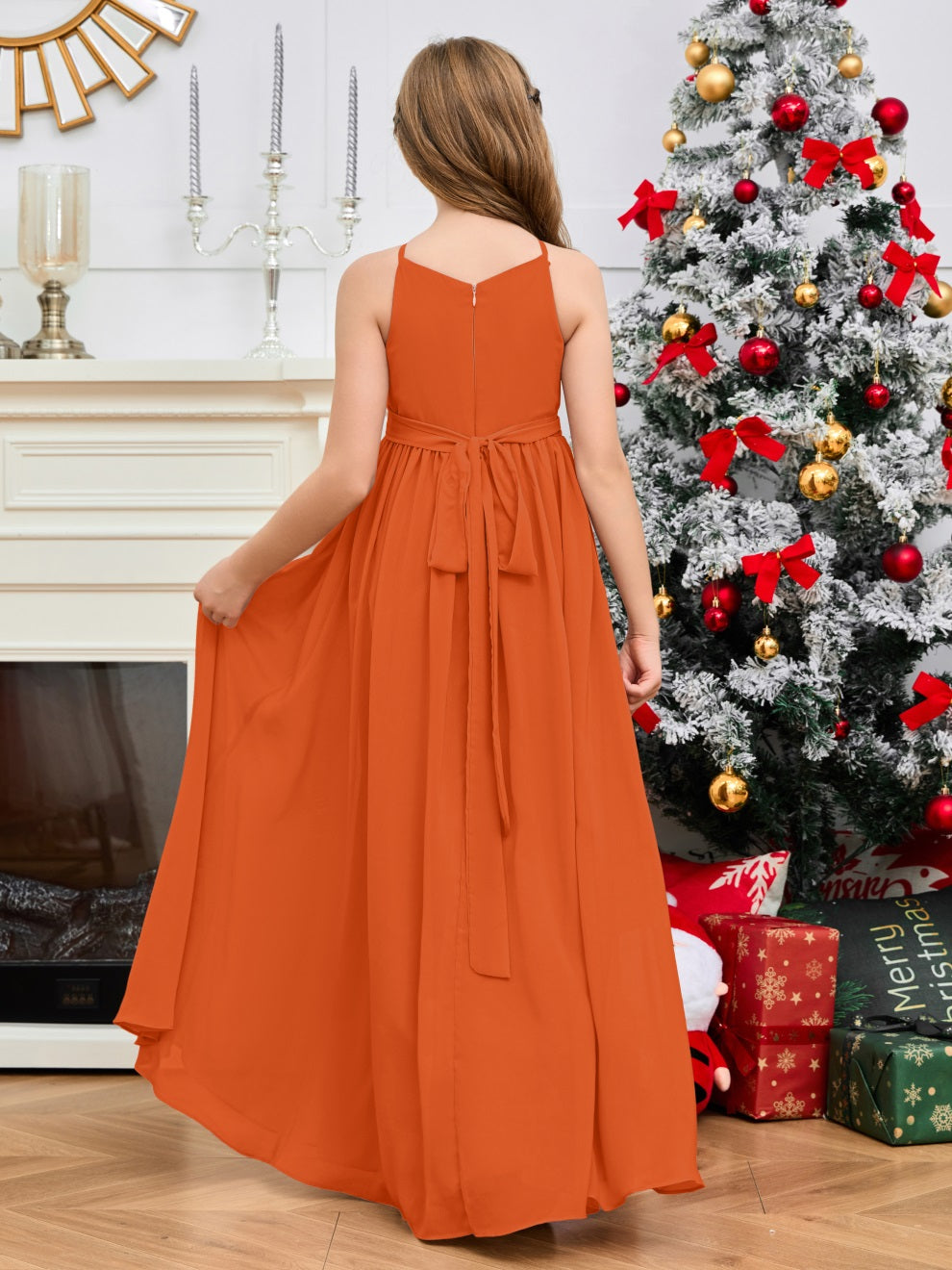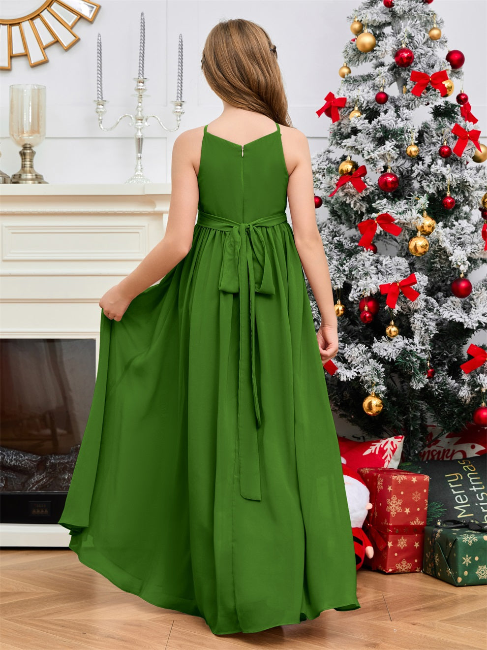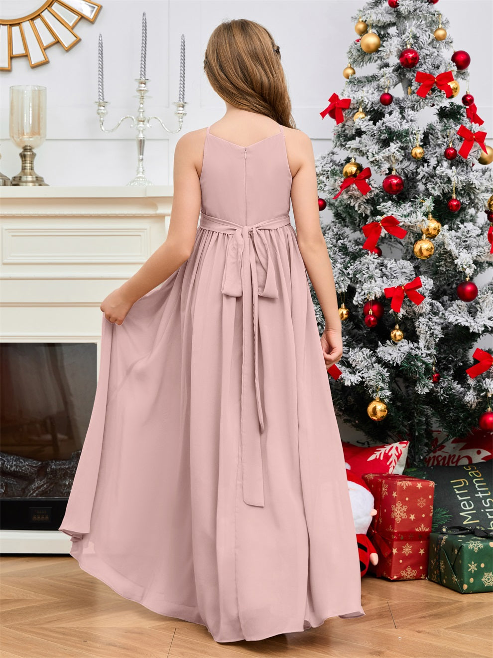 Halter bodenlanges Chiffon Junior Brautjungfernkleid