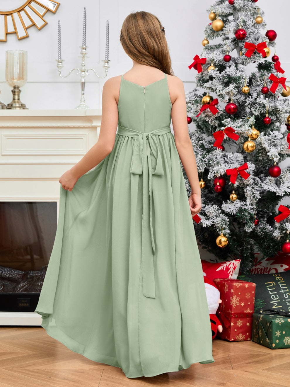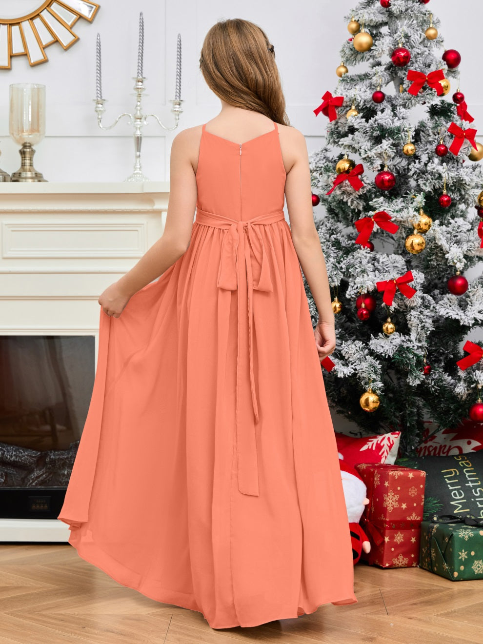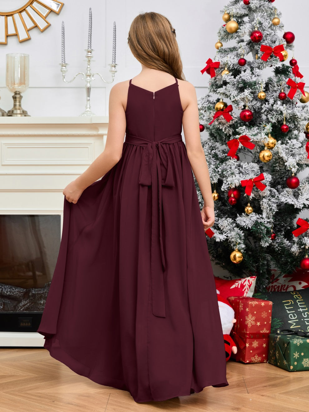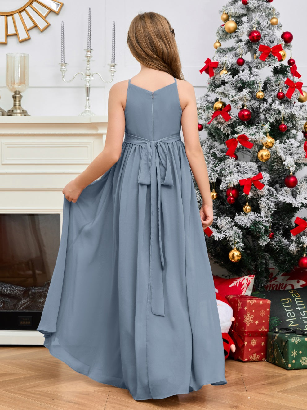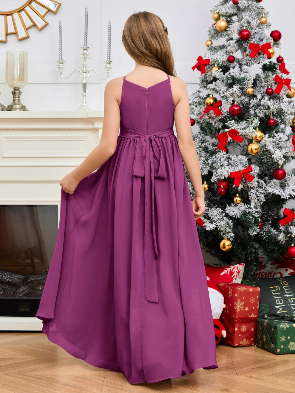 Halter bodenlanges Chiffon Junior Brautjungfernkleid