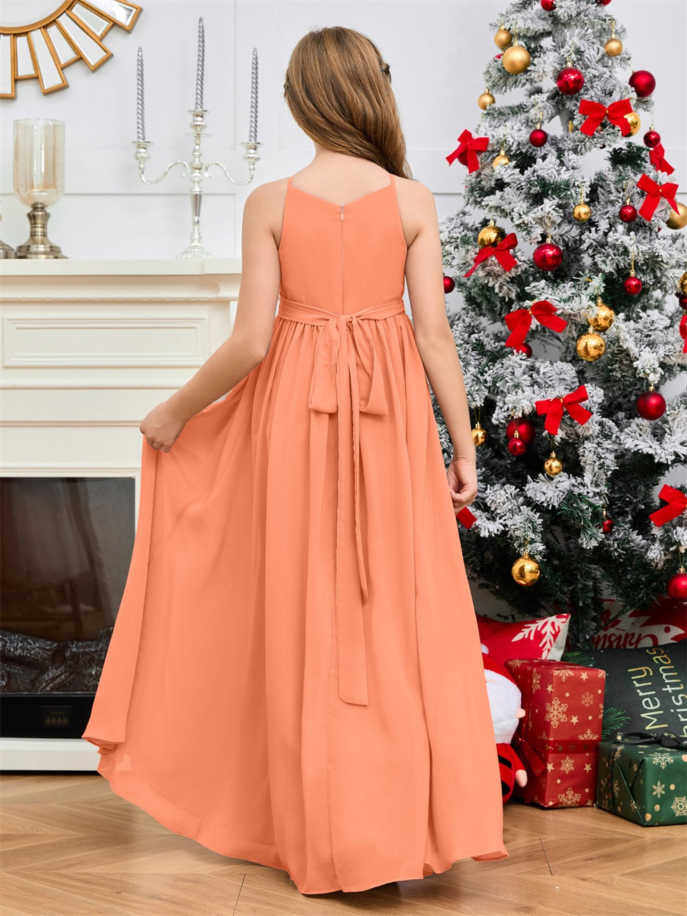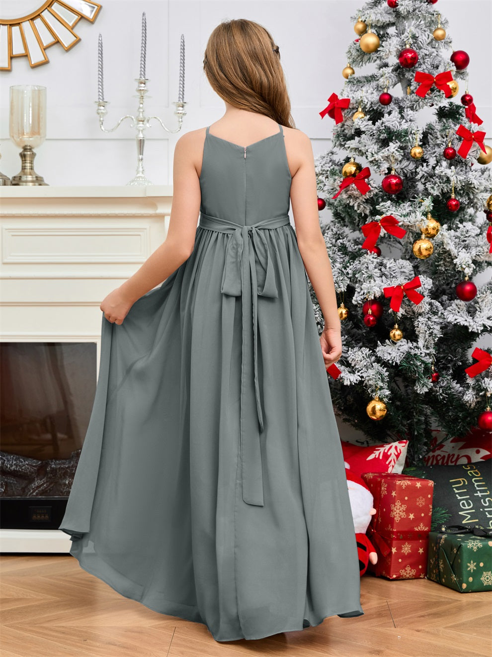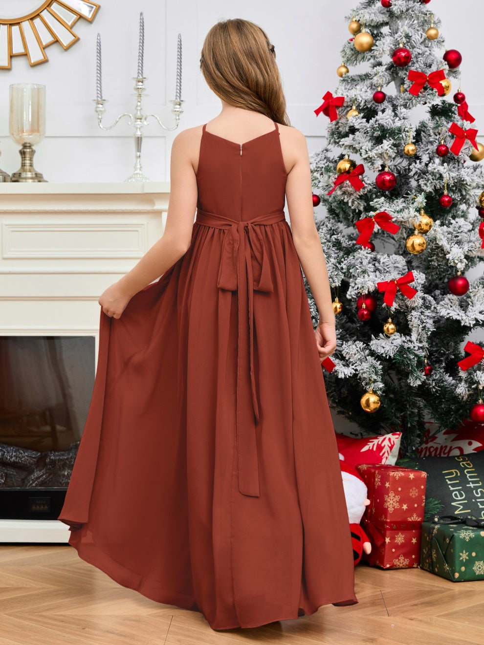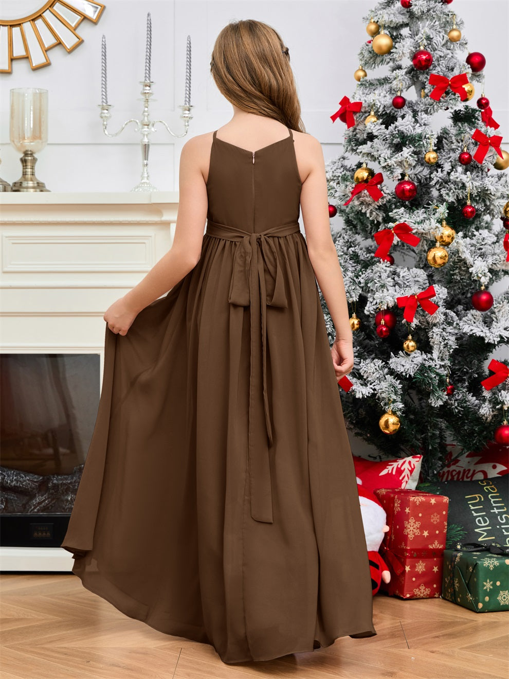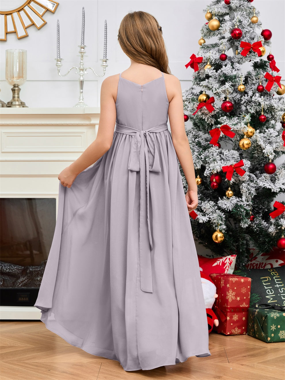 Halter bodenlanges Chiffon Junior Brautjungfernkleid