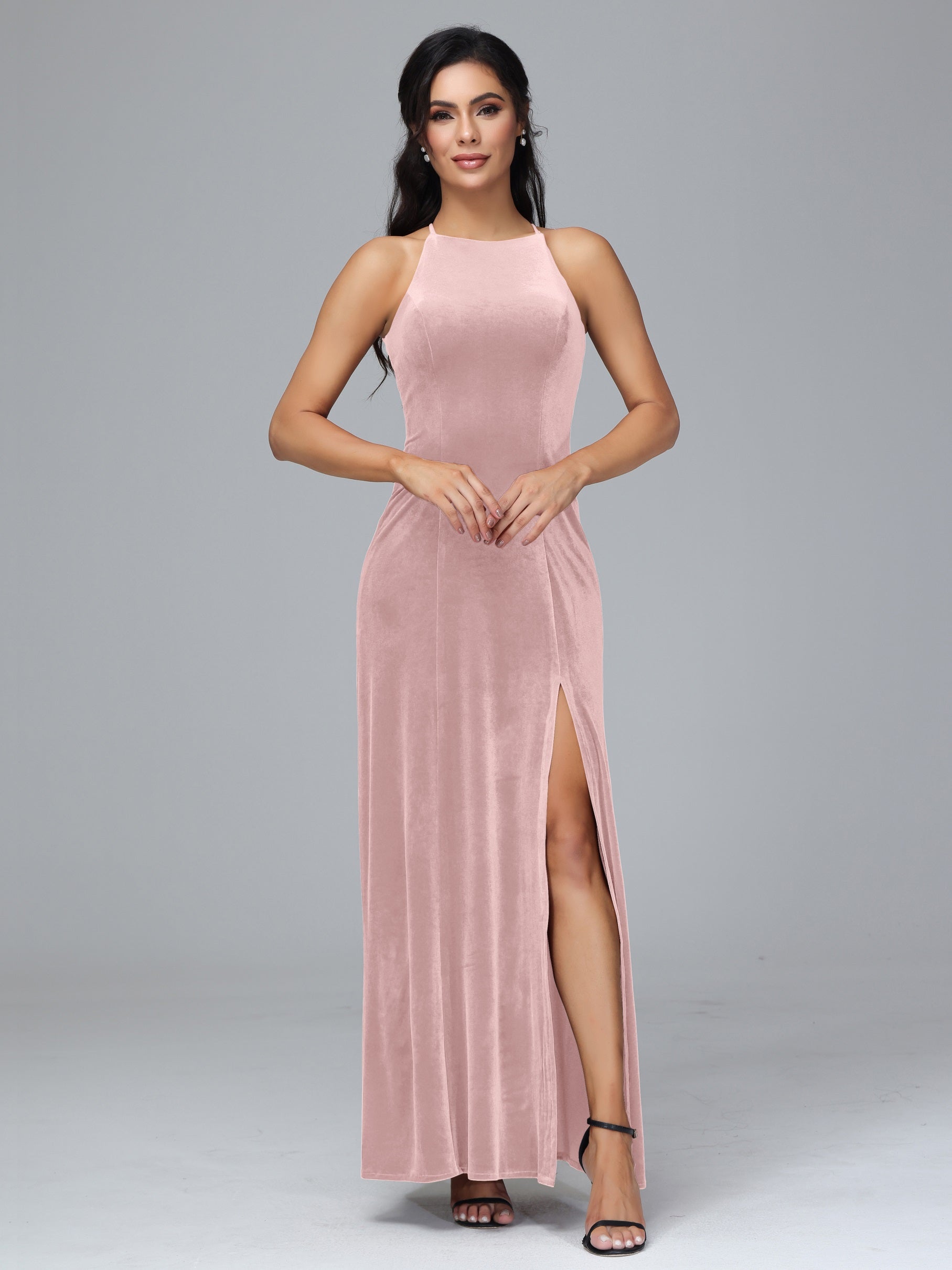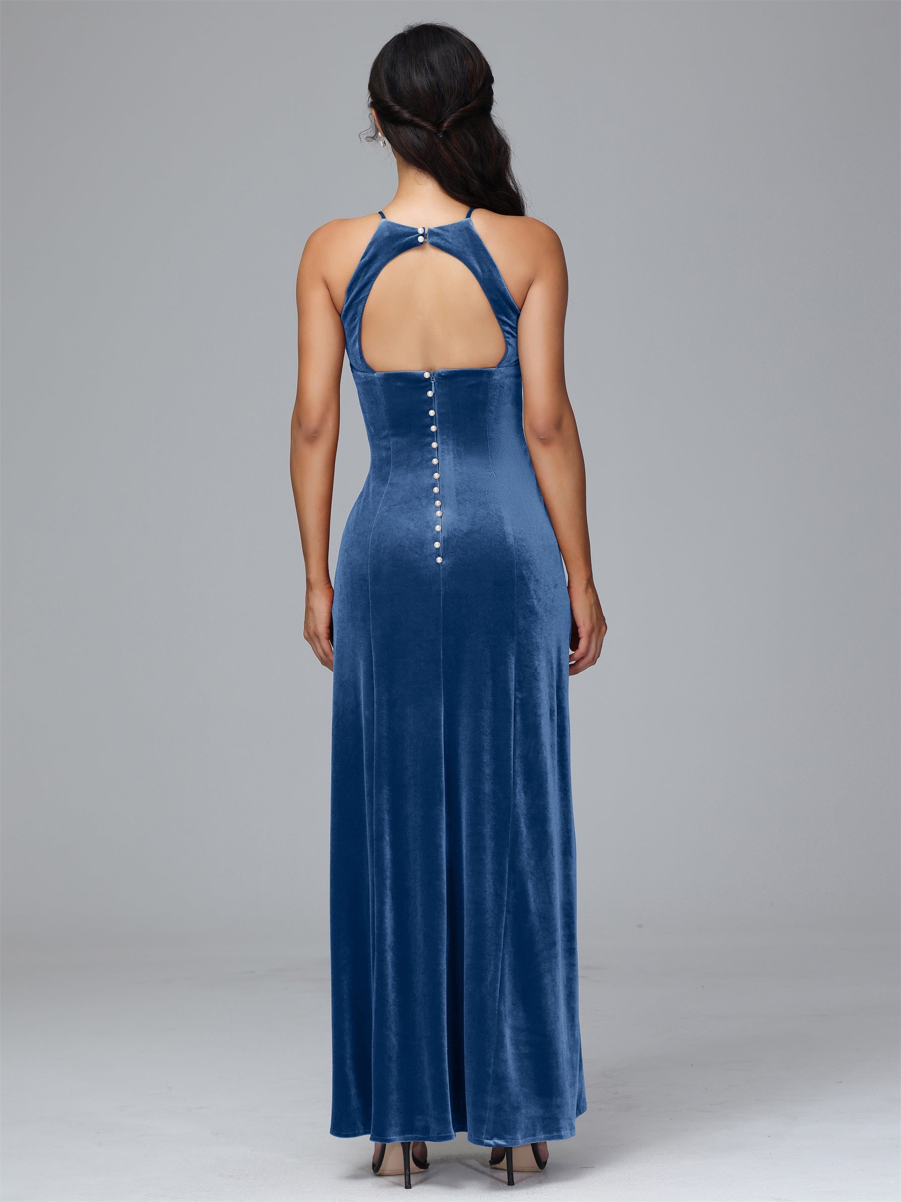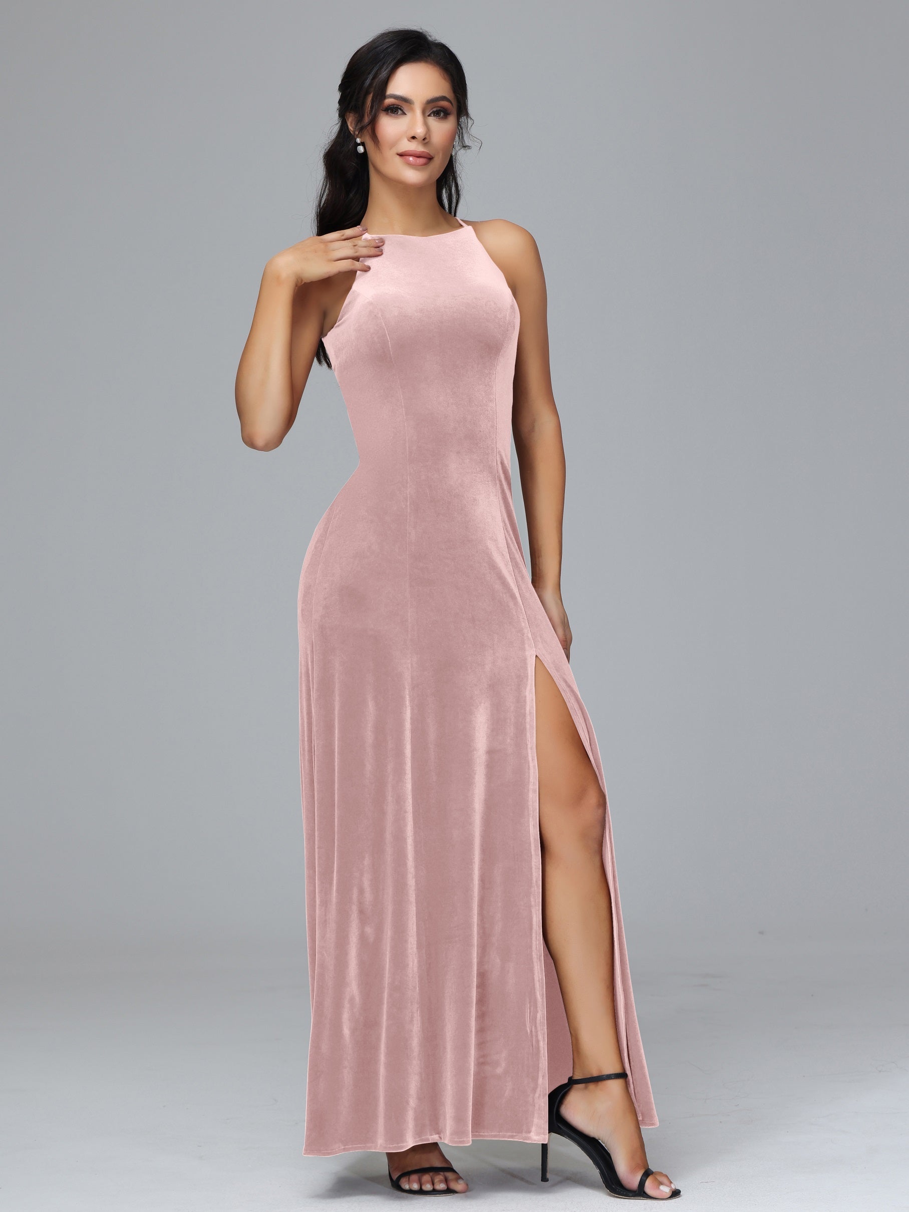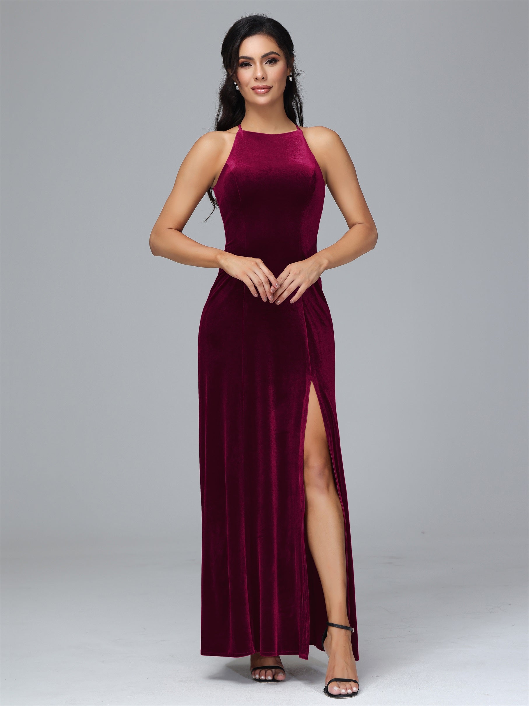 Beryl Halterneck ärmellos Samt Brautjungfernkleider