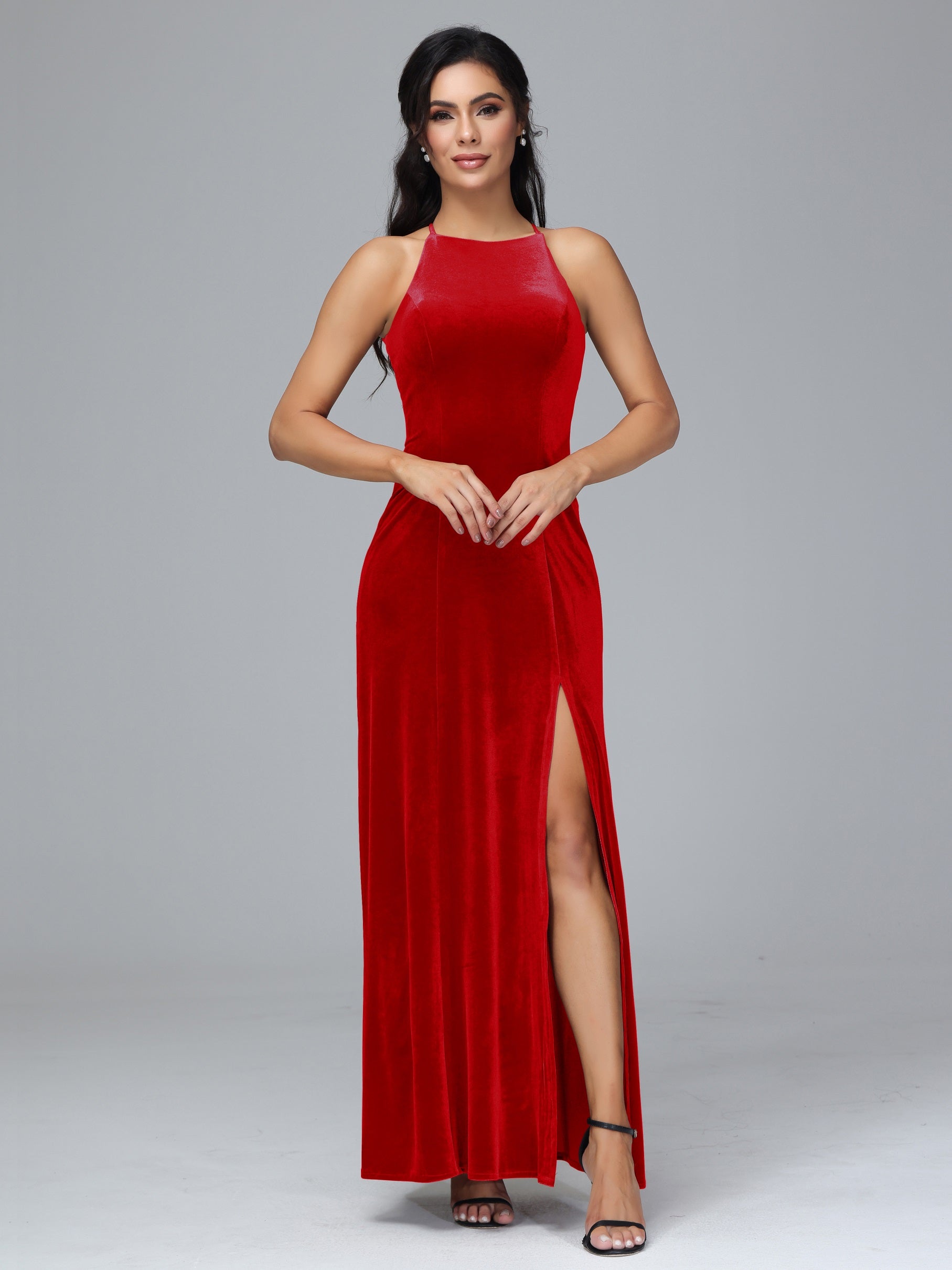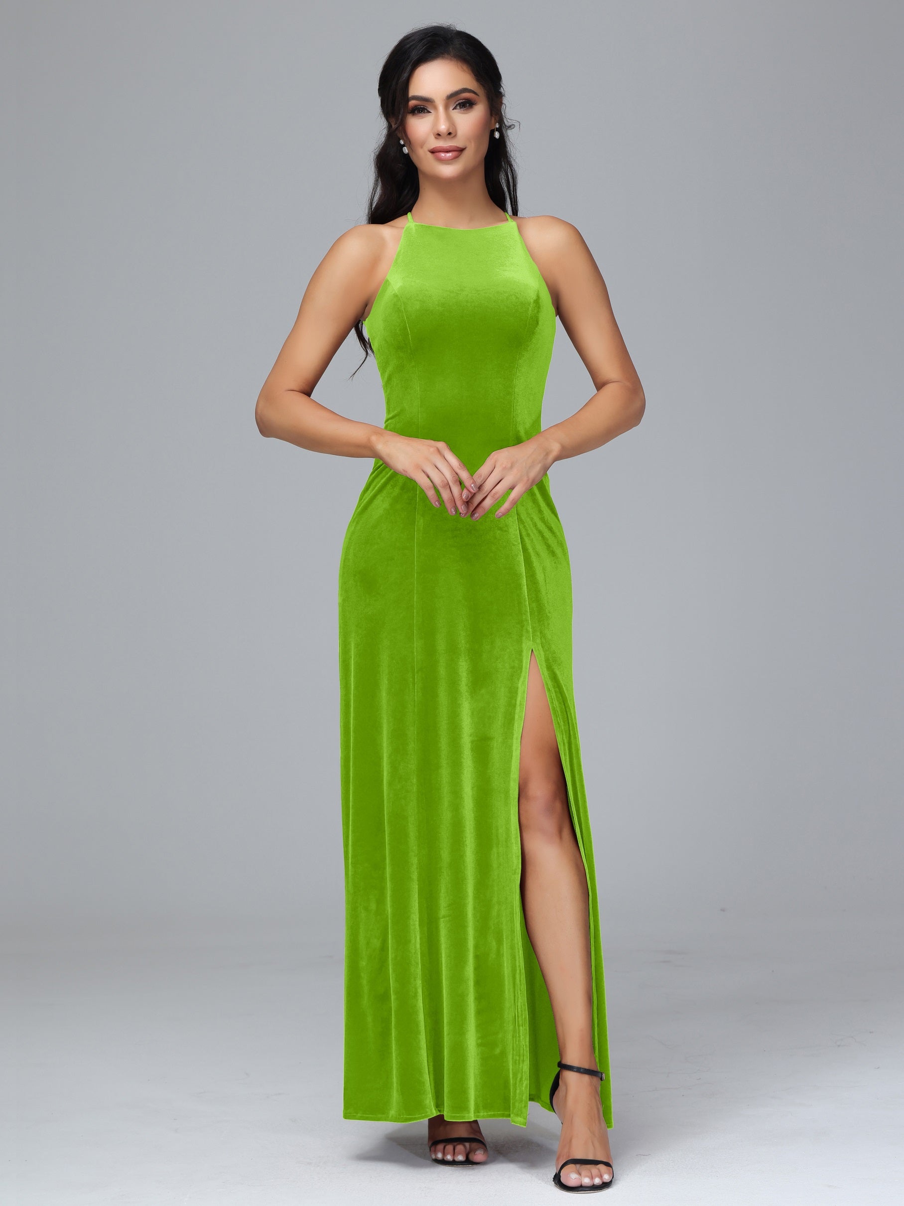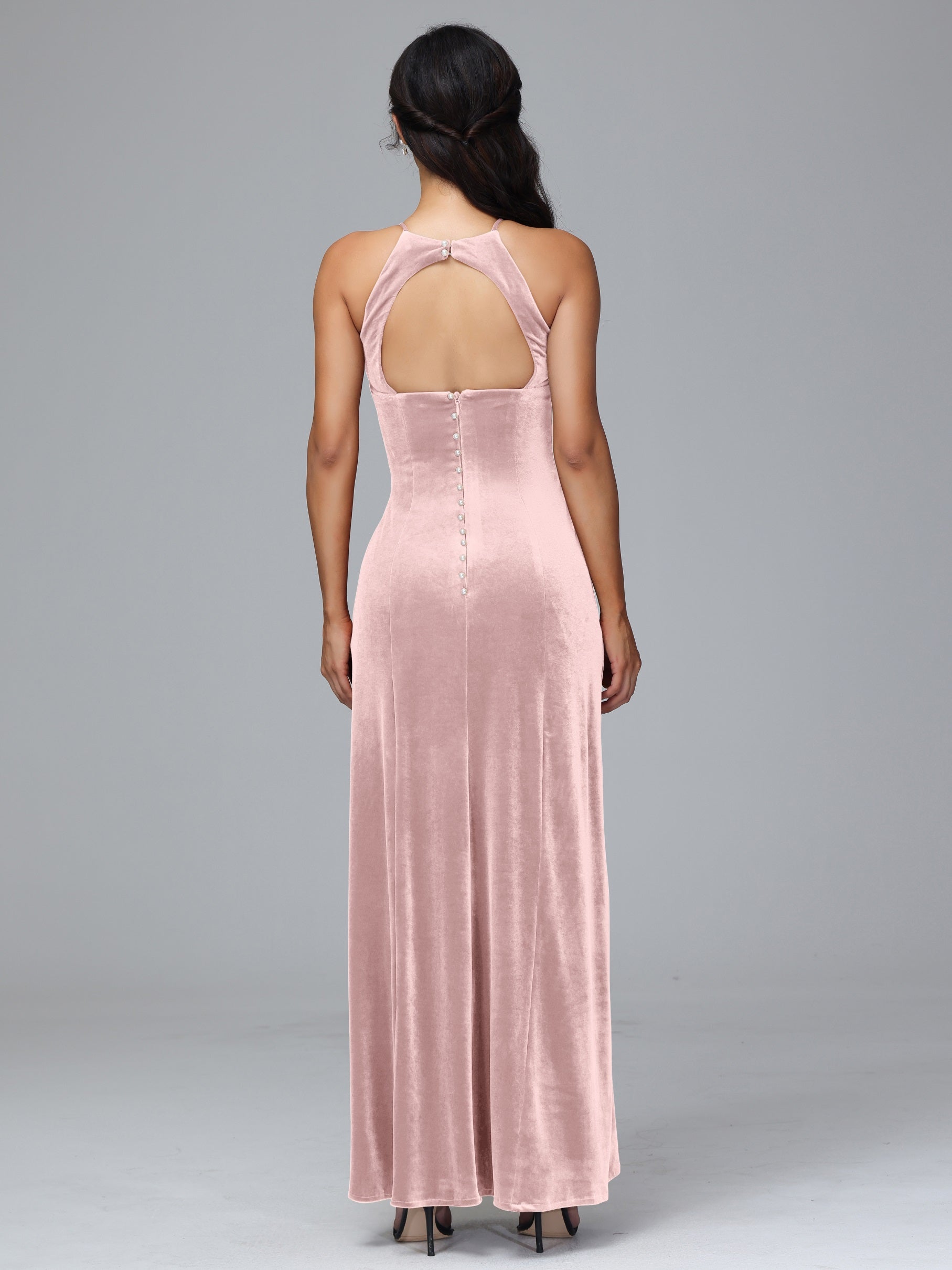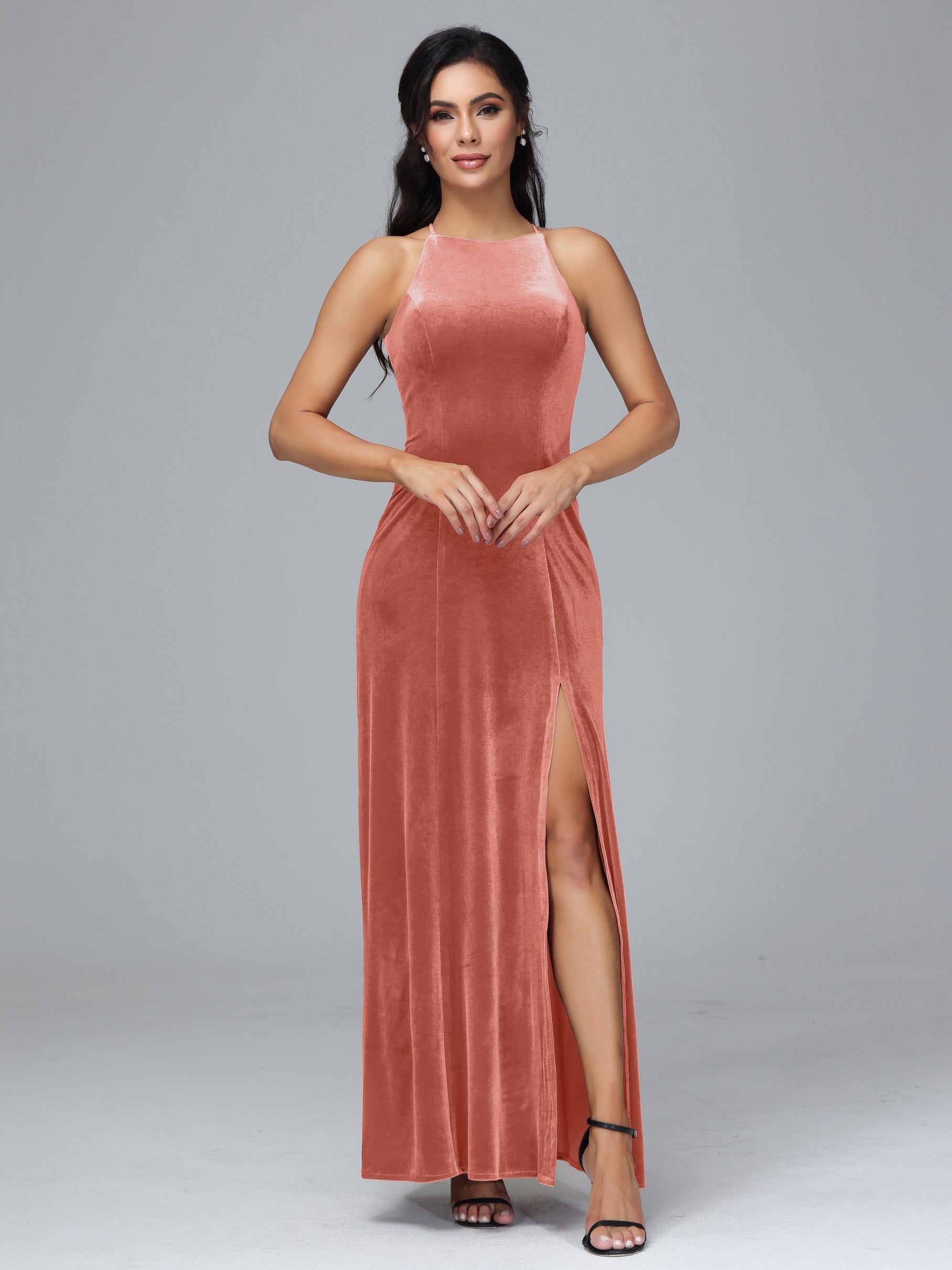Beryl Halterneck ärmellos Samt Brautjungfernkleider