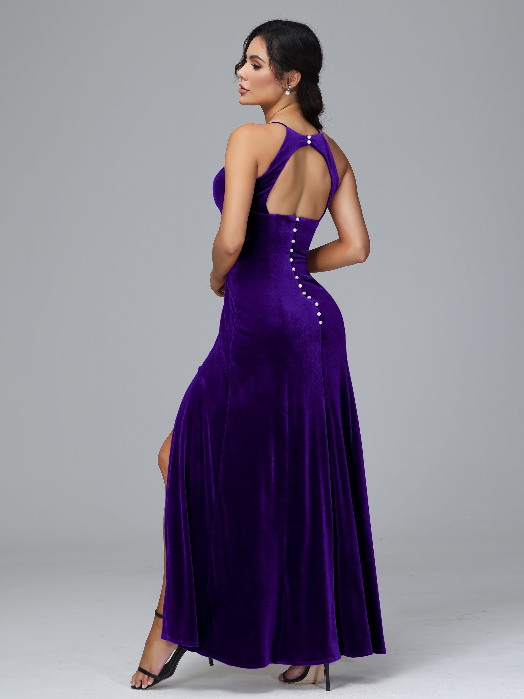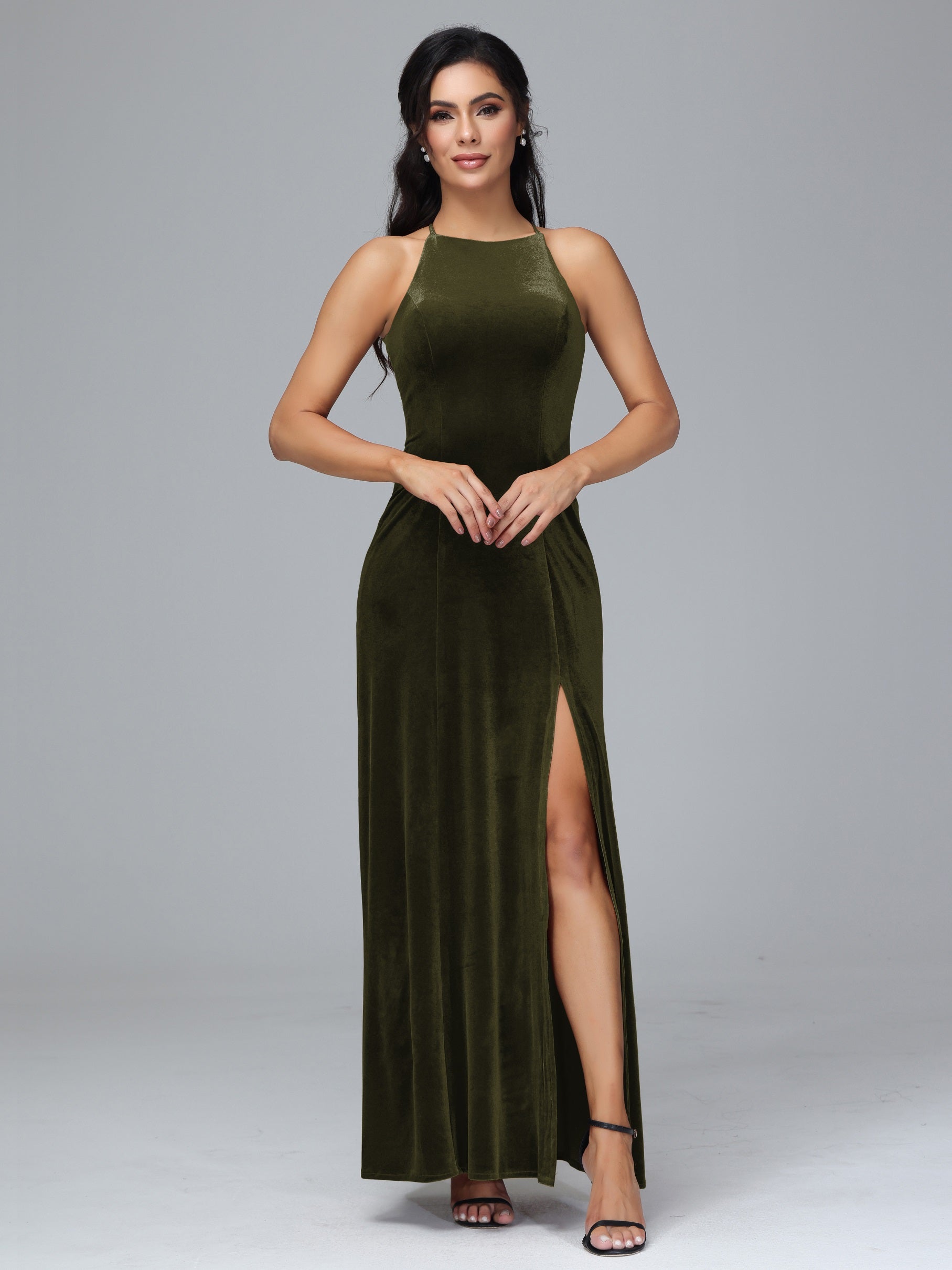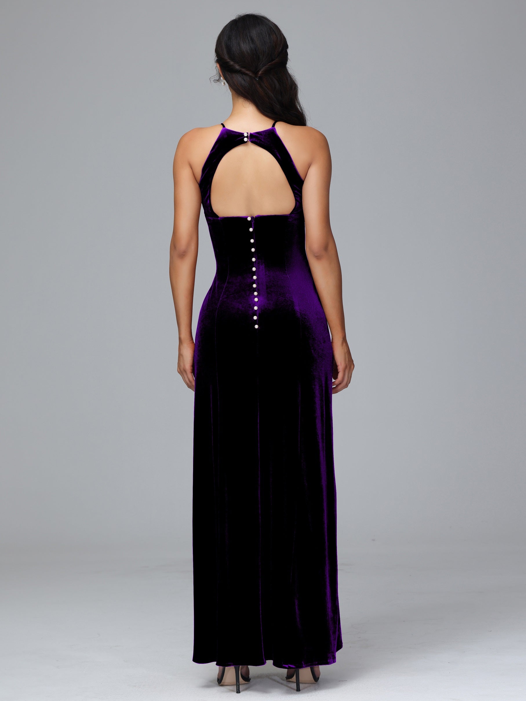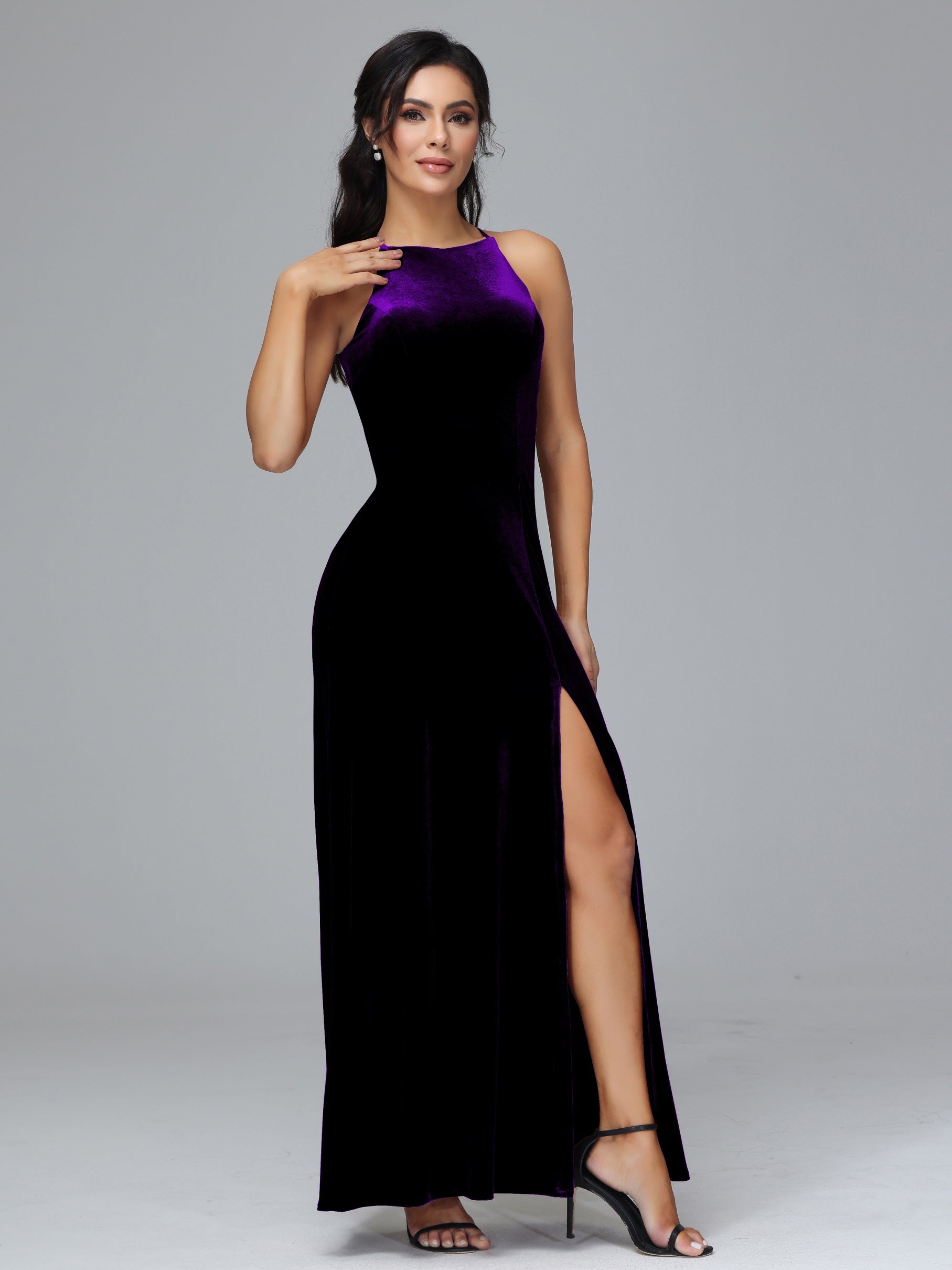 Beryl Halterneck ärmellos Samt Brautjungfernkleider