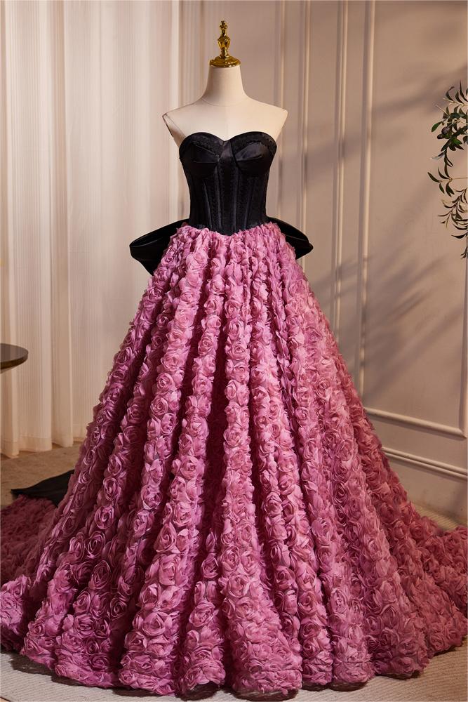 Hepburn Style Schwarz Rosa Fliege Blume Lange Abendkleider