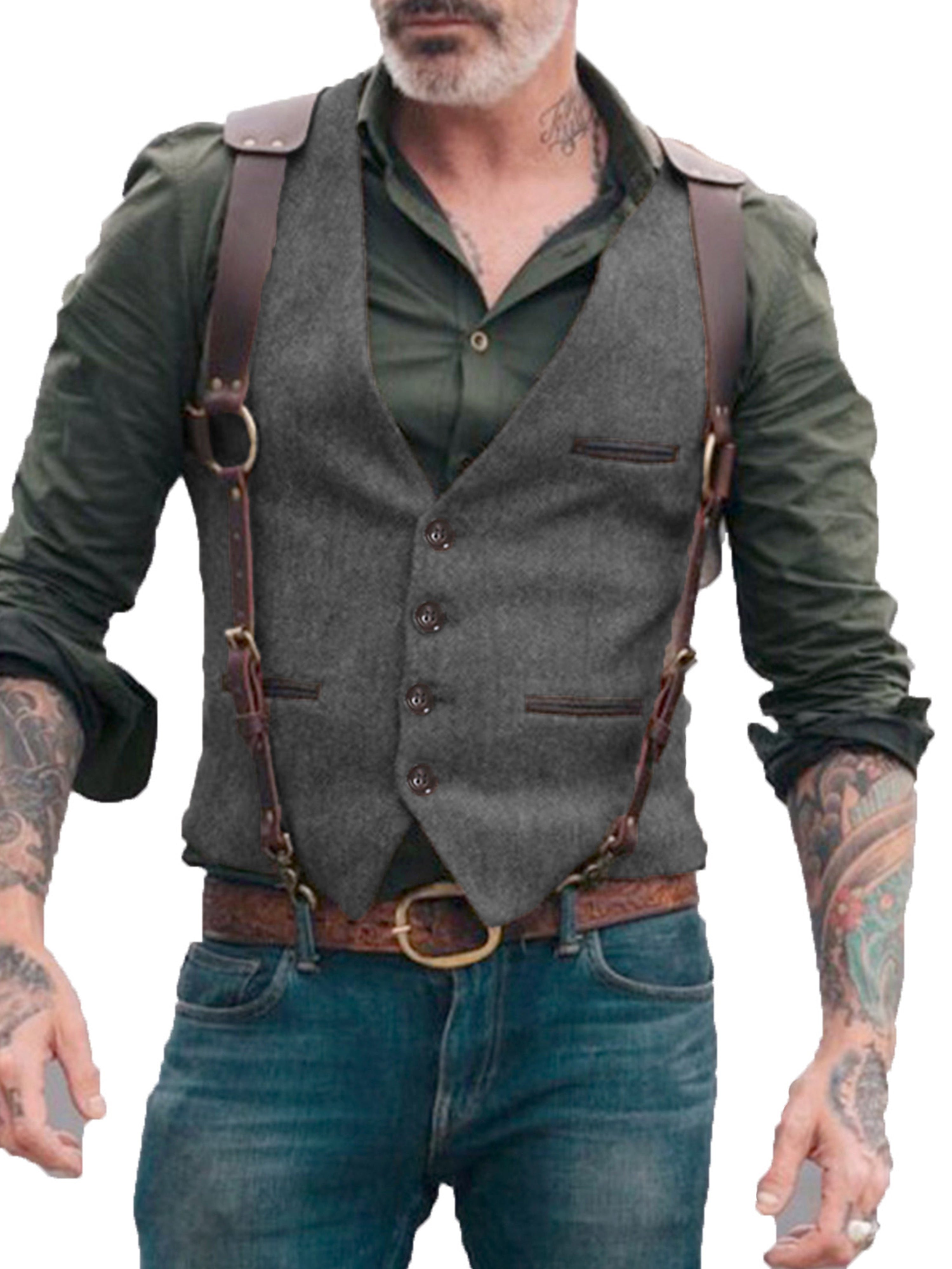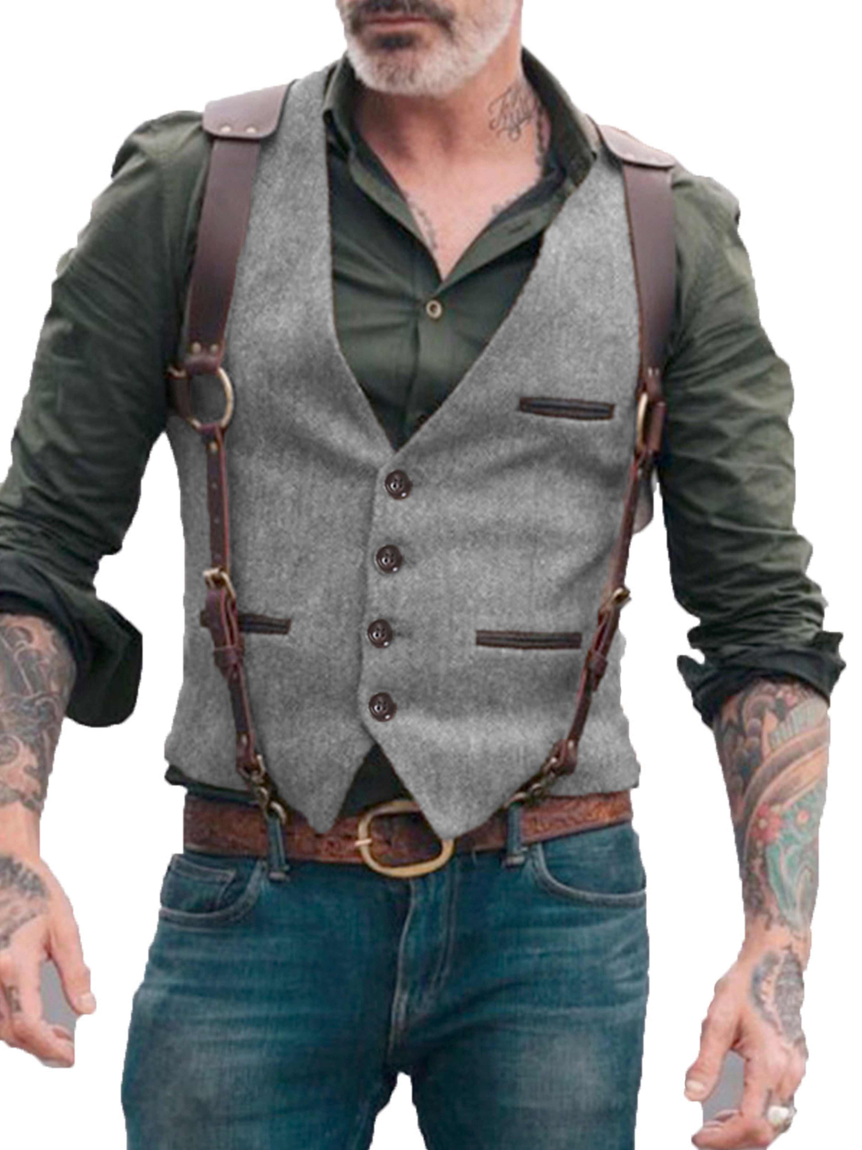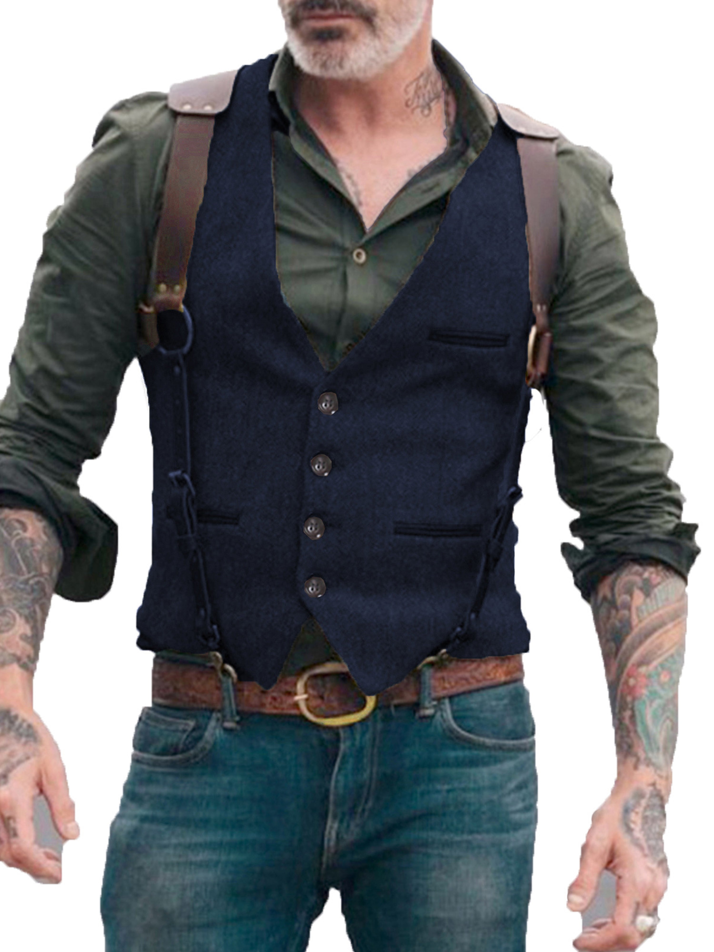 Herren Anzugweste Stehkragen Fischgrätenweste