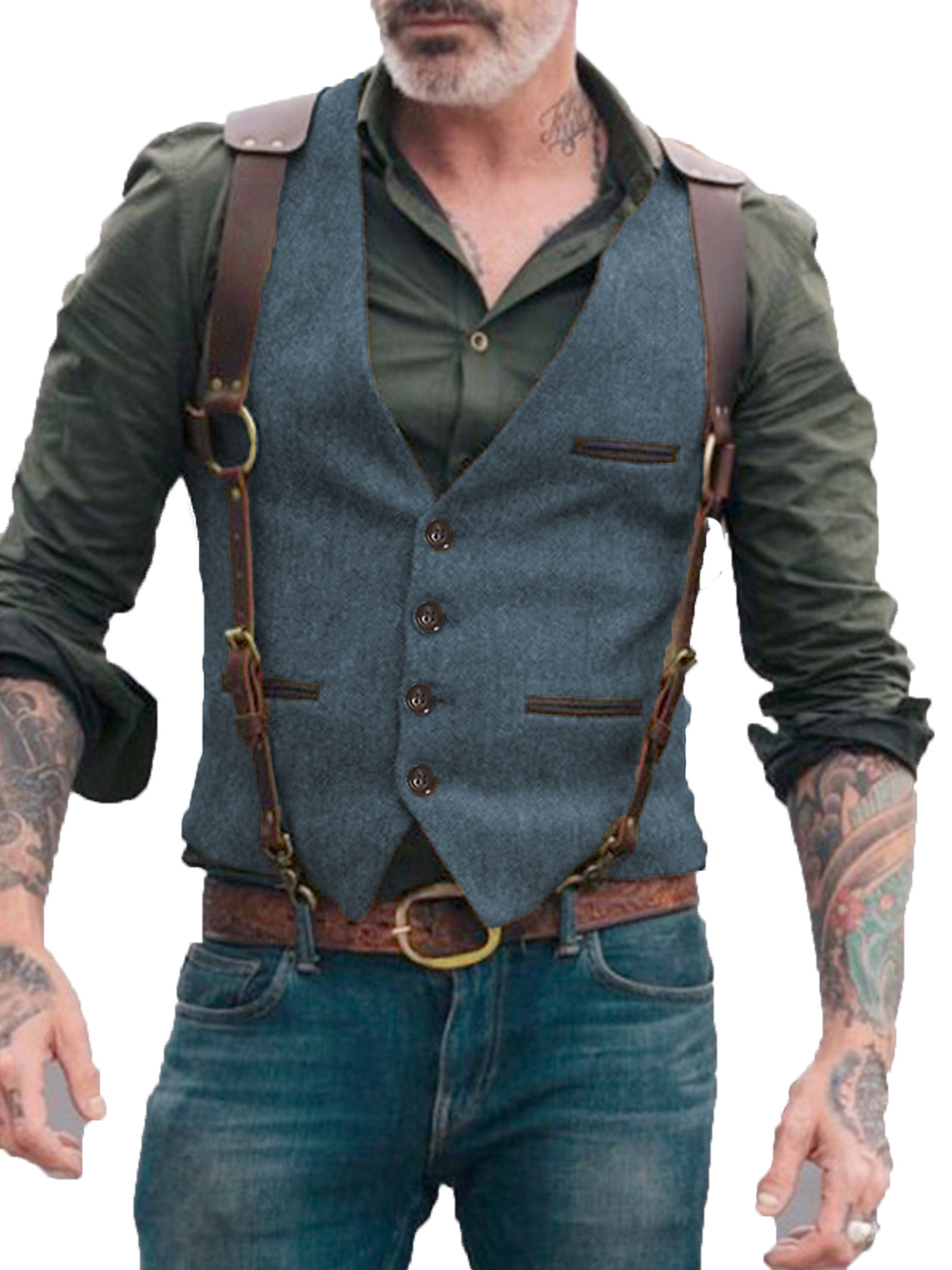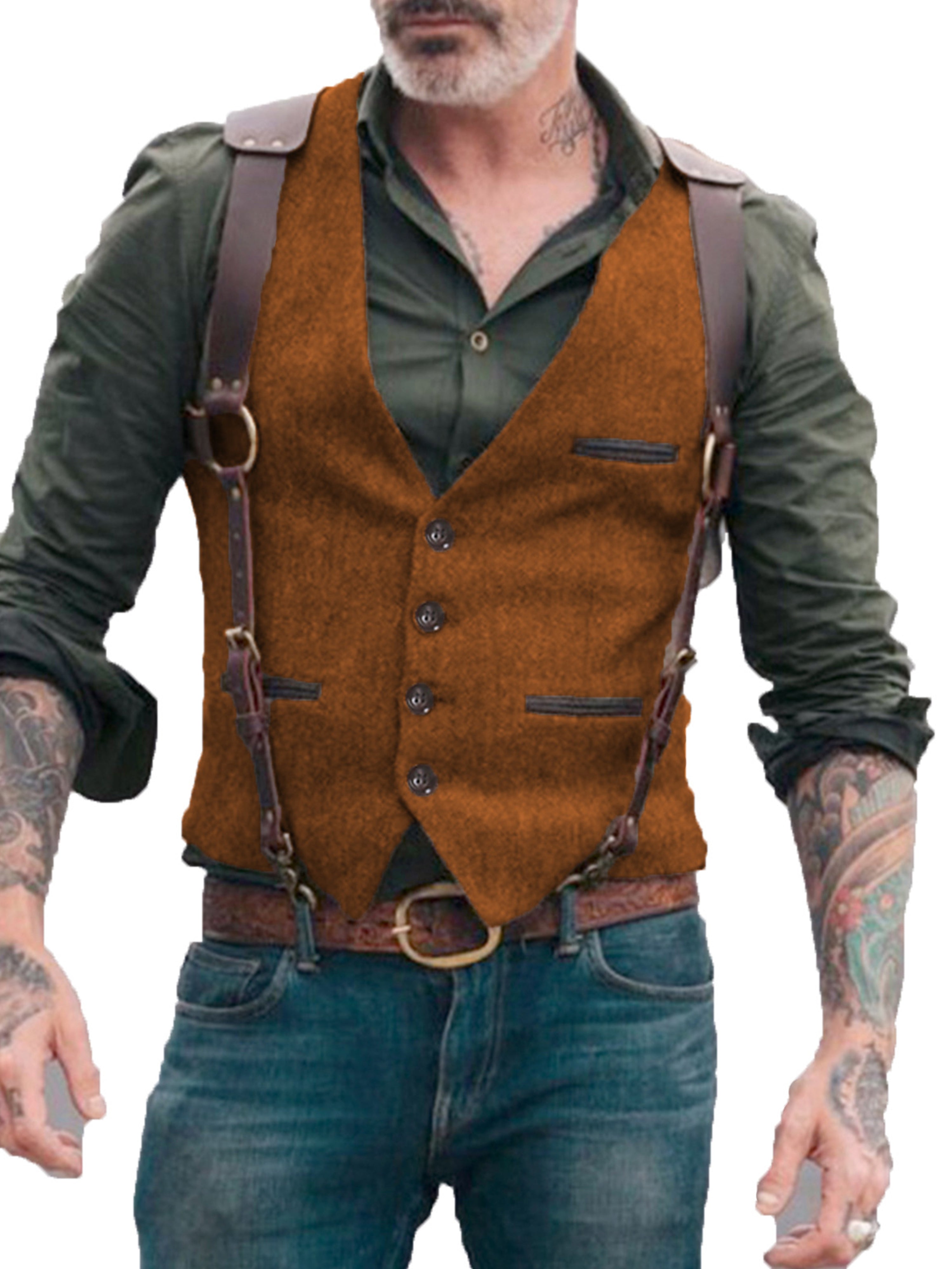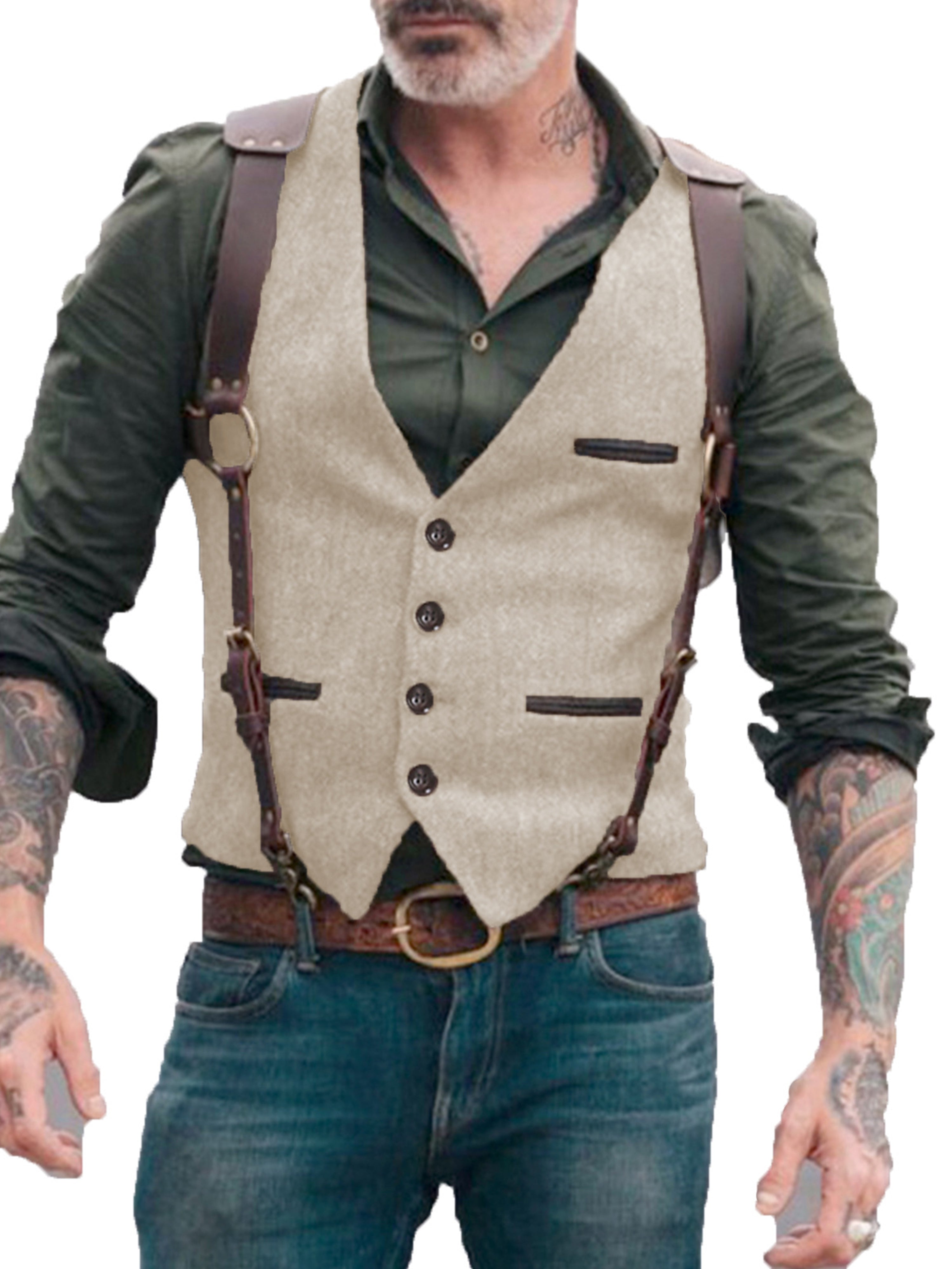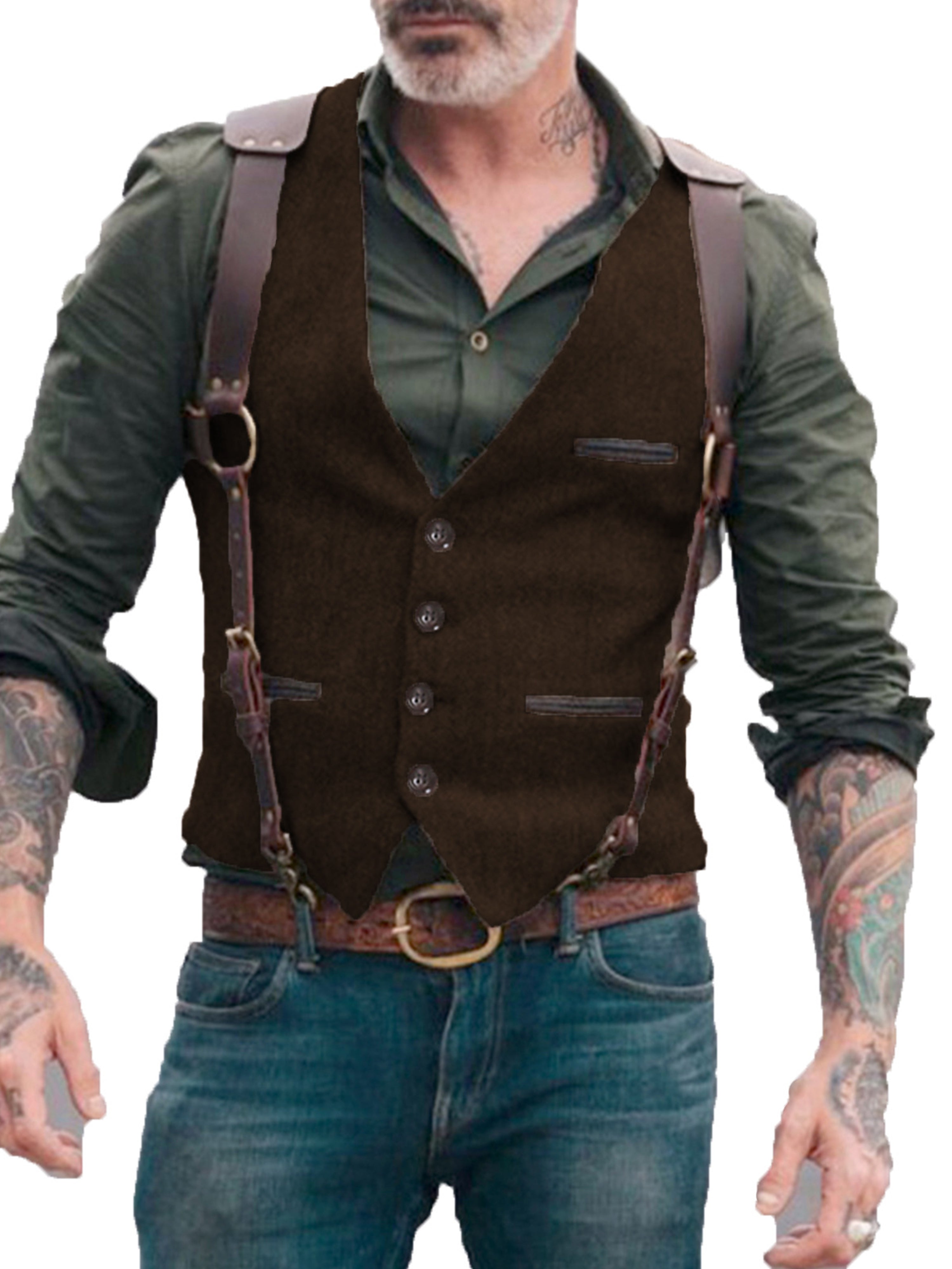 Herren Anzugweste Stehkragen Fischgrätenweste