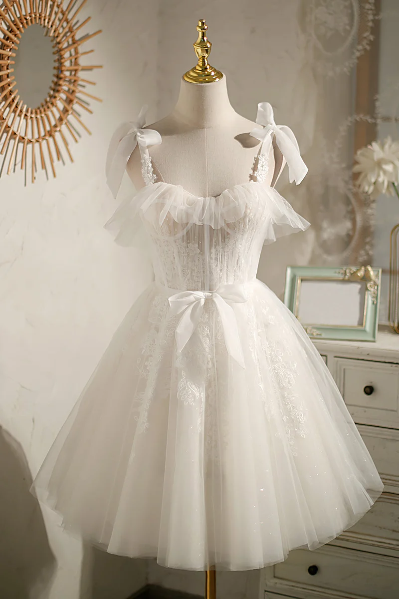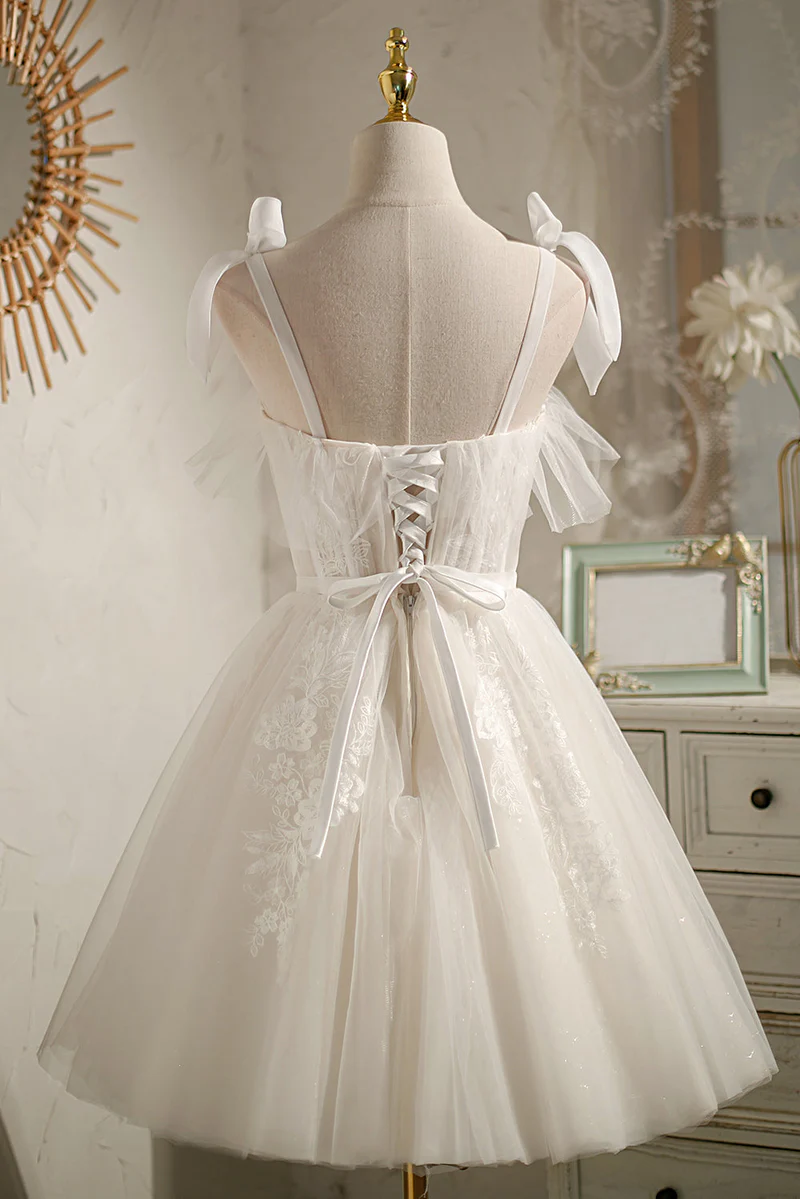 Hübsche Elfenbeinfarbene Tüll Spitze Applikationen Schleife Knoten Kurze Ballkleider
