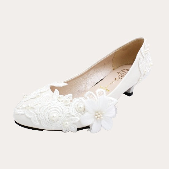 Dein Hochzeitstag wird perfekt sein mit unseren hübschen Gaze Floral Perle verschönerten Hochzeitsschuhen. Diese Schuhe sind nicht nur wunderschön, sondern auch bequem und schmeicheln deinen Füßen. Die zarten Perlen verleihen ihnen einen eleganten Touch und werden dich zum Strahlen bringen.