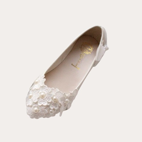 Verleihen Sie Ihrem Hochzeitslook einen Hauch von Eleganz mit unseren hübschen Spitze Perle Schmetterling Blume Fliege Hochzeitsschuhe. Diese Schuhe verfügen über zarte Spitze und glänzende Perlenverzierungen, die Ihre Füße in jedem Schritt schimmern lassen. Perfekt für eine märchenhafte Hochzeit.