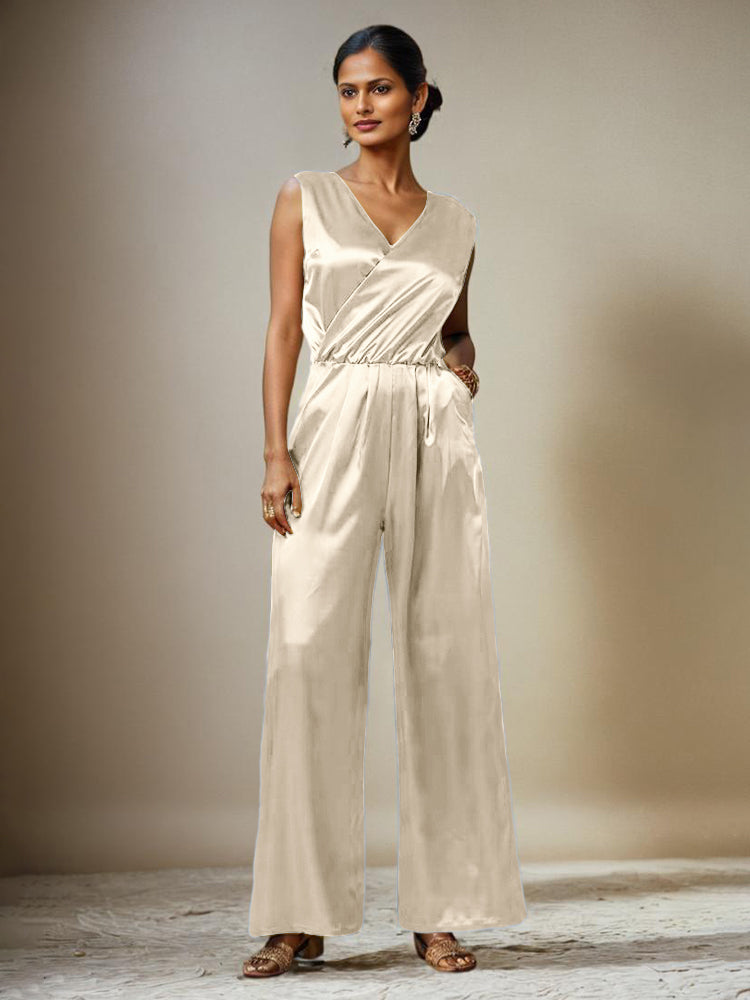 Jumpsuit/Hosenanzug V-Ausschnitt Ärmellos Soft Satin Gürtel Brautmutterkleider