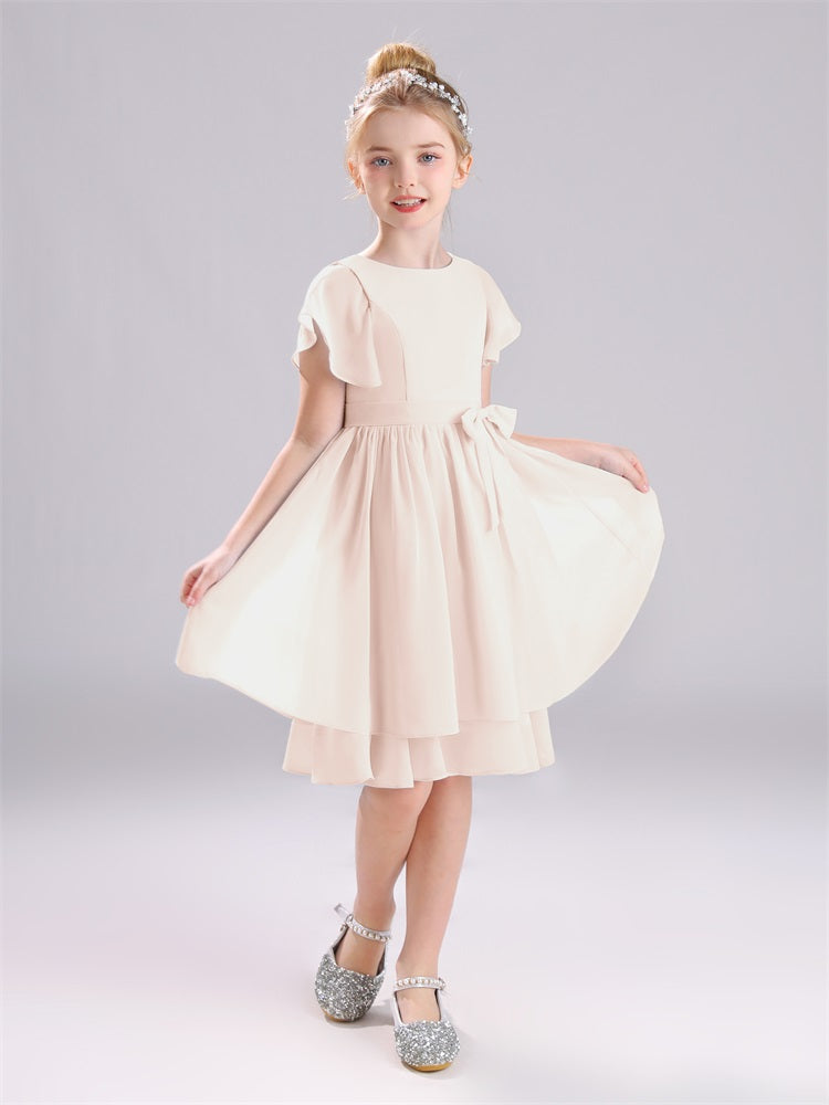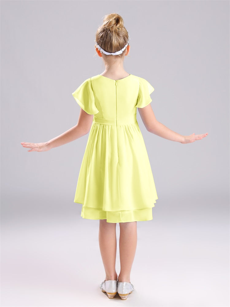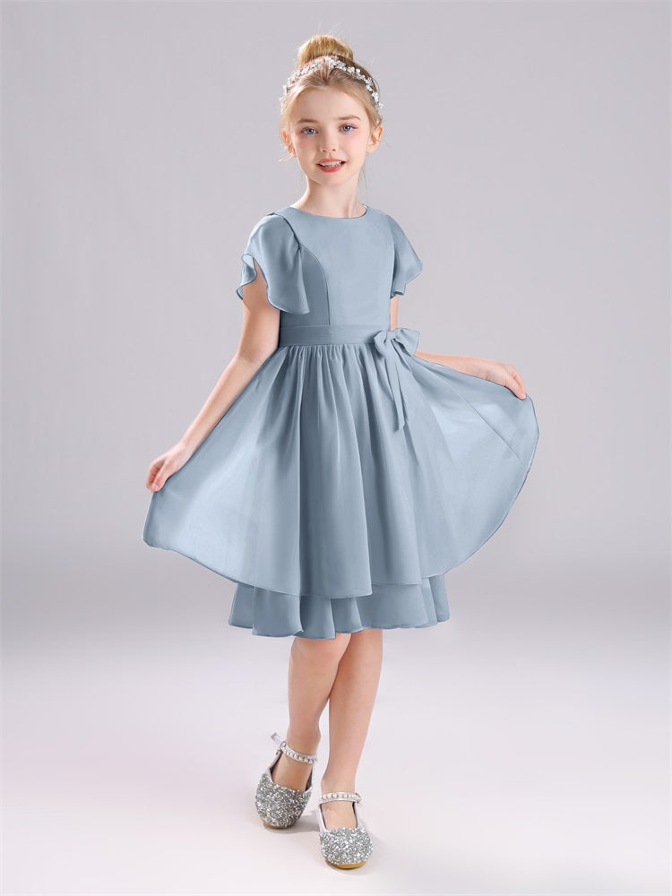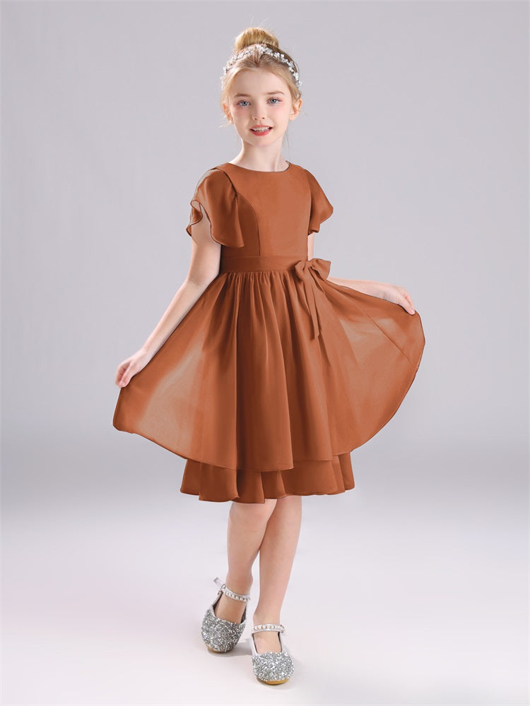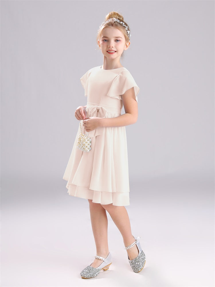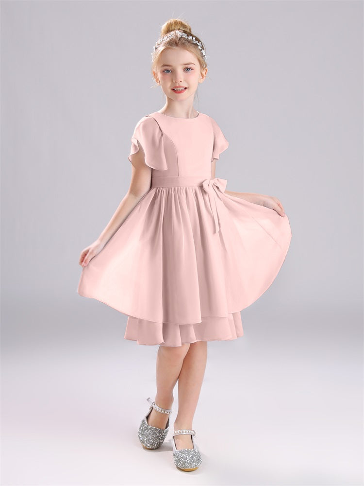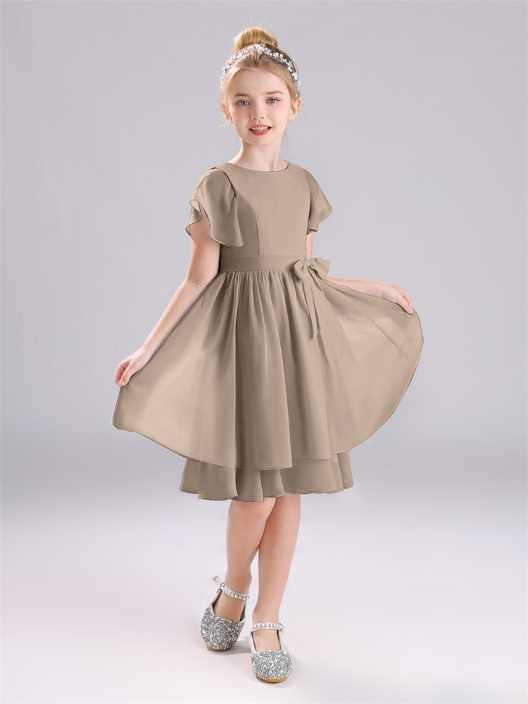 Juwel A-Linie Ärmel knielang Chiffon Junior Brautjungfernkleider