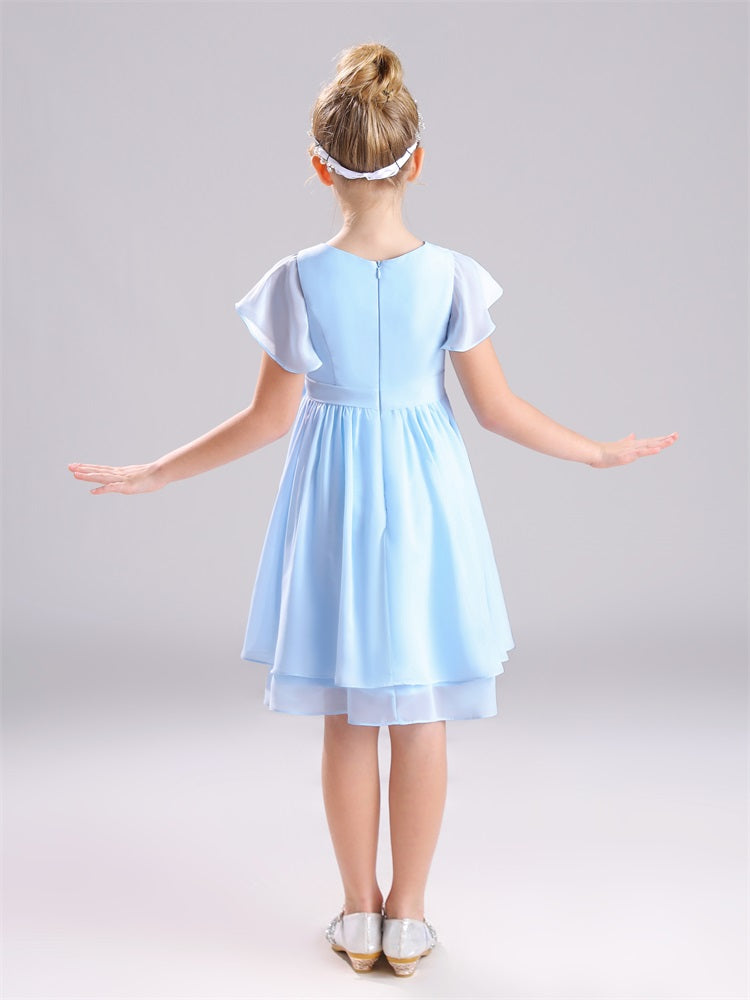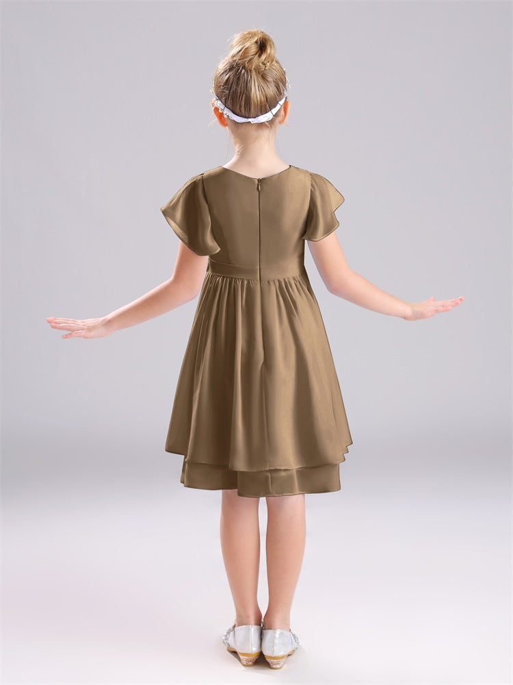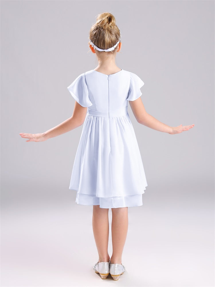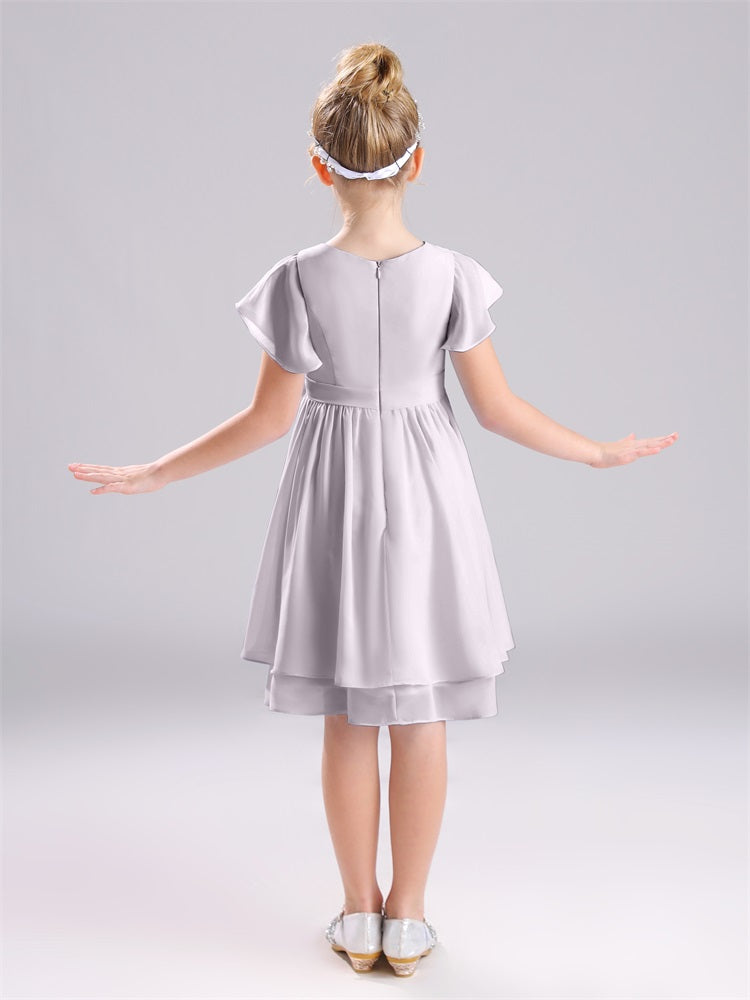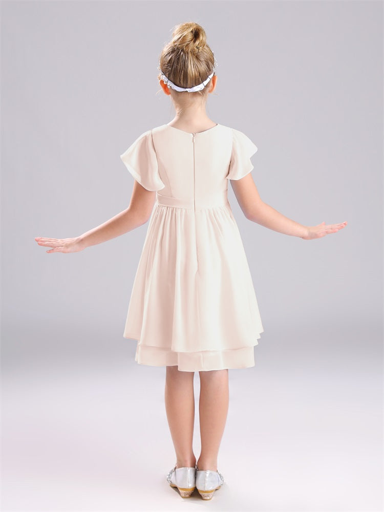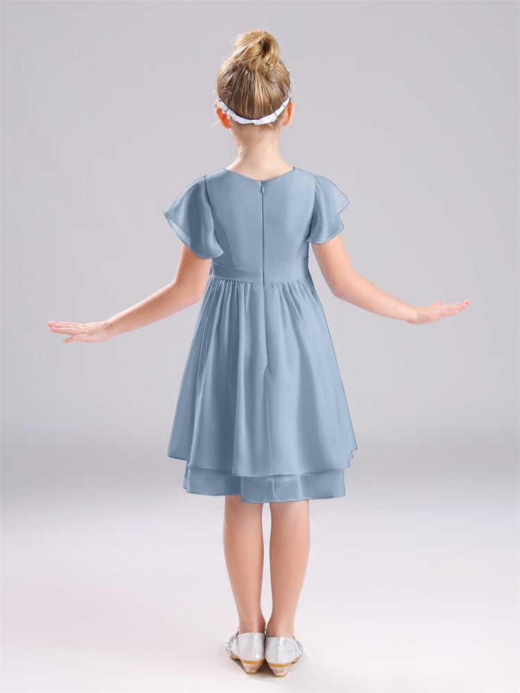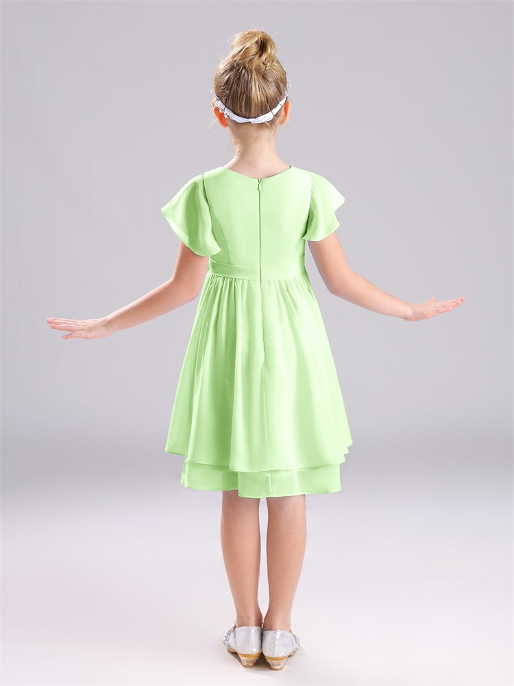 Juwel A-Linie Ärmel knielang Chiffon Junior Brautjungfernkleider