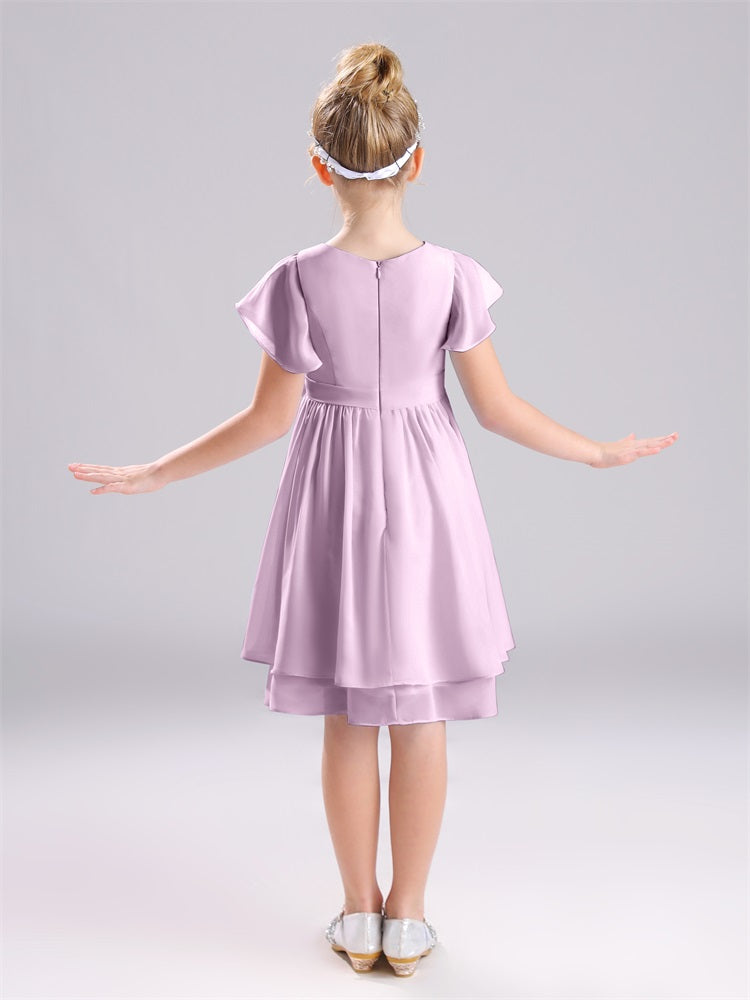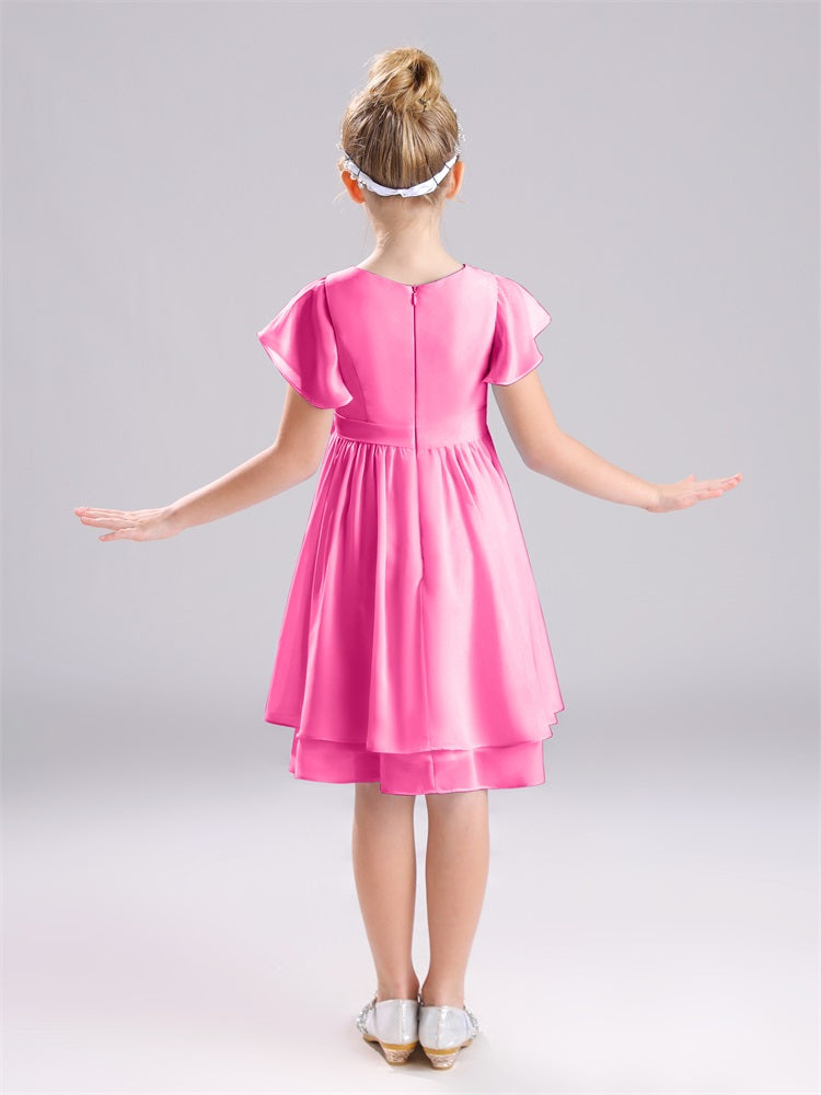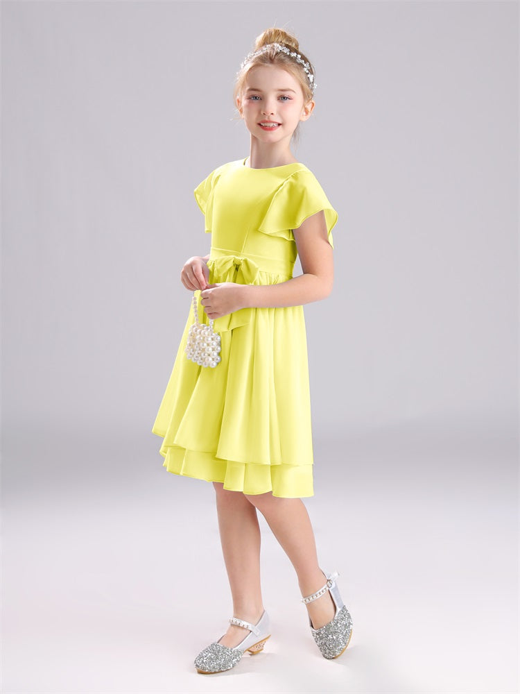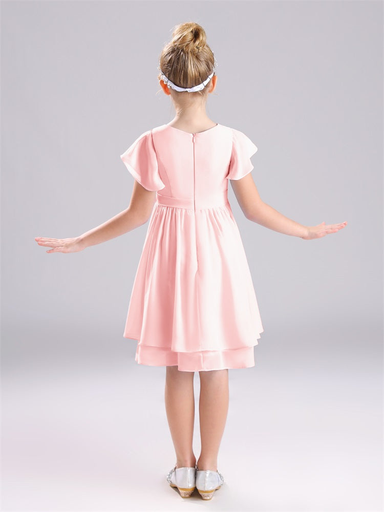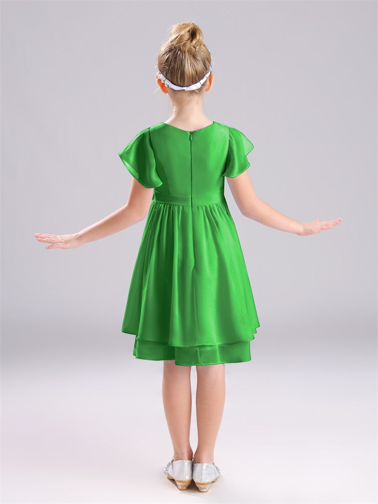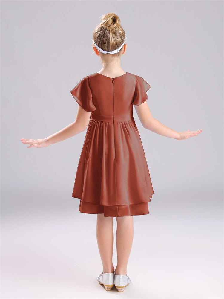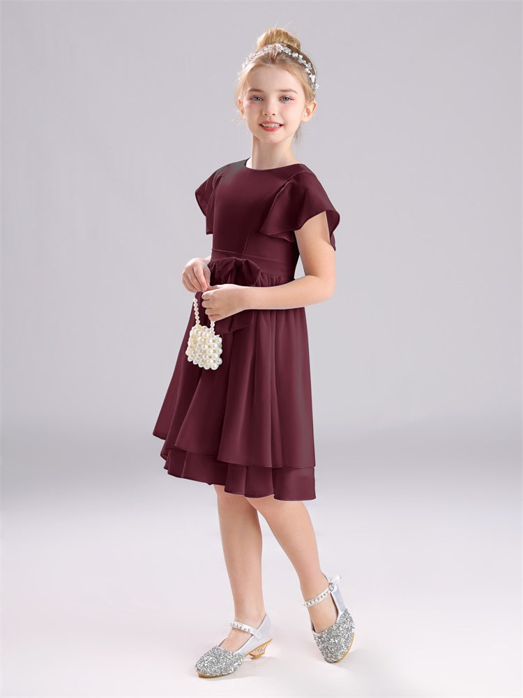 Mit unseren knielangen Chiffon-Brautjungfernkleidern in Juwelen-A-Linie mit Ärmeln werten Sie jede Brautparty auf. Das raffinierte A-Linien-Design, das zarte Chiffonmaterial und der elegante Juwelenausschnitt sorgen für einen zeitlosen und schmeichelhaften Look für jede Junior-Brautjungfer. Perfekt für jede Hochzeit oder einen besonderen Anlass.