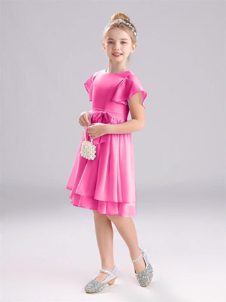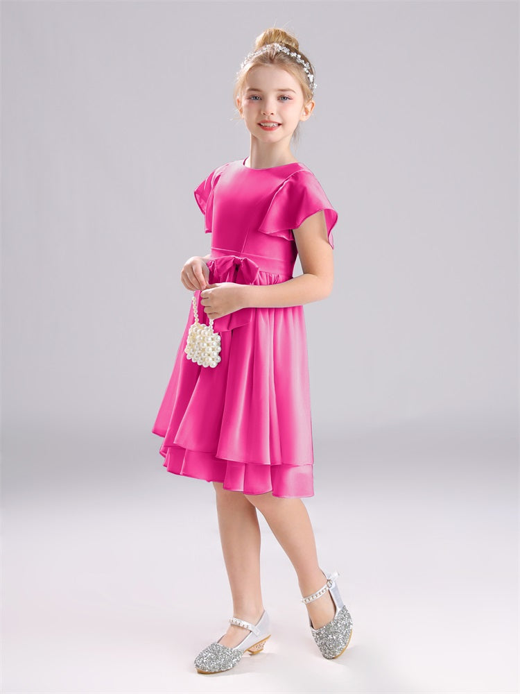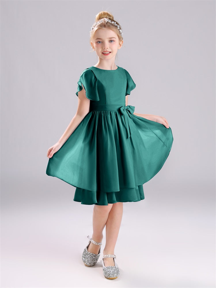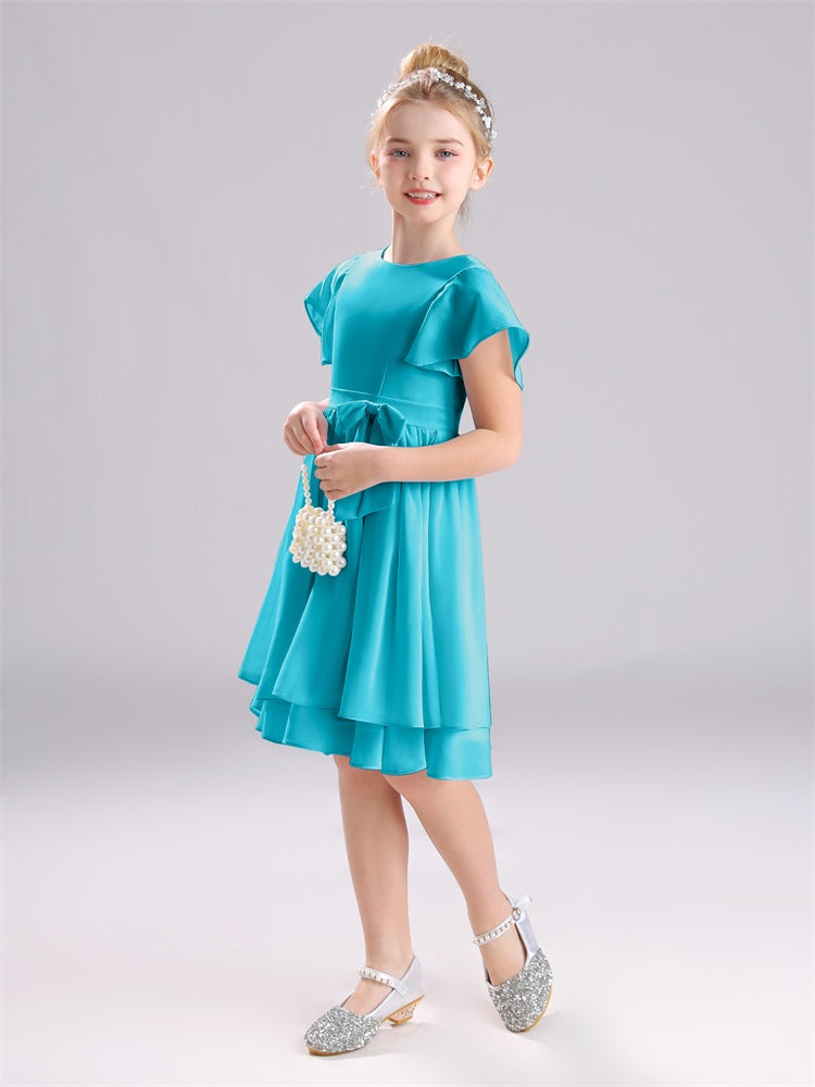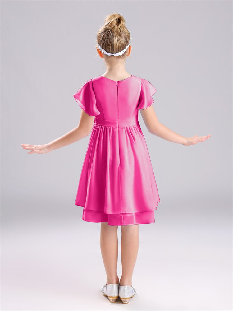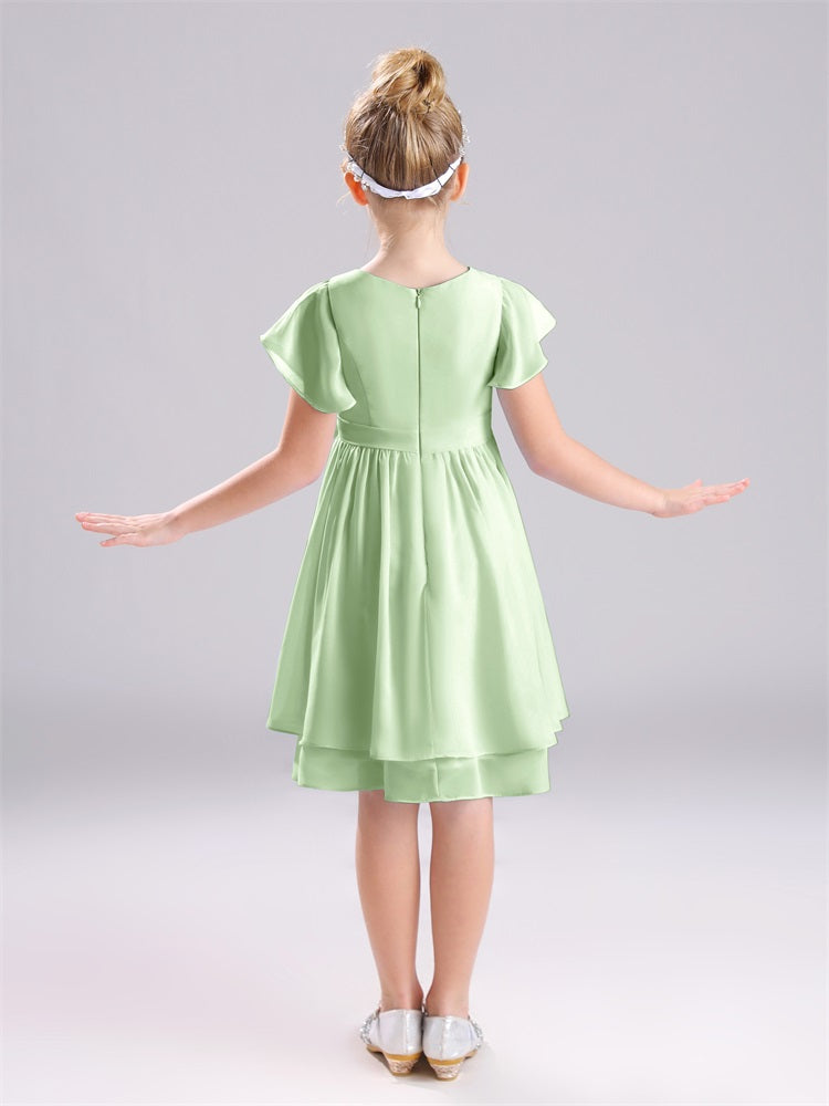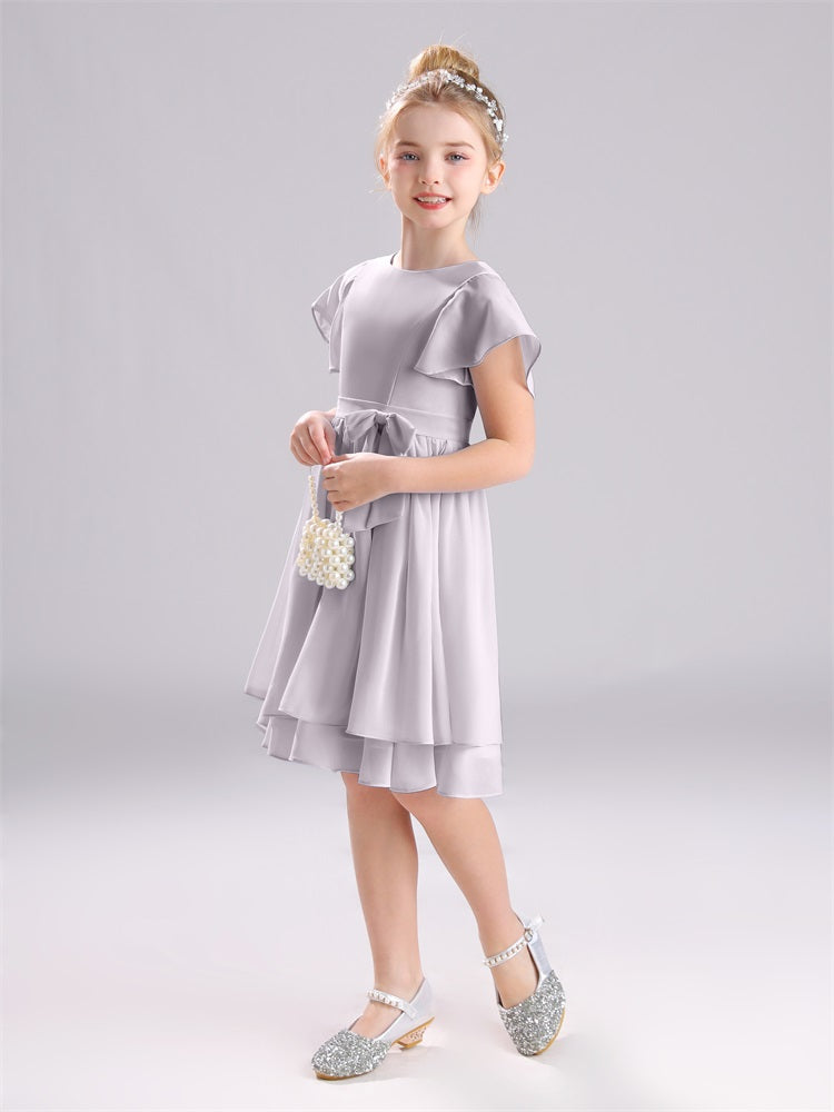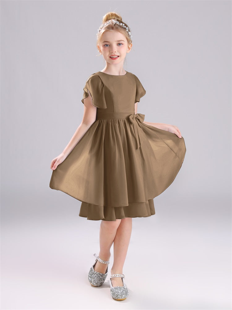 Mit unseren knielangen Chiffon-Brautjungfernkleidern in Juwelen-A-Linie mit Ärmeln werten Sie jede Brautparty auf. Das raffinierte A-Linien-Design, das zarte Chiffonmaterial und der elegante Juwelenausschnitt sorgen für einen zeitlosen und schmeichelhaften Look für jede Junior-Brautjungfer. Perfekt für jede Hochzeit oder einen besonderen Anlass.