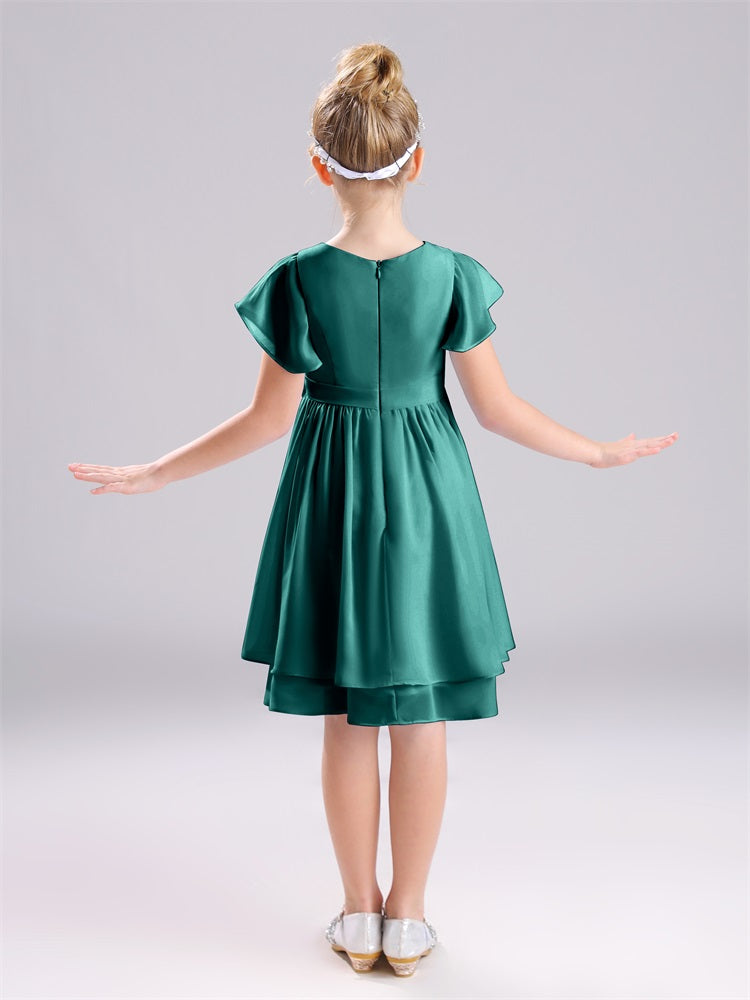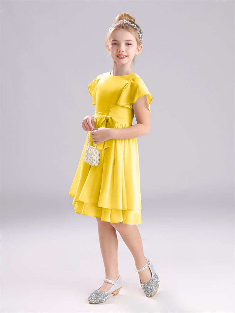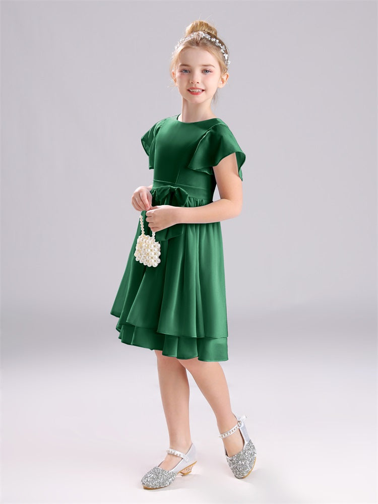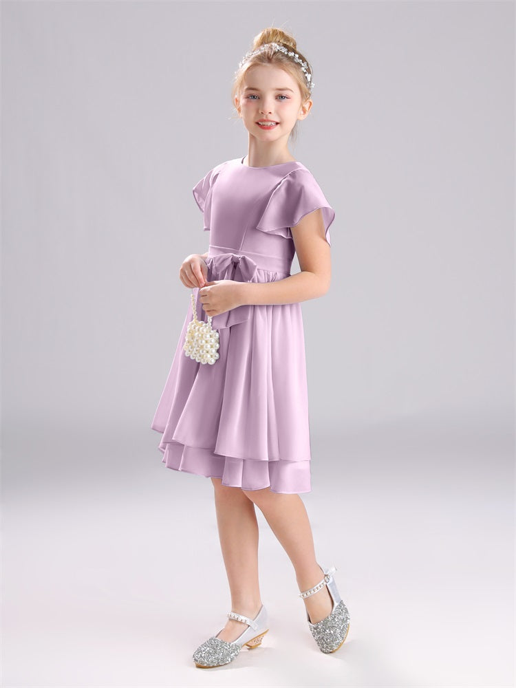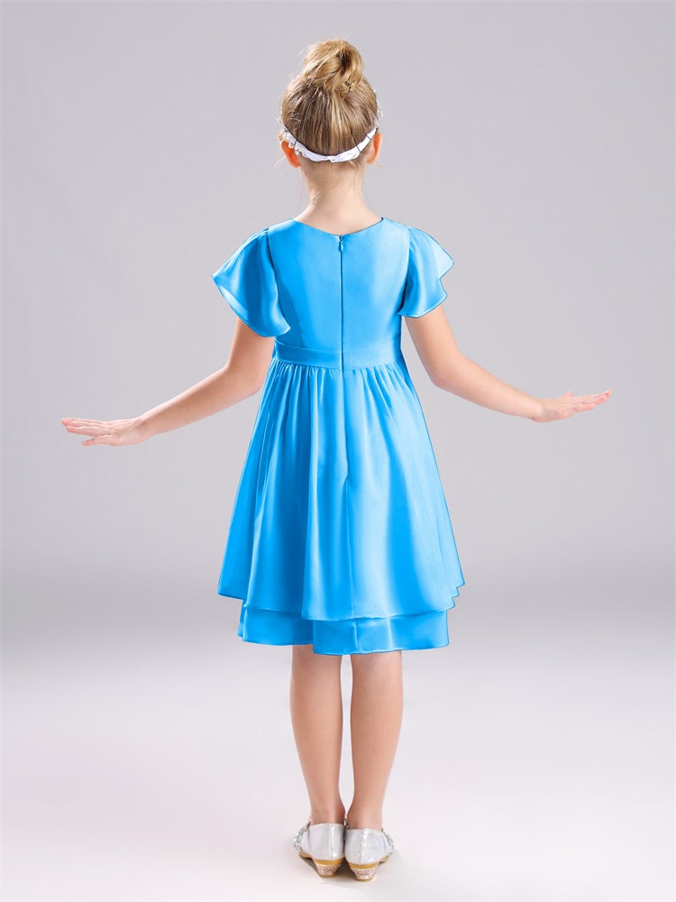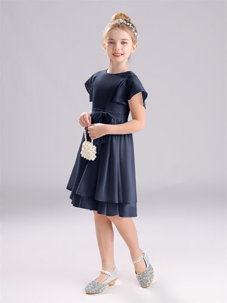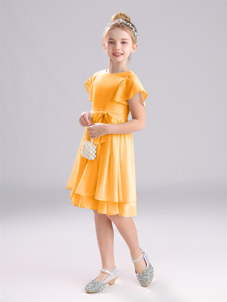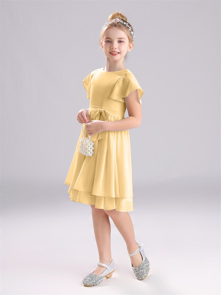 Mit unseren knielangen Chiffon-Brautjungfernkleidern in Juwelen-A-Linie mit Ärmeln werten Sie jede Brautparty auf. Das raffinierte A-Linien-Design, das zarte Chiffonmaterial und der elegante Juwelenausschnitt sorgen für einen zeitlosen und schmeichelhaften Look für jede Junior-Brautjungfer. Perfekt für jede Hochzeit oder einen besonderen Anlass.