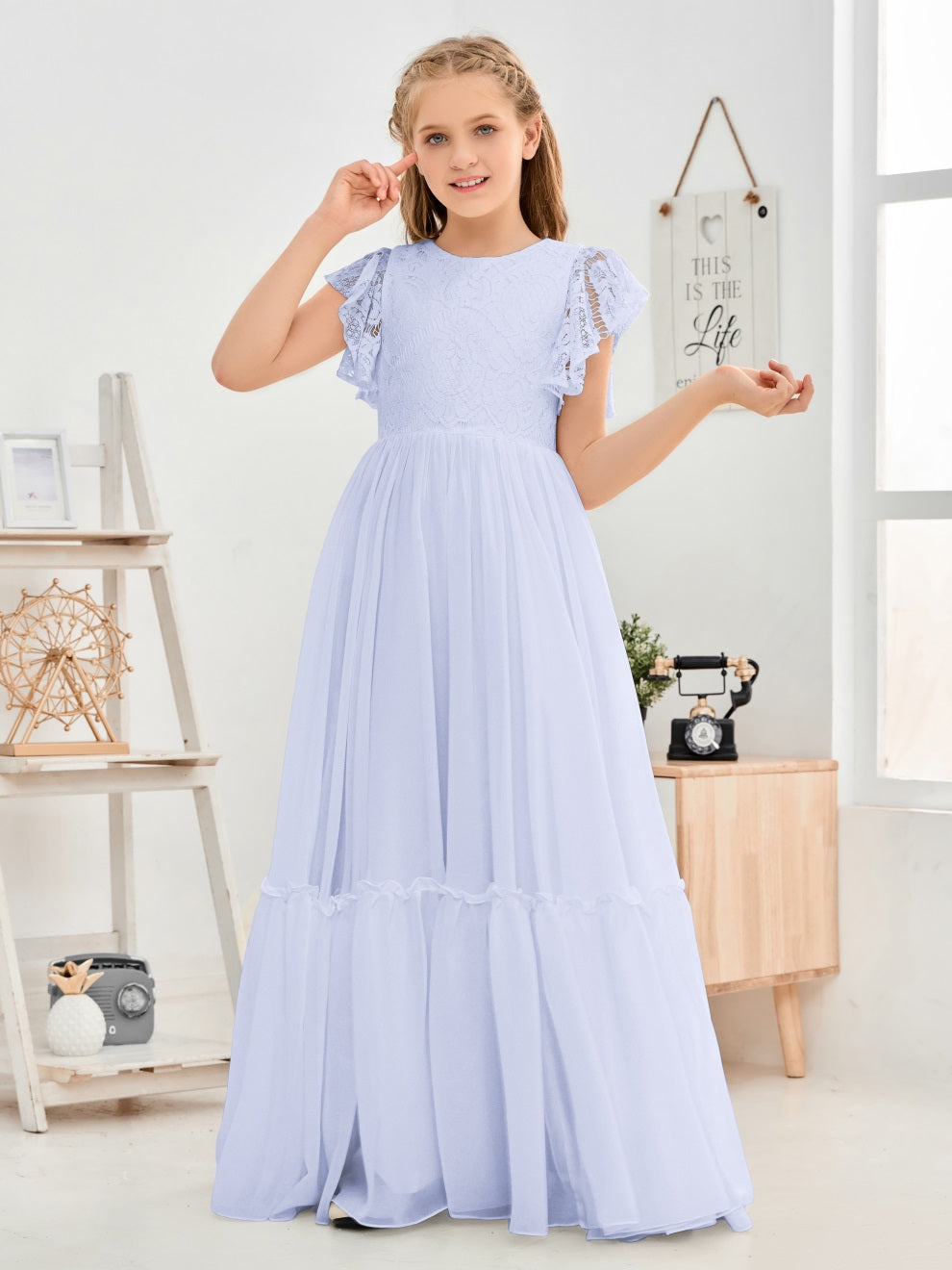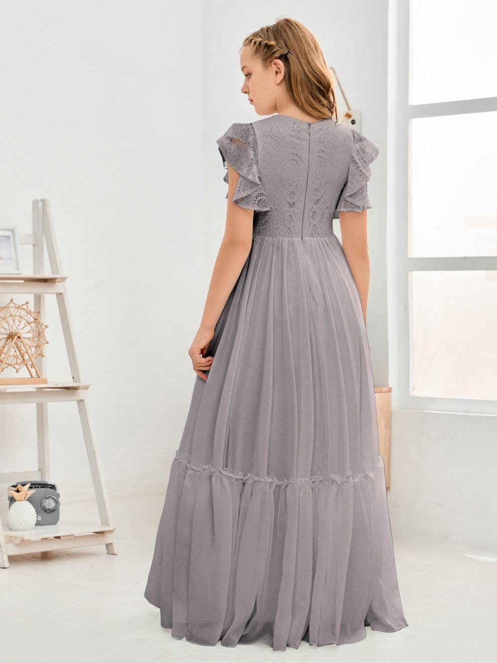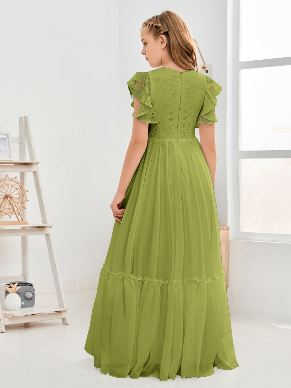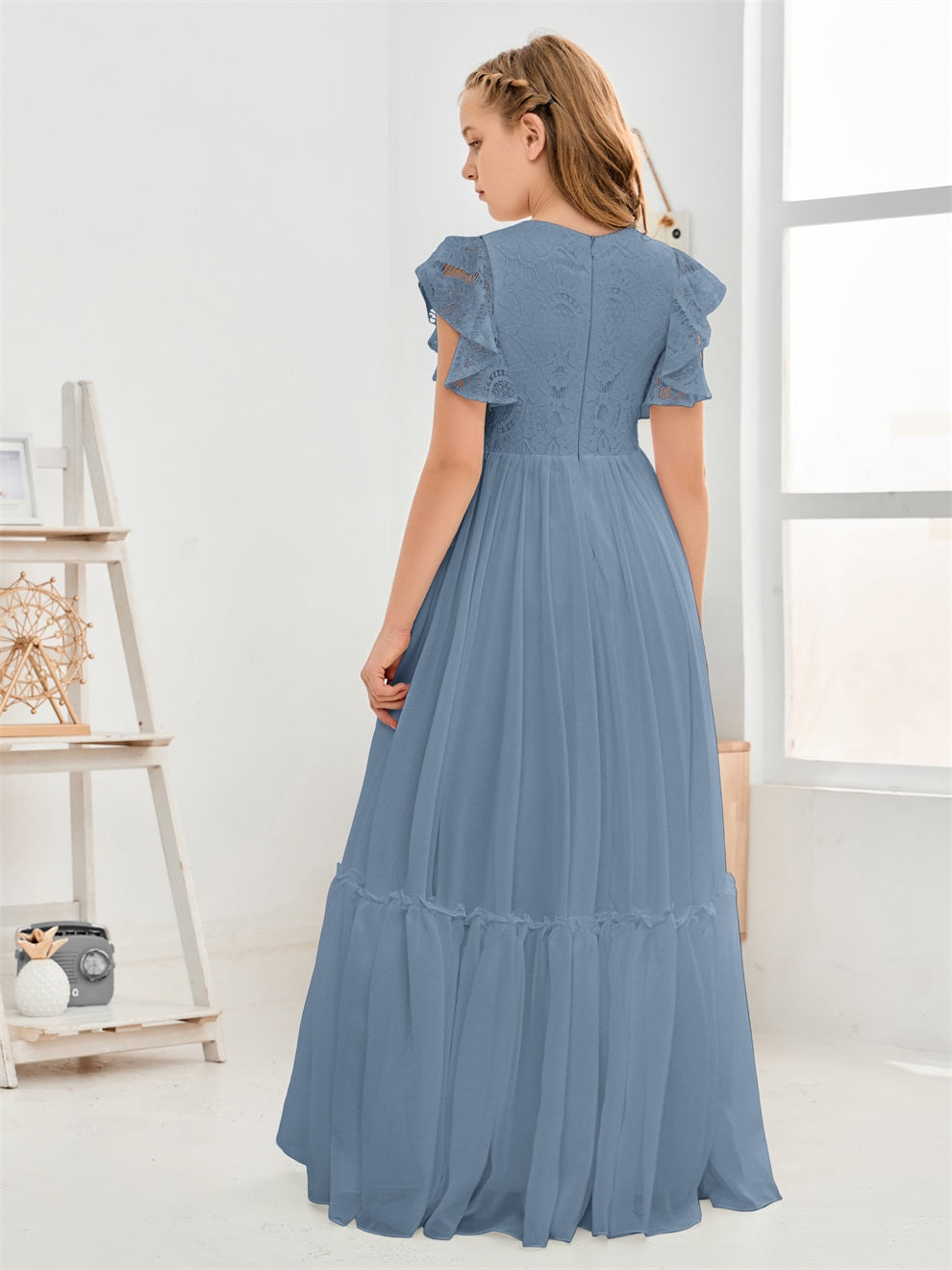 Kappenärmel A Linie Spitze Top Junior Chiffon Brautjungfernkleid