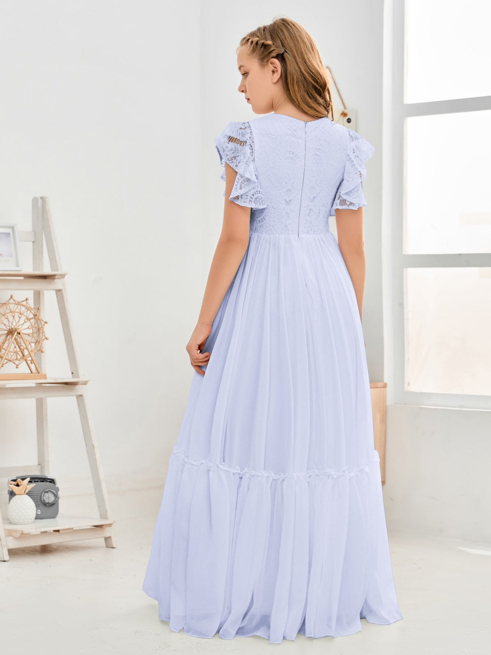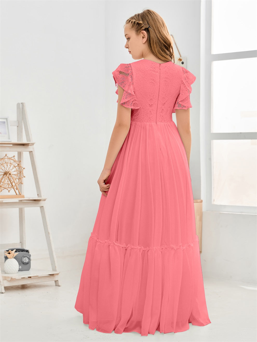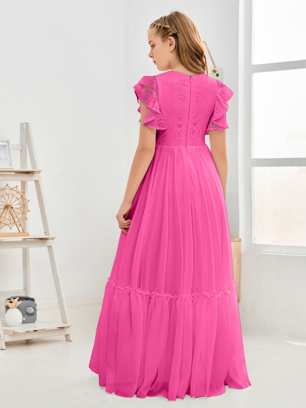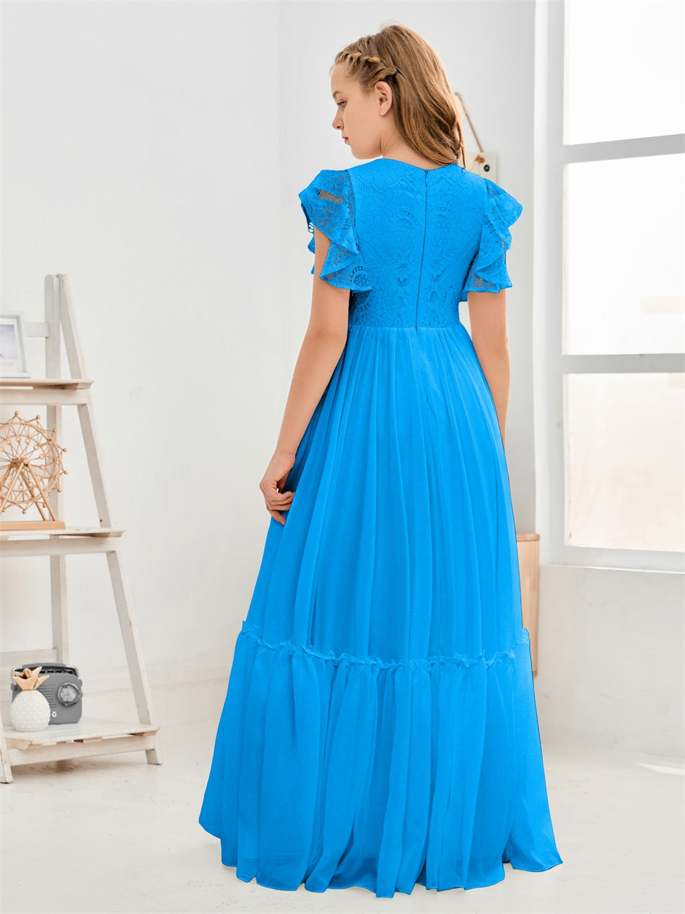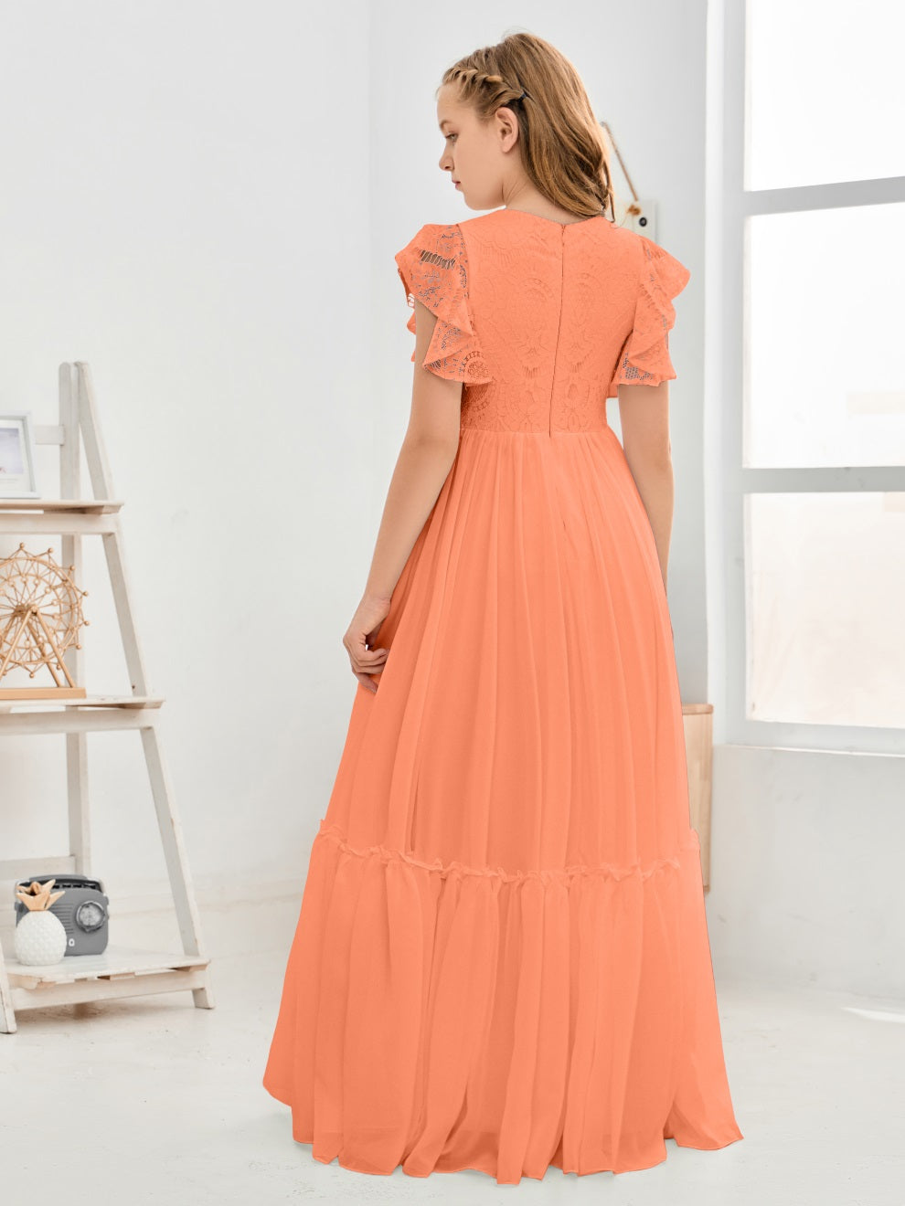 Kappenärmel A Linie Spitze Top Junior Chiffon Brautjungfernkleid