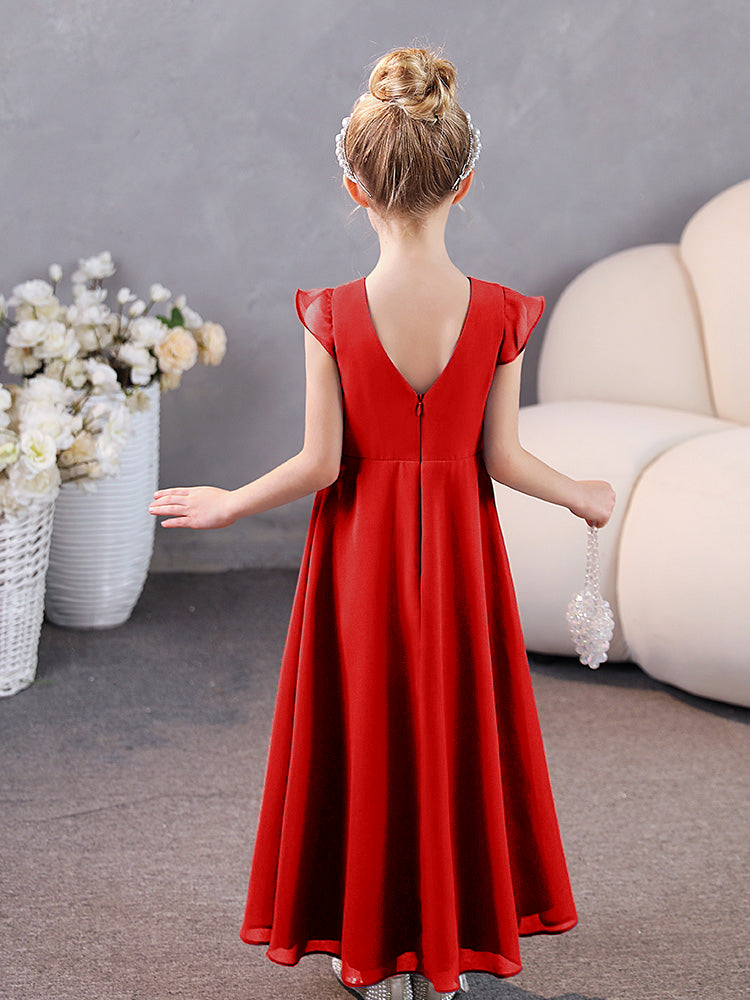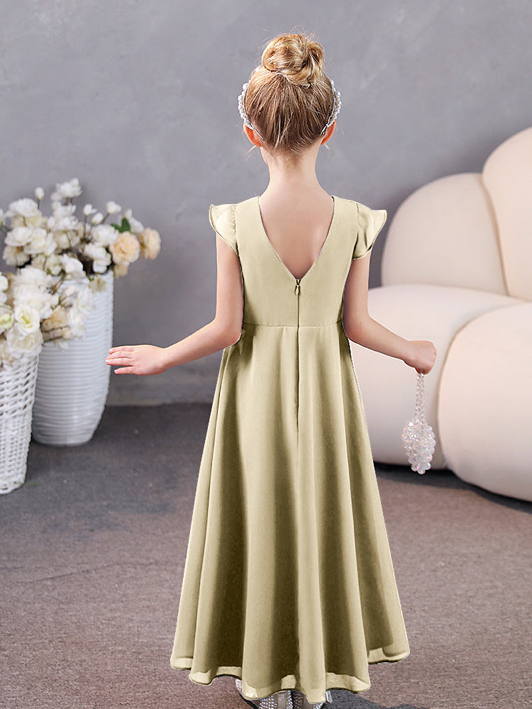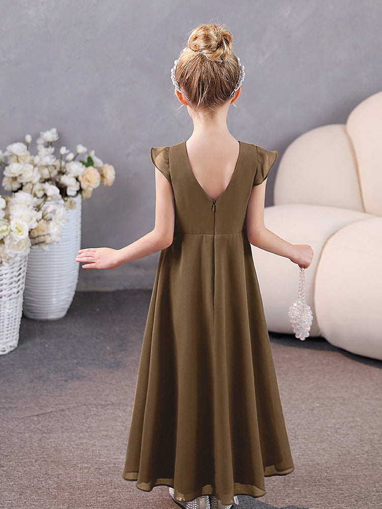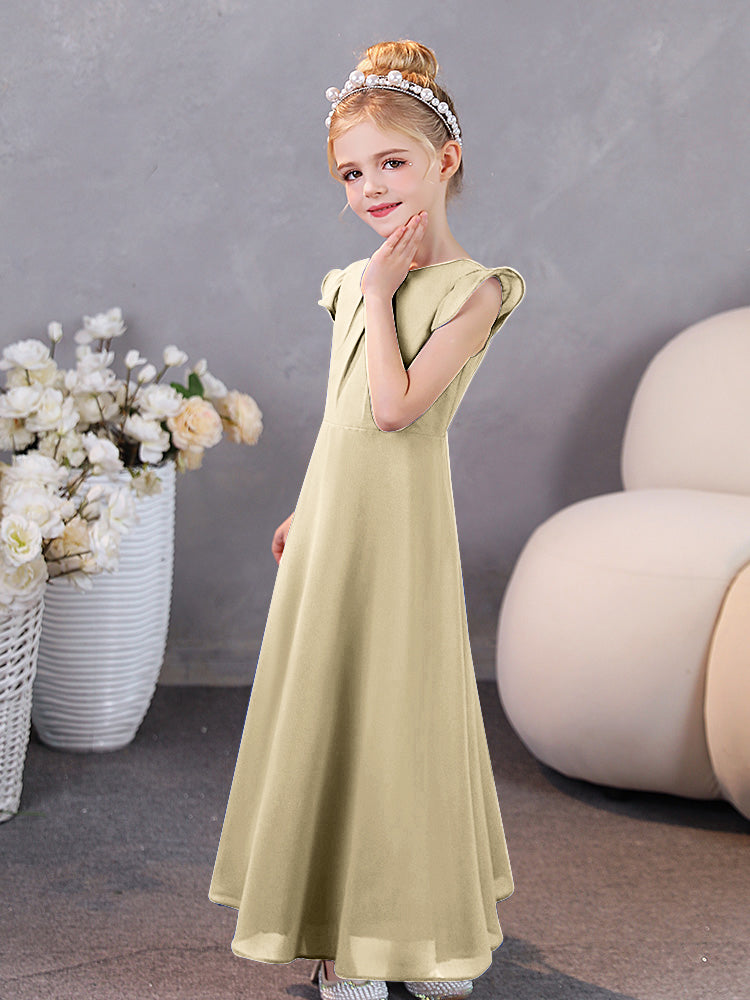 Kappenärmel Chiffon Junior Brautjungfernkleider