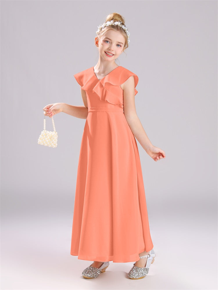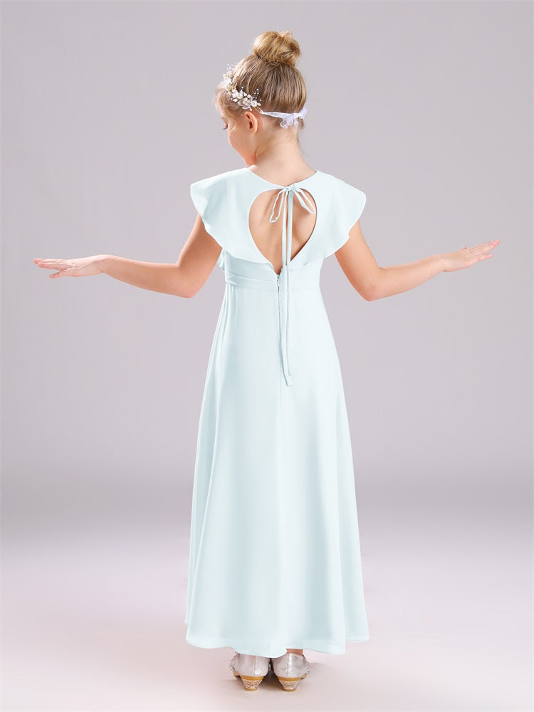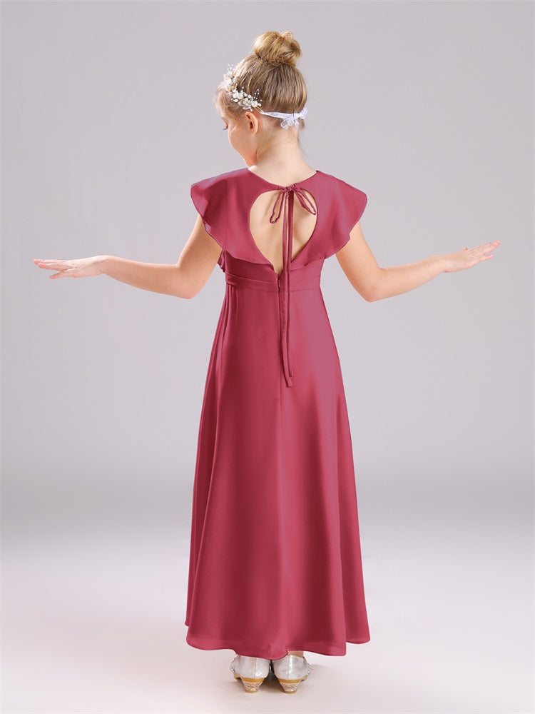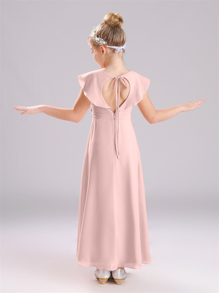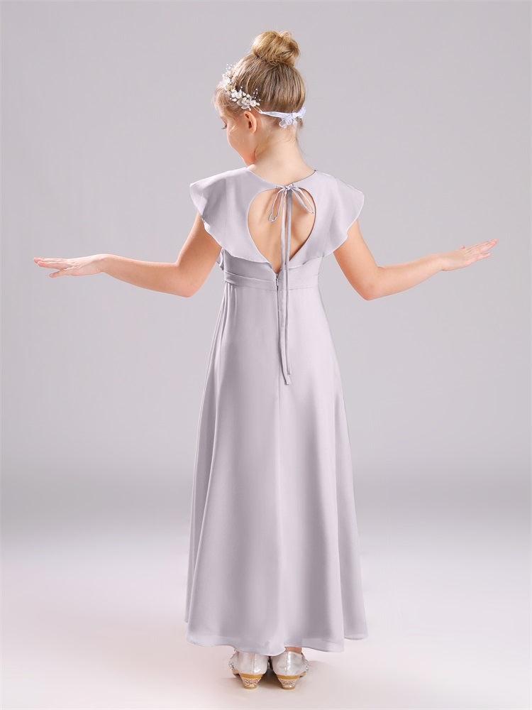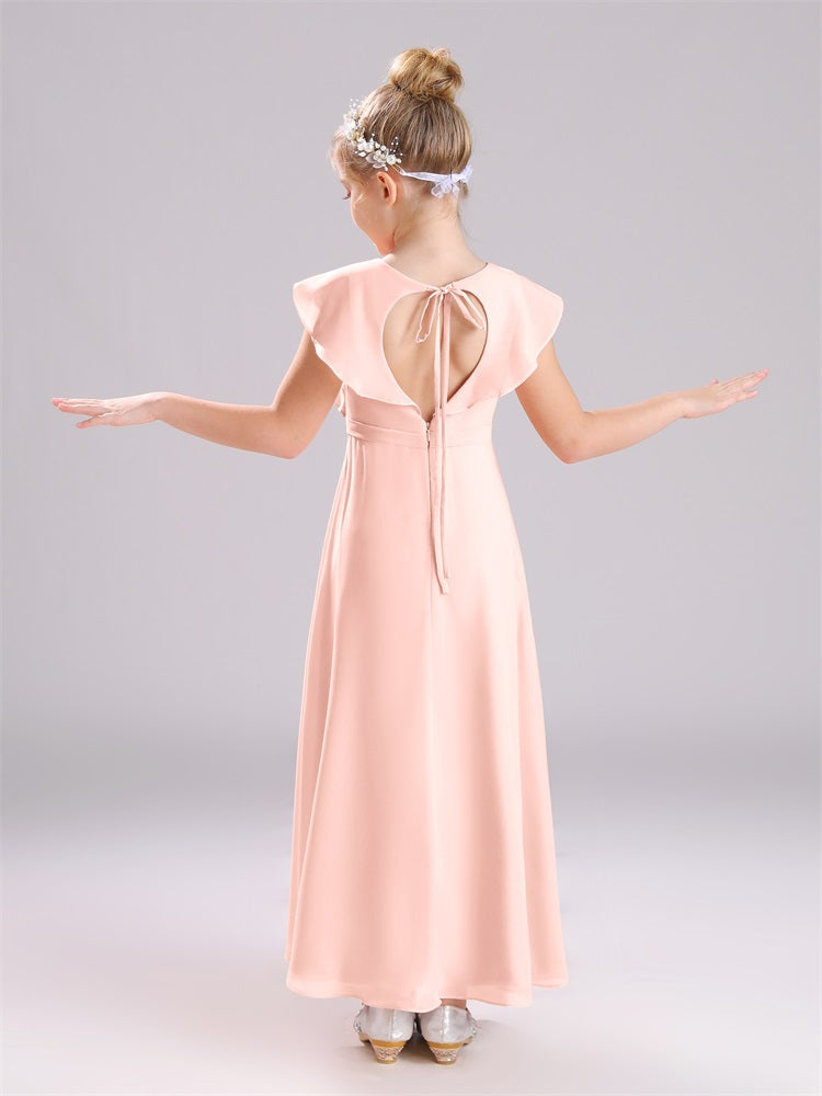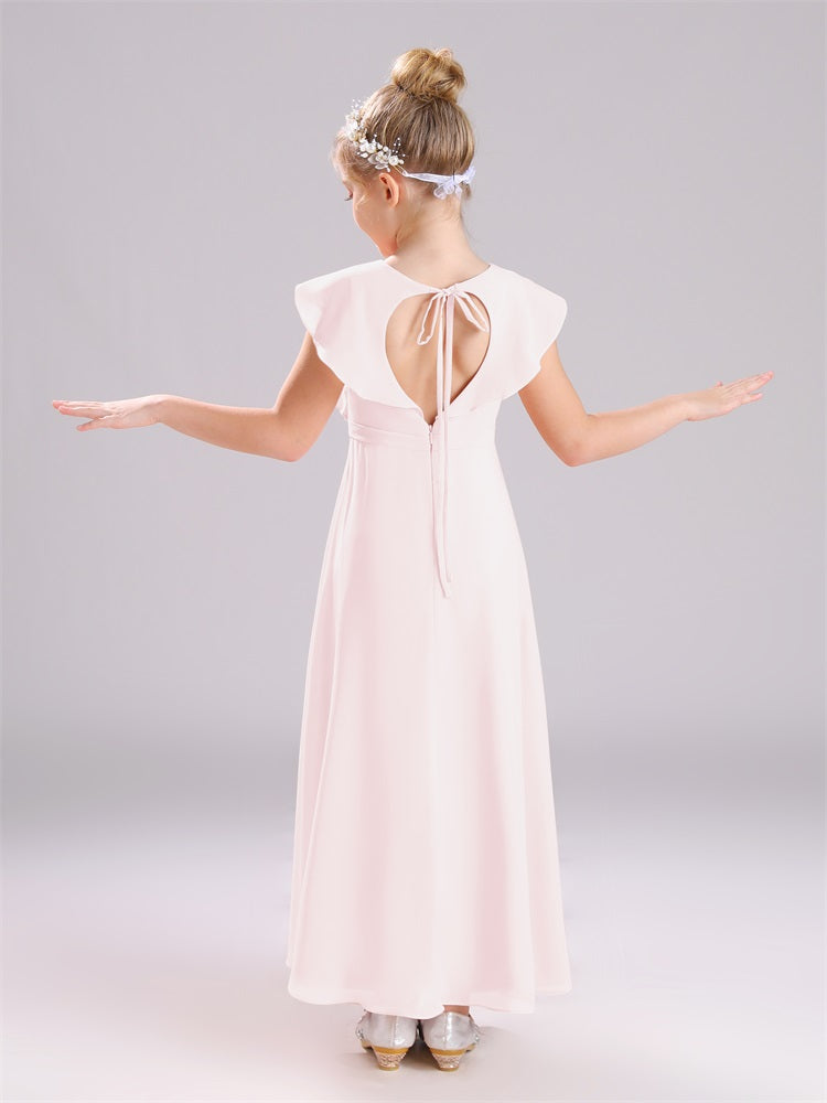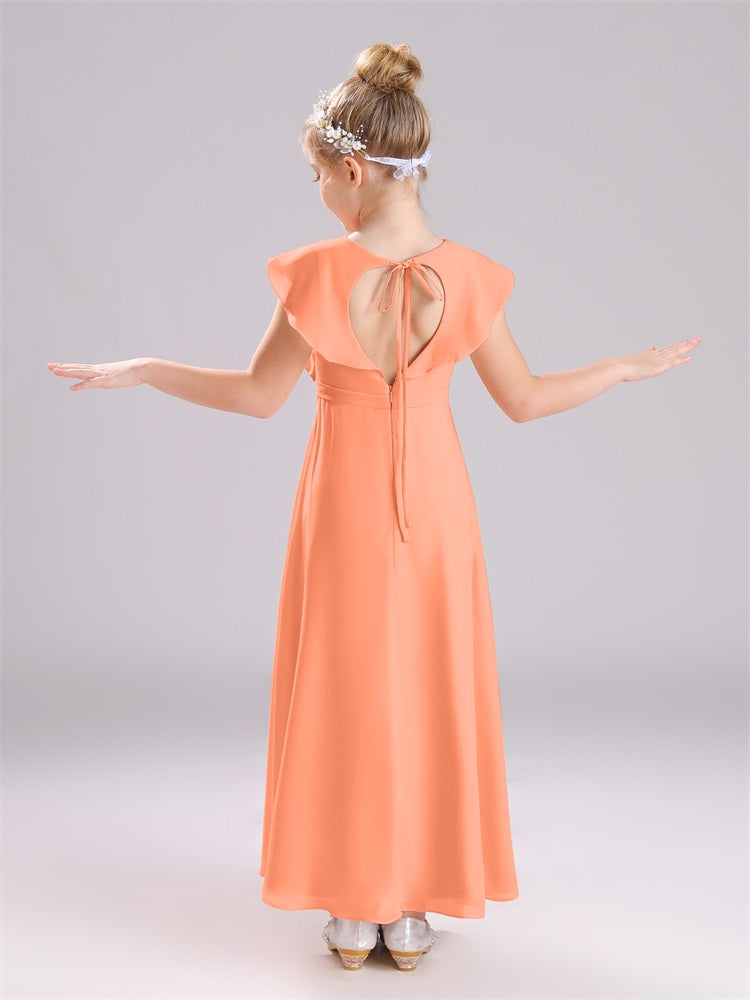 Kappenärmel V-Ausschnitt offener Rücken Chiffon Junior Brautjungfernkleider