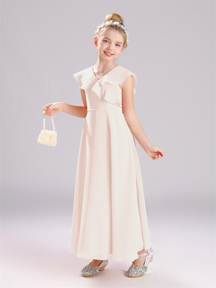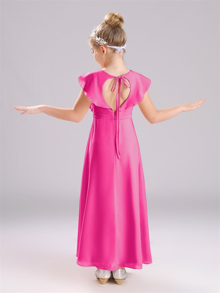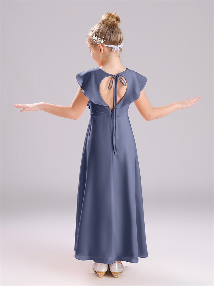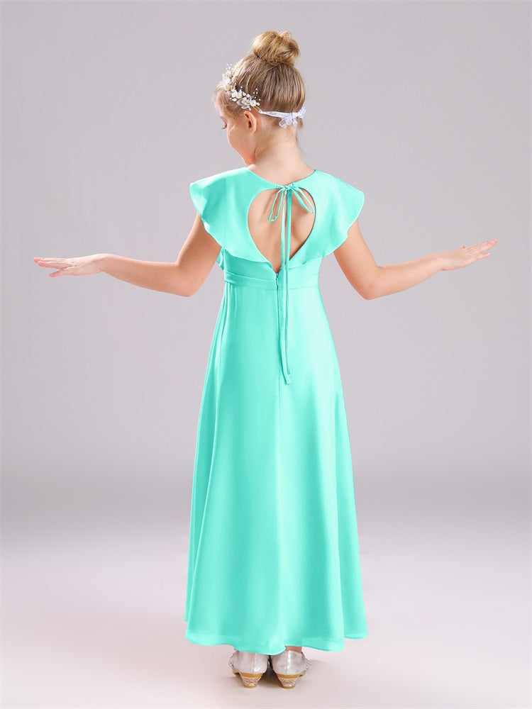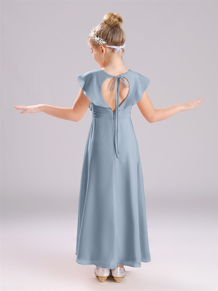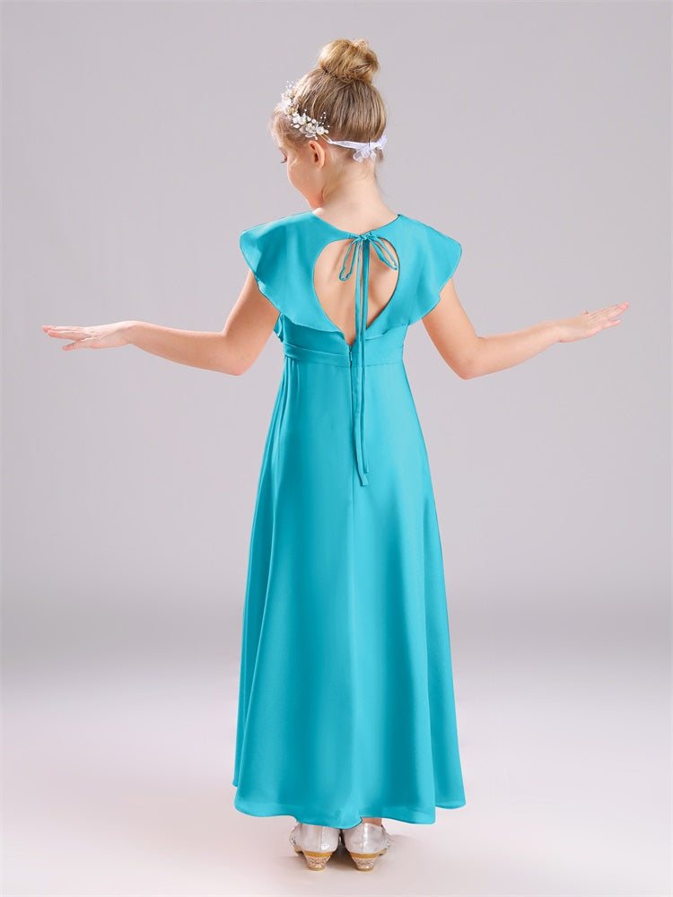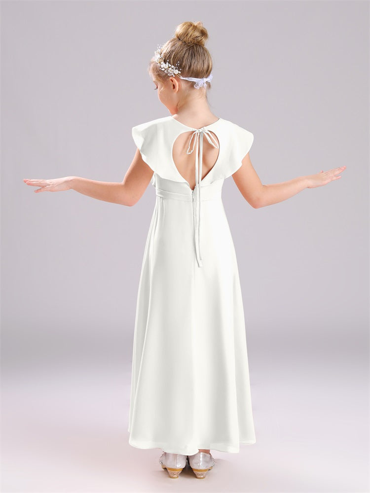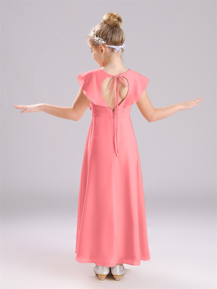 Kappenärmel V-Ausschnitt offener Rücken Chiffon Junior Brautjungfernkleider